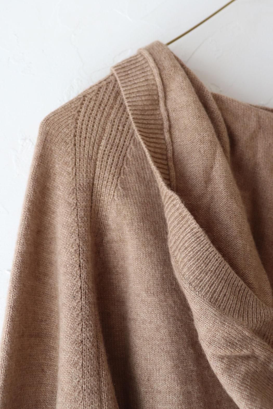 ゆったりとしたドルマン袖にボタンレスのシンプルなデザインが相性良く、着回し力の高い1着*