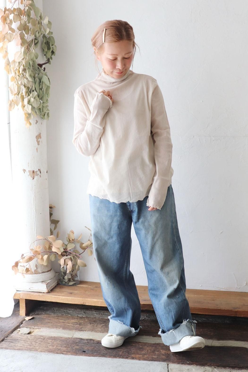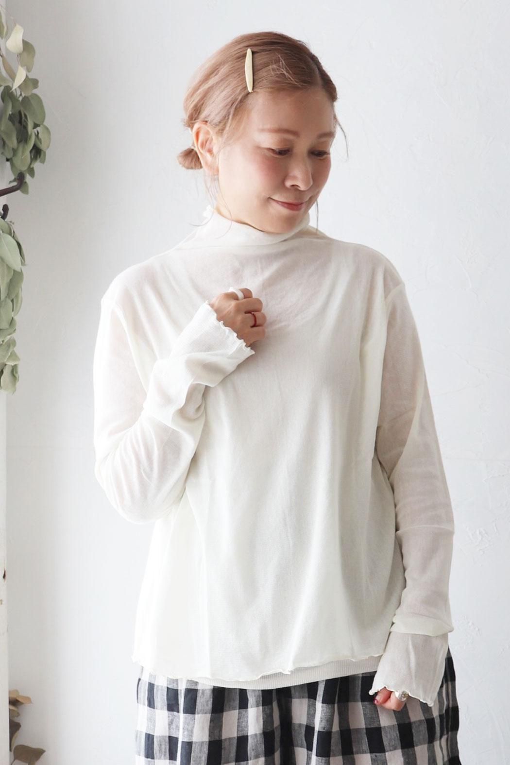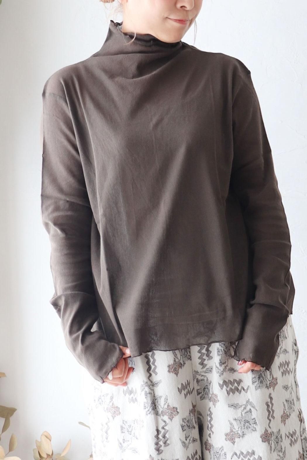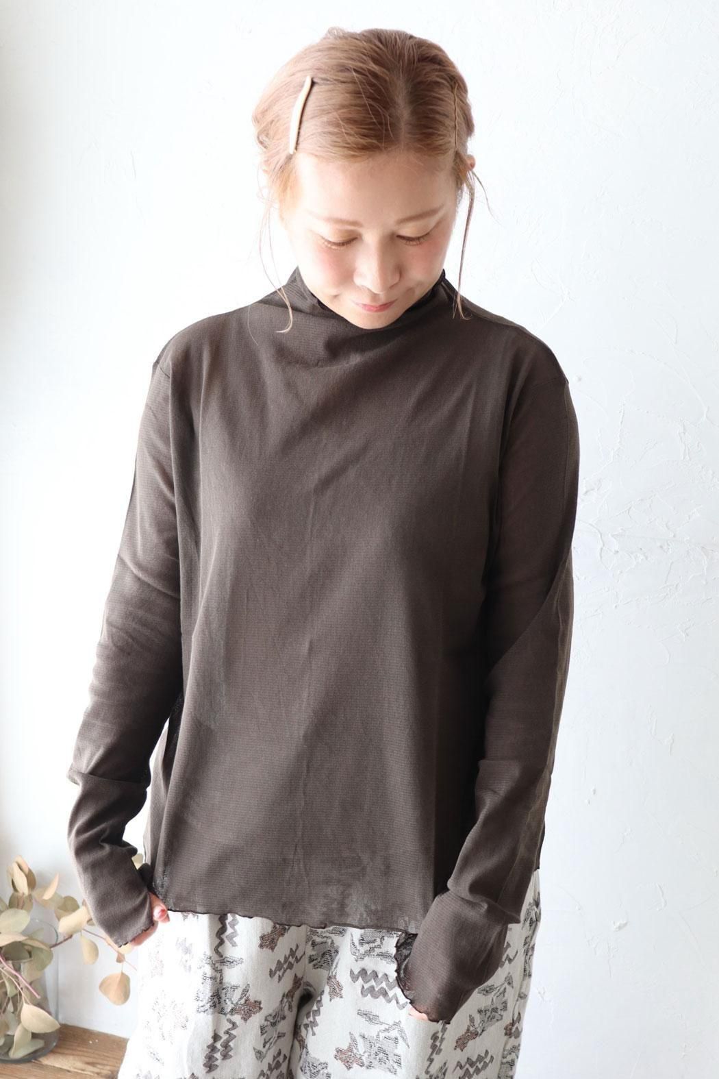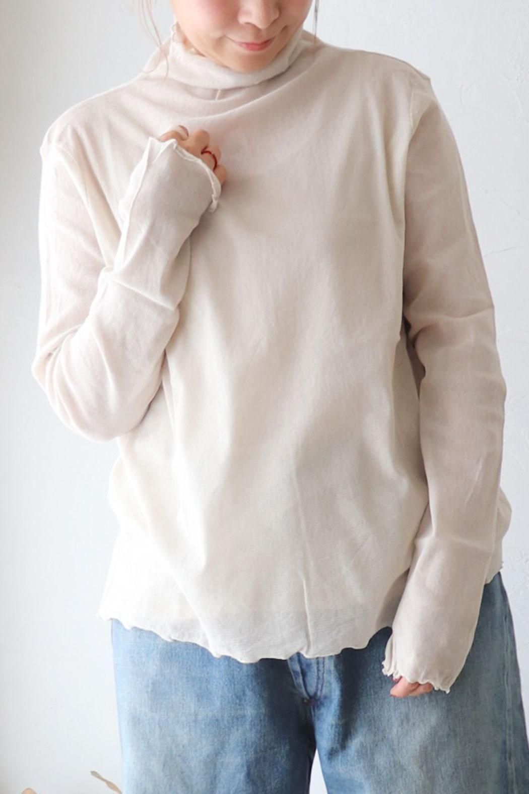 tumugu:(ツムグ)コットンチュール ハイネックロングTシャツ