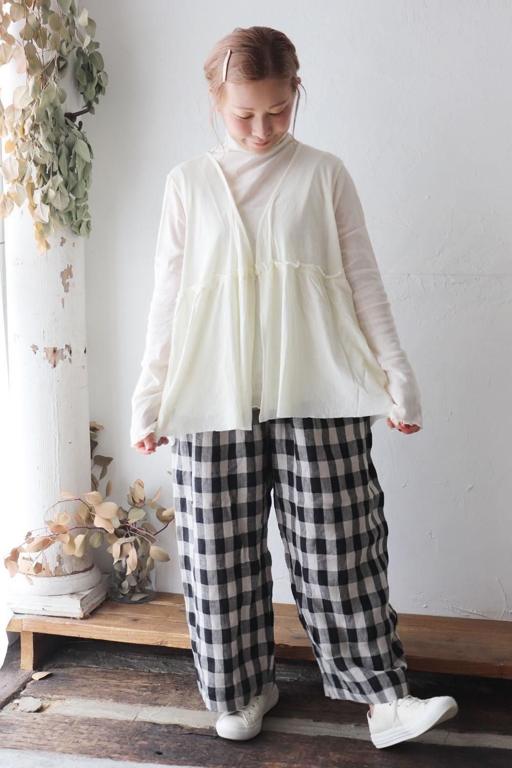 さりげないフリルと、裾と袖口に施されたスリットが抜け感を生みます。
