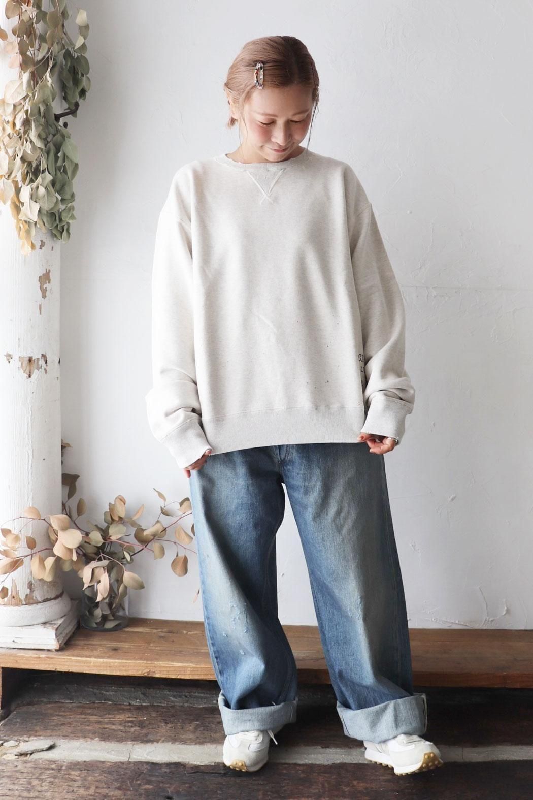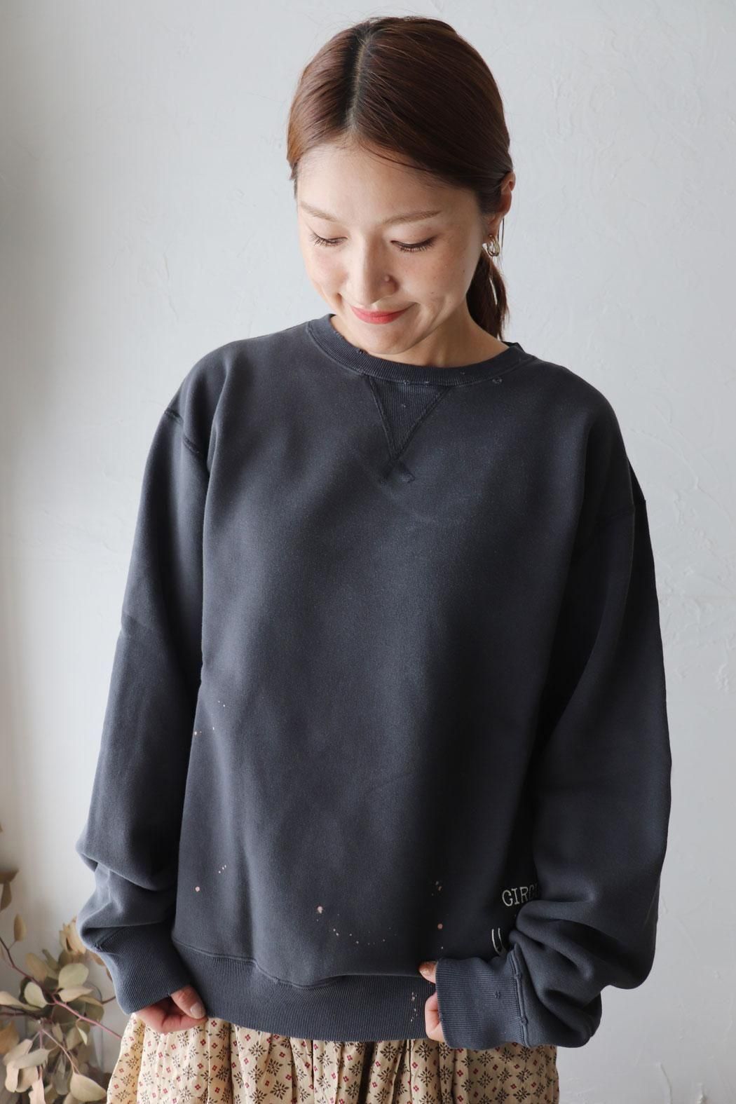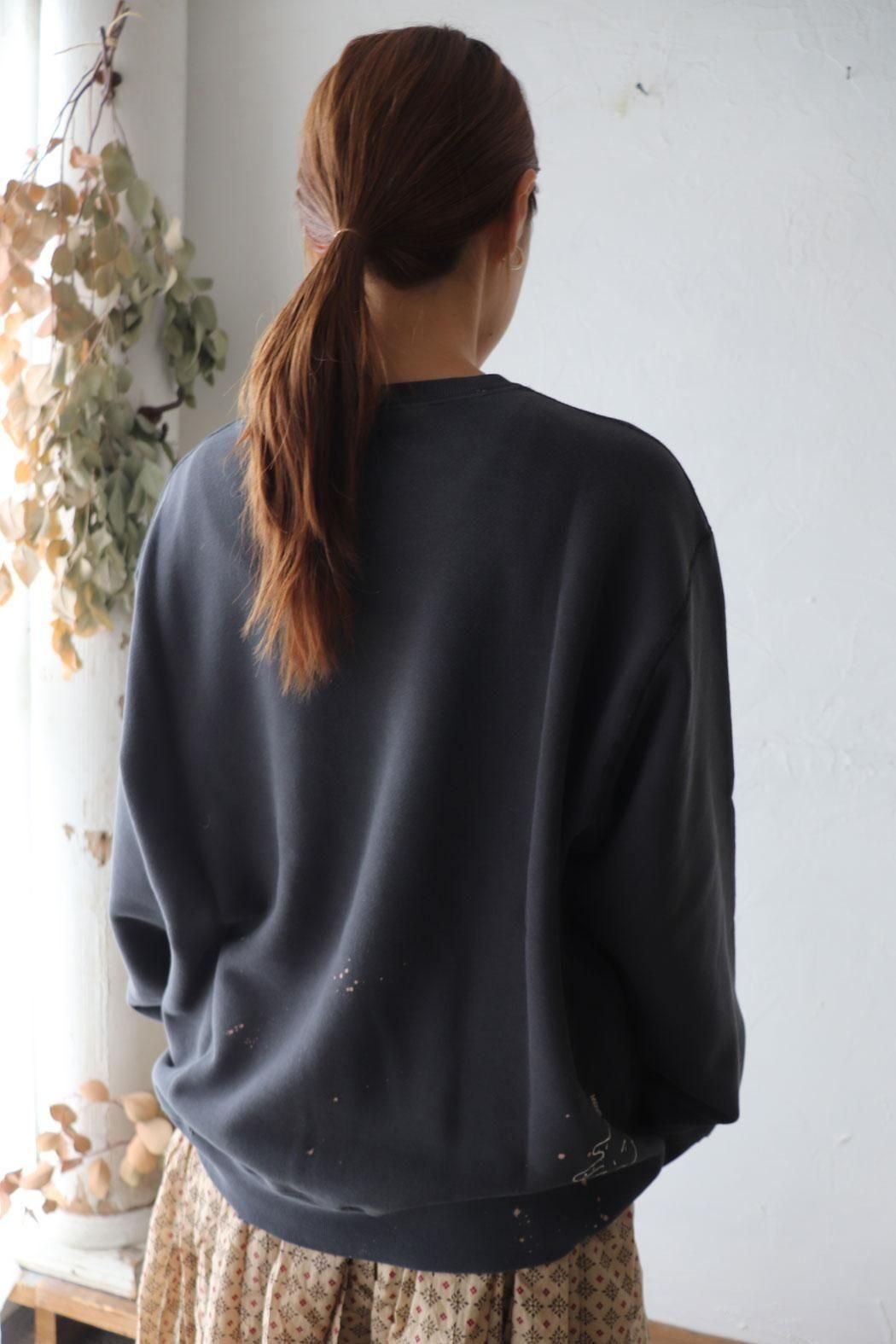 褪せた色合いやペイント加工がヴィンテージ感たっぷりのスウェット。