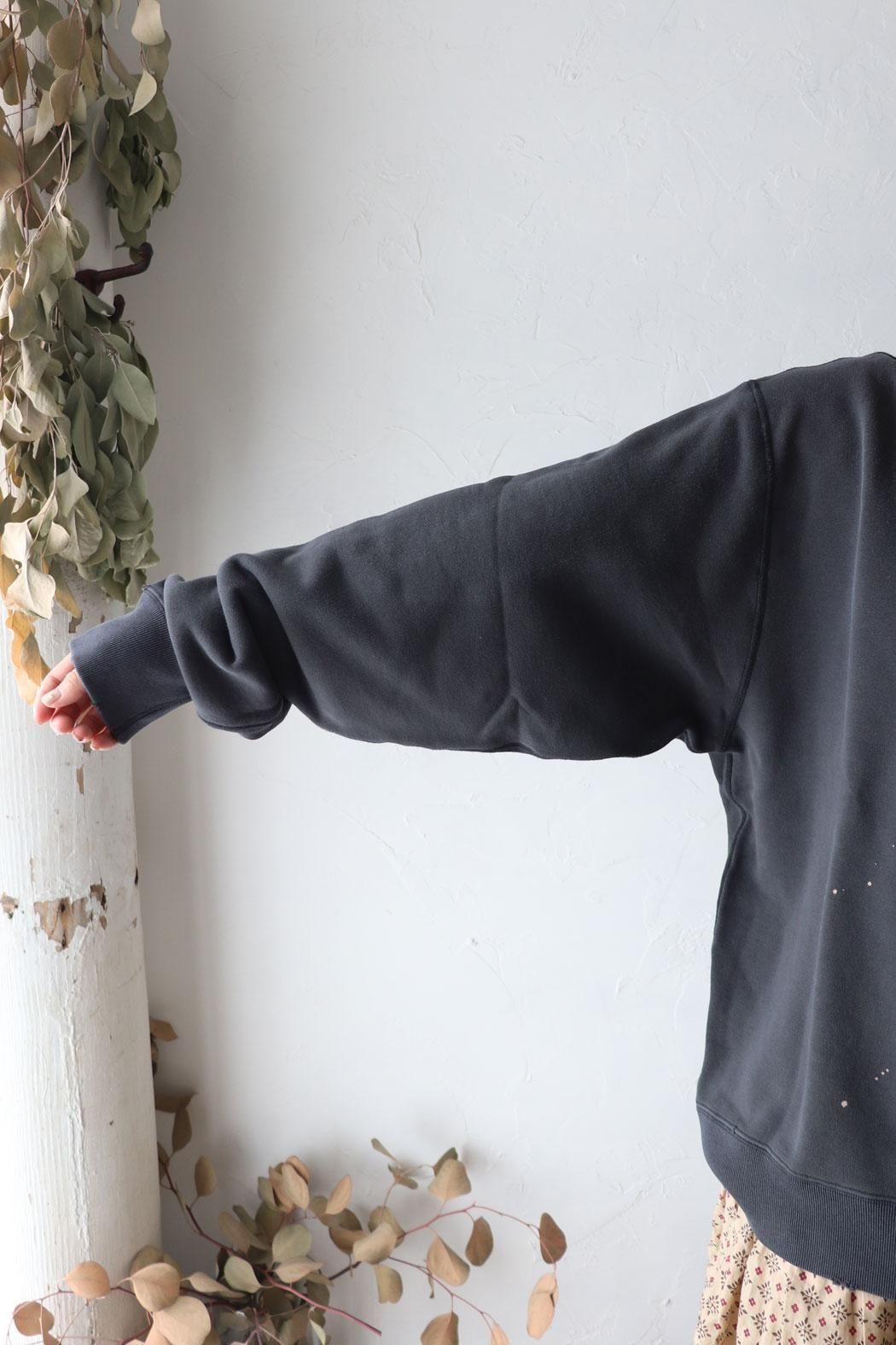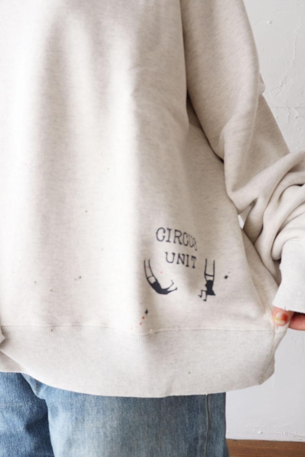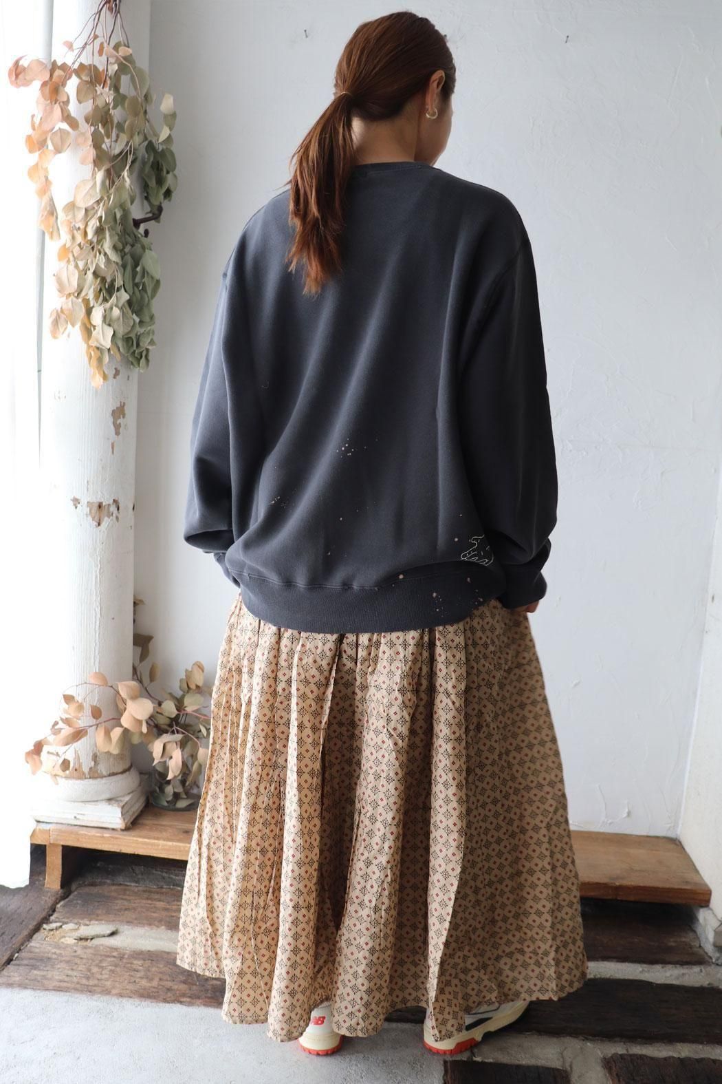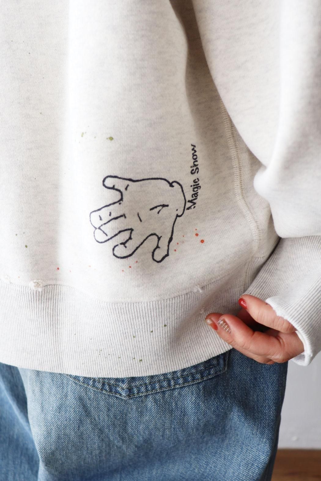 褪せた色合いやペイント加工がヴィンテージ感たっぷりのスウェット。