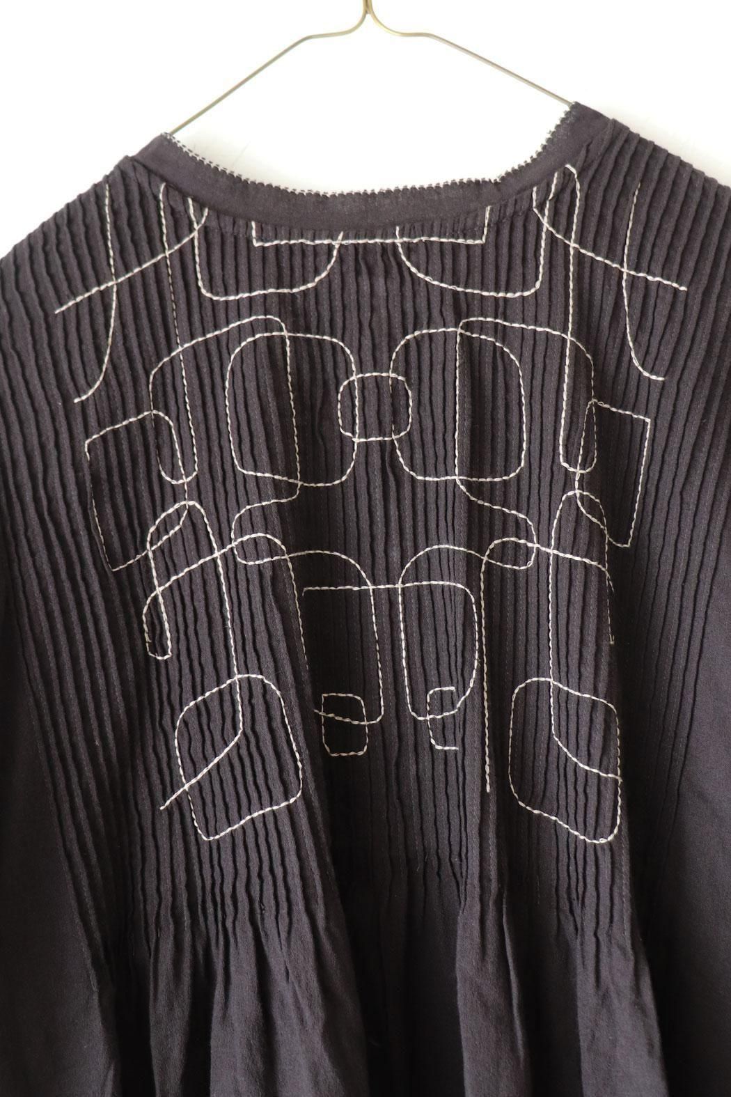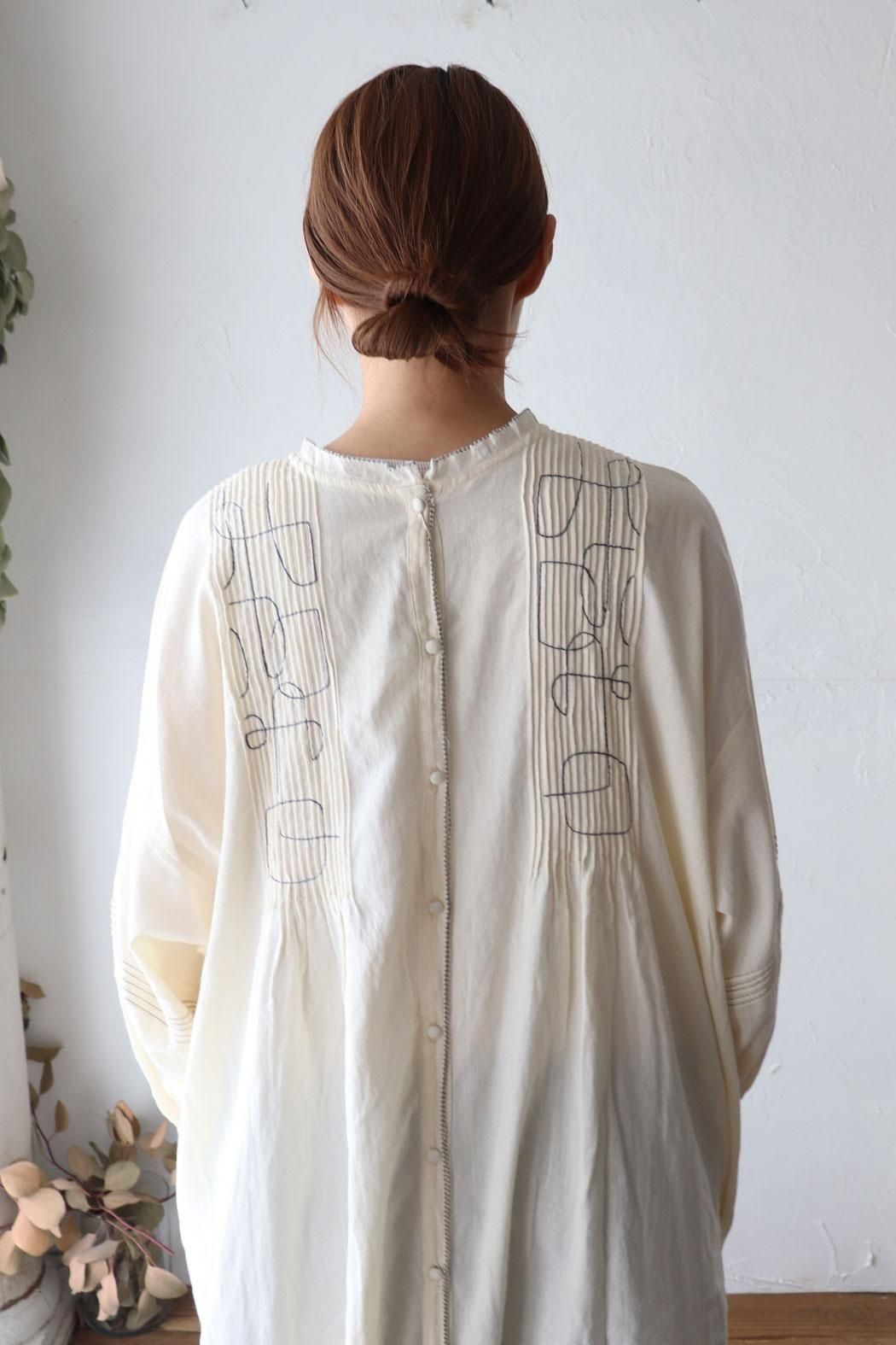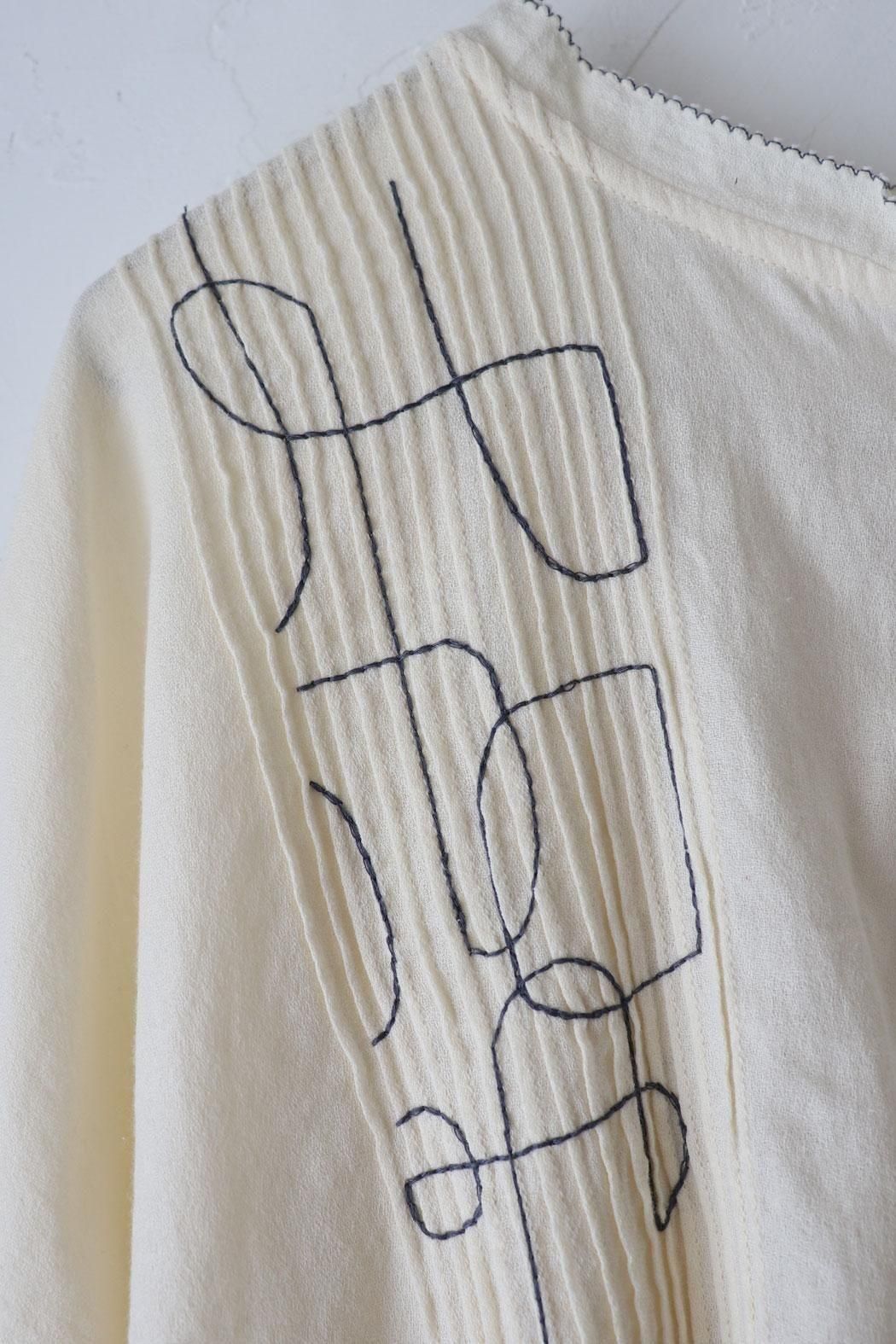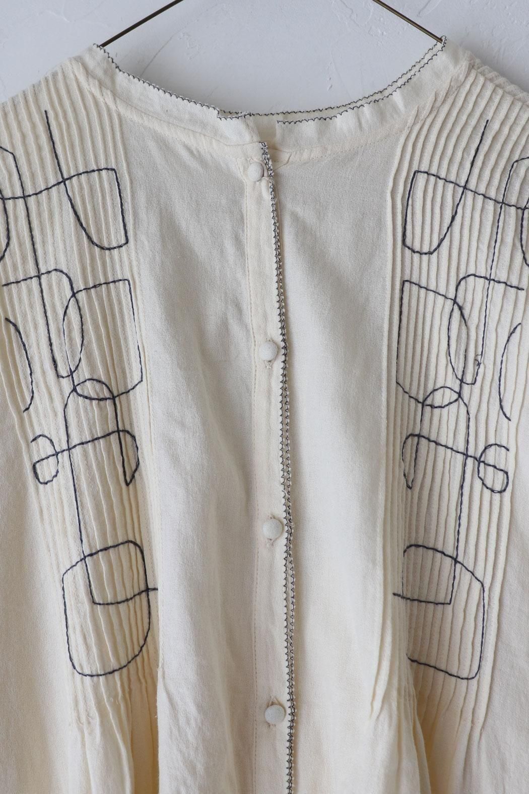 ピンタックの上に幾何学模様の刺繍を施した1着*