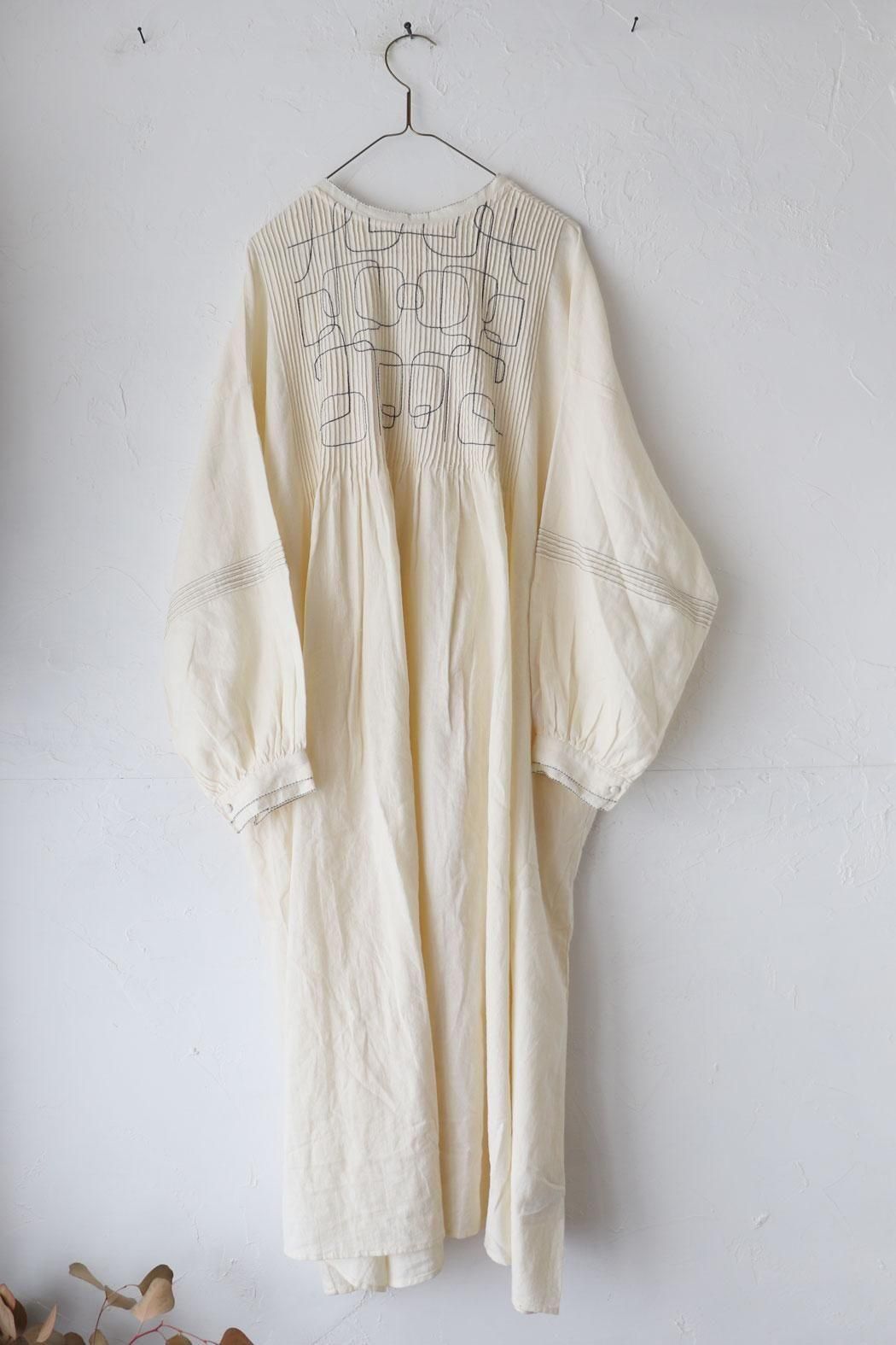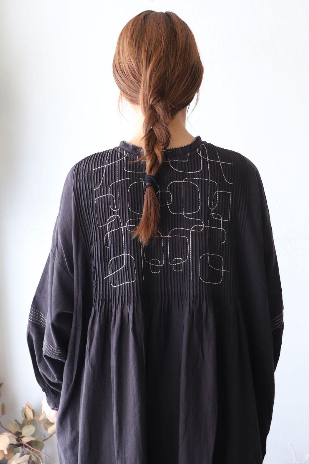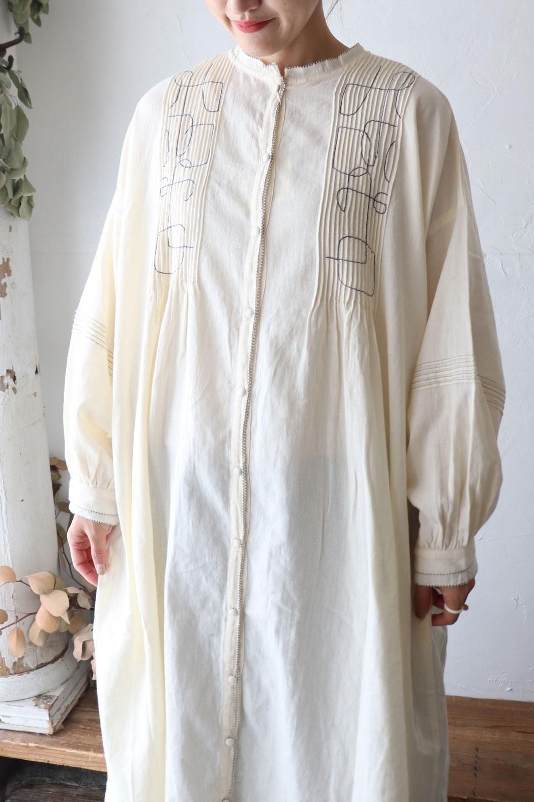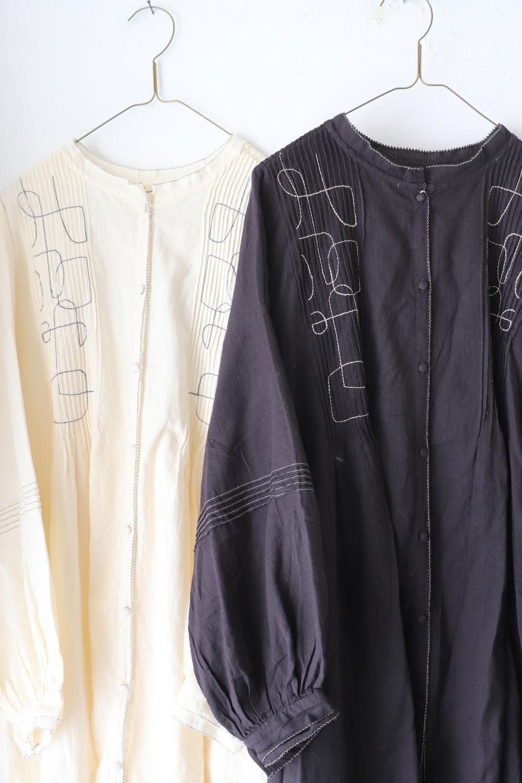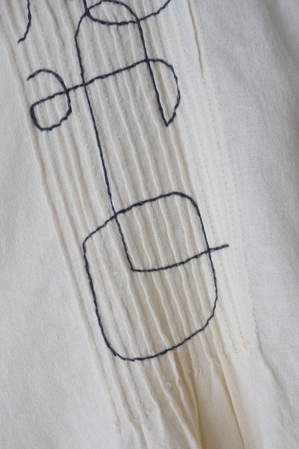 ピンタックの上に幾何学模様の刺繍を施した1着*