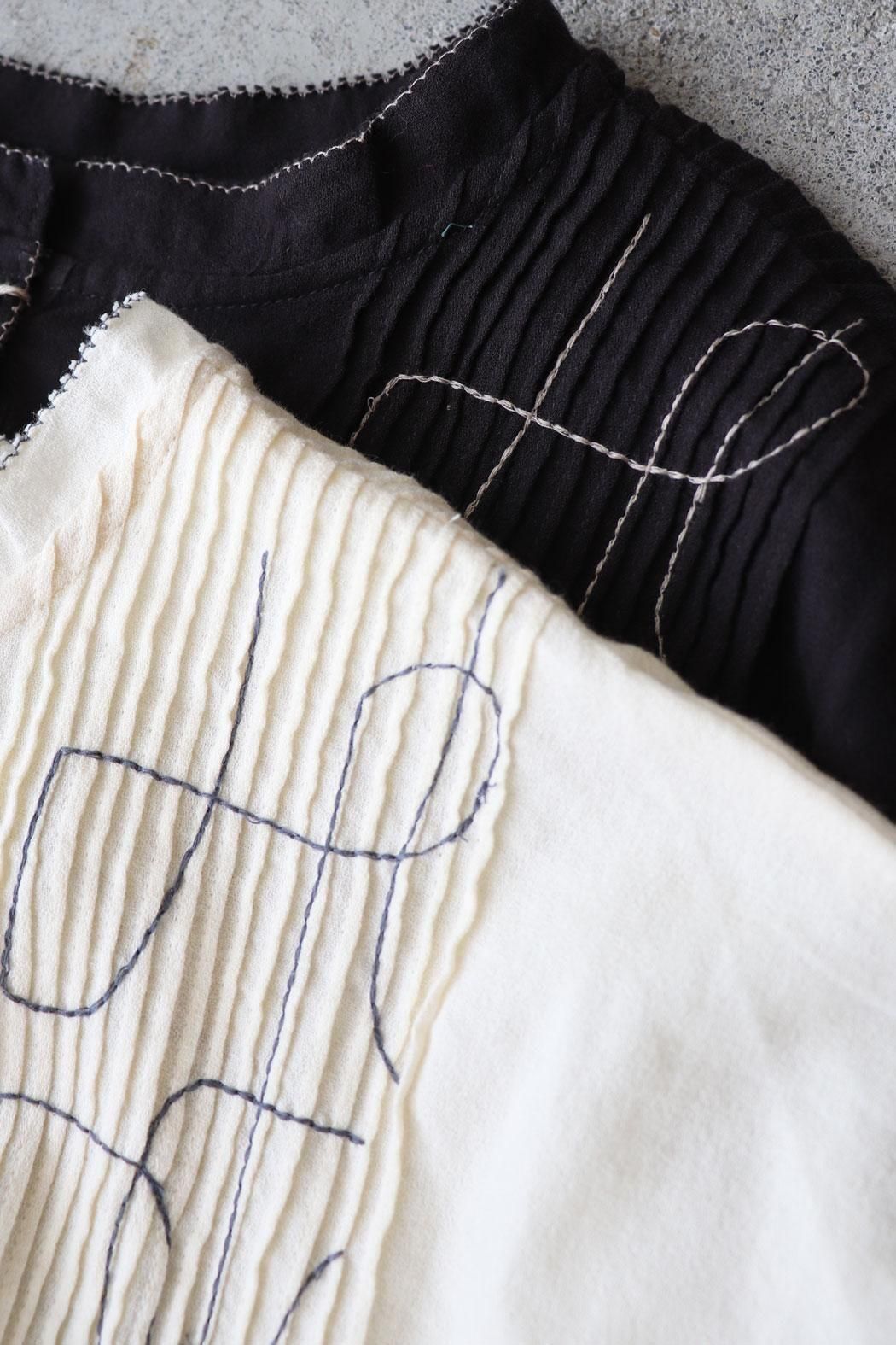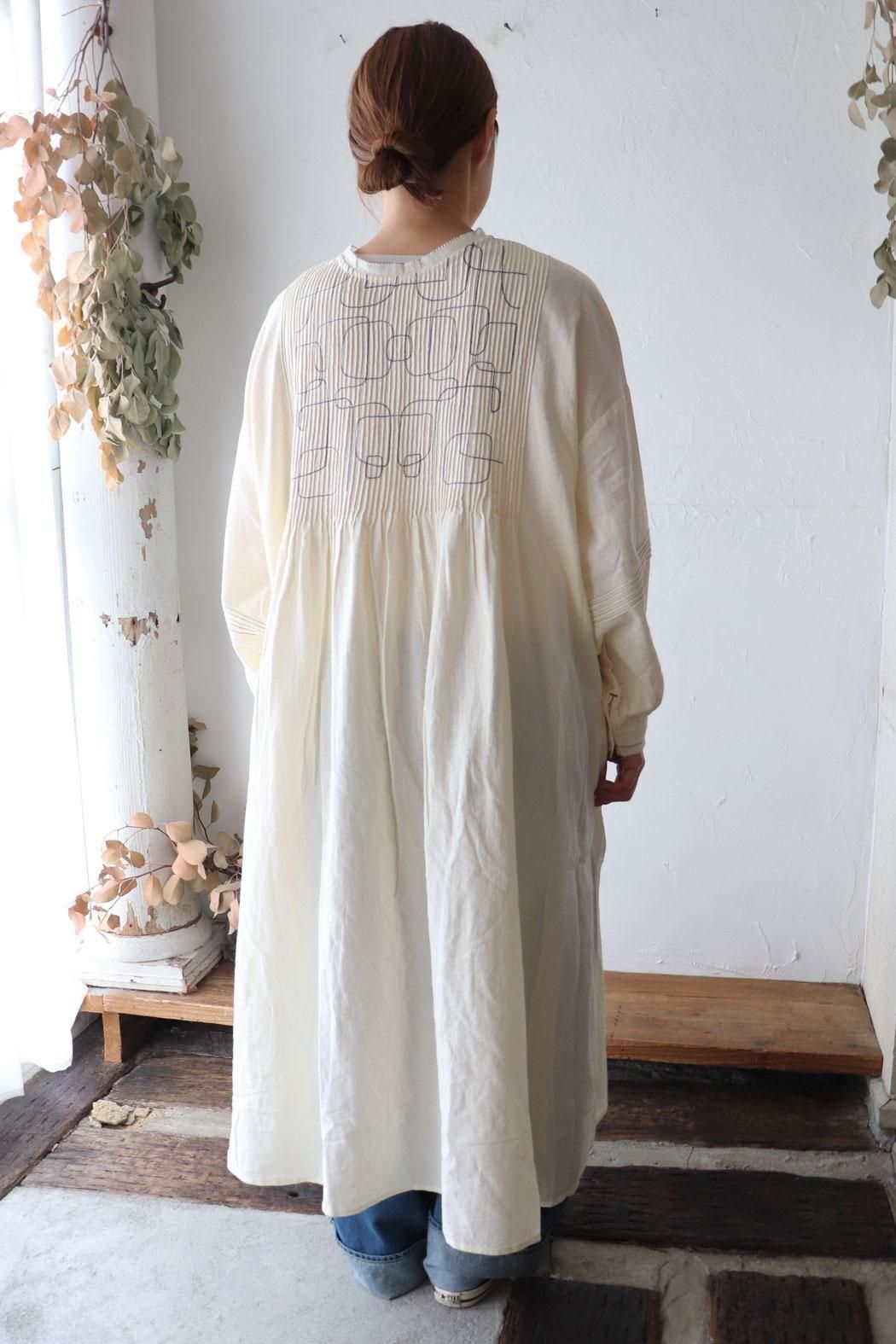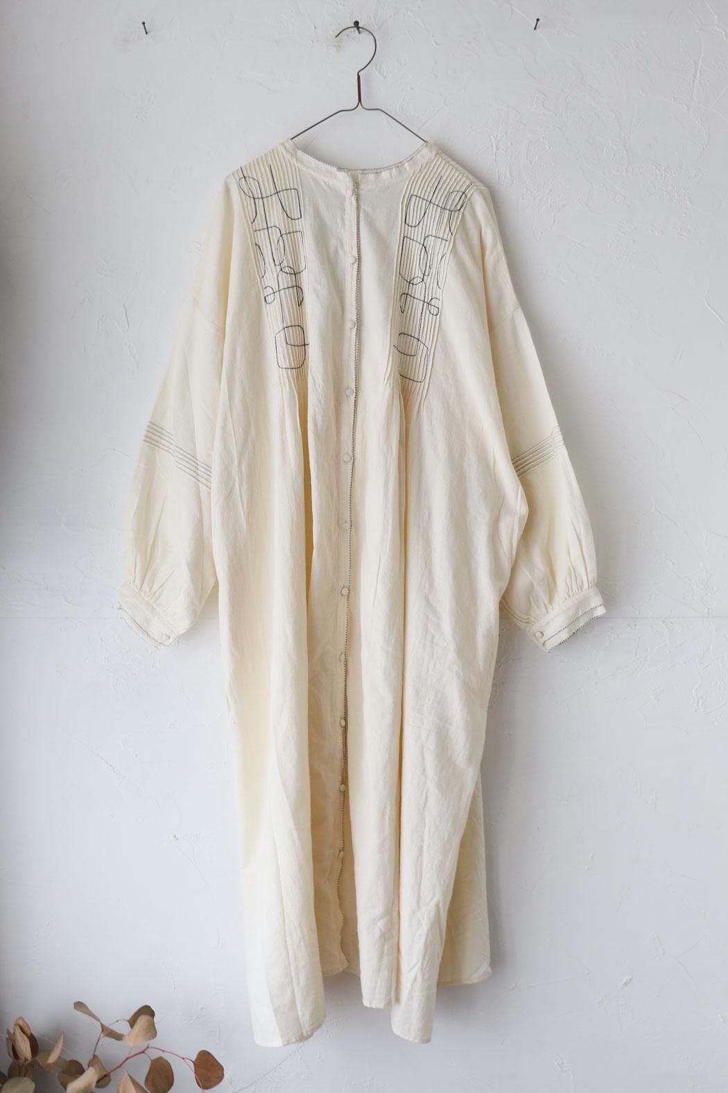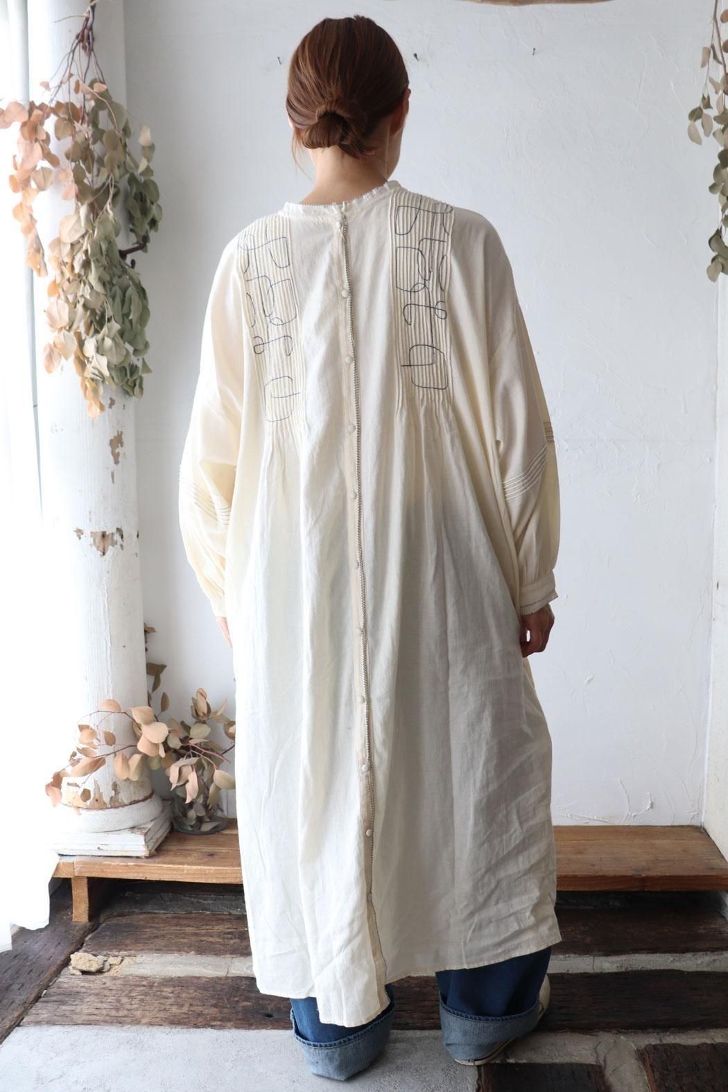 ピンタックの上に幾何学模様の刺繍を施した1着*