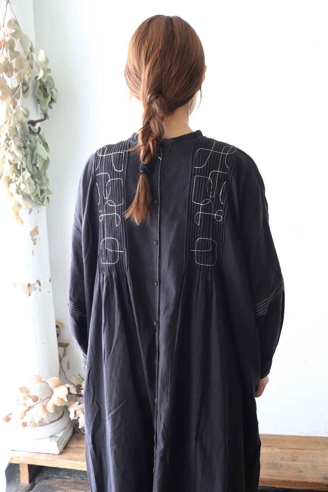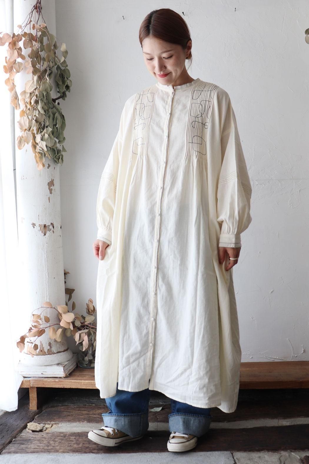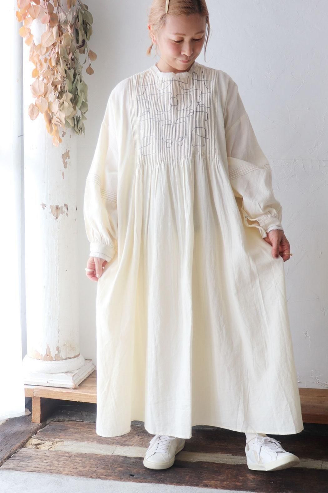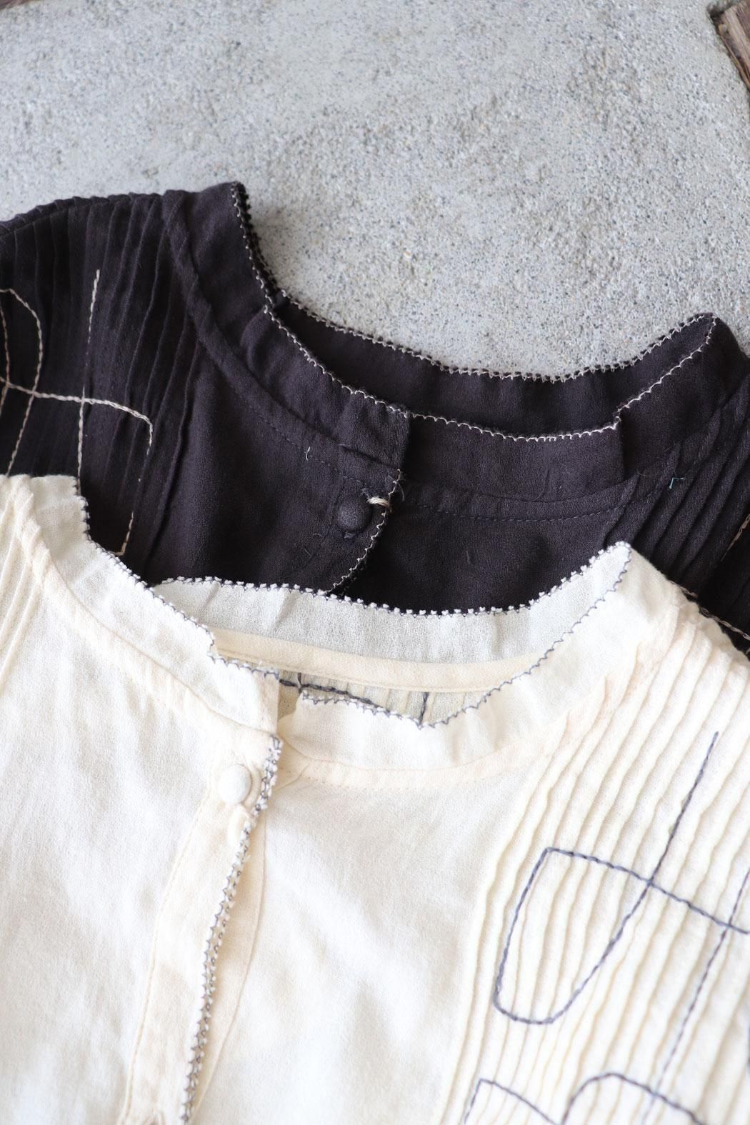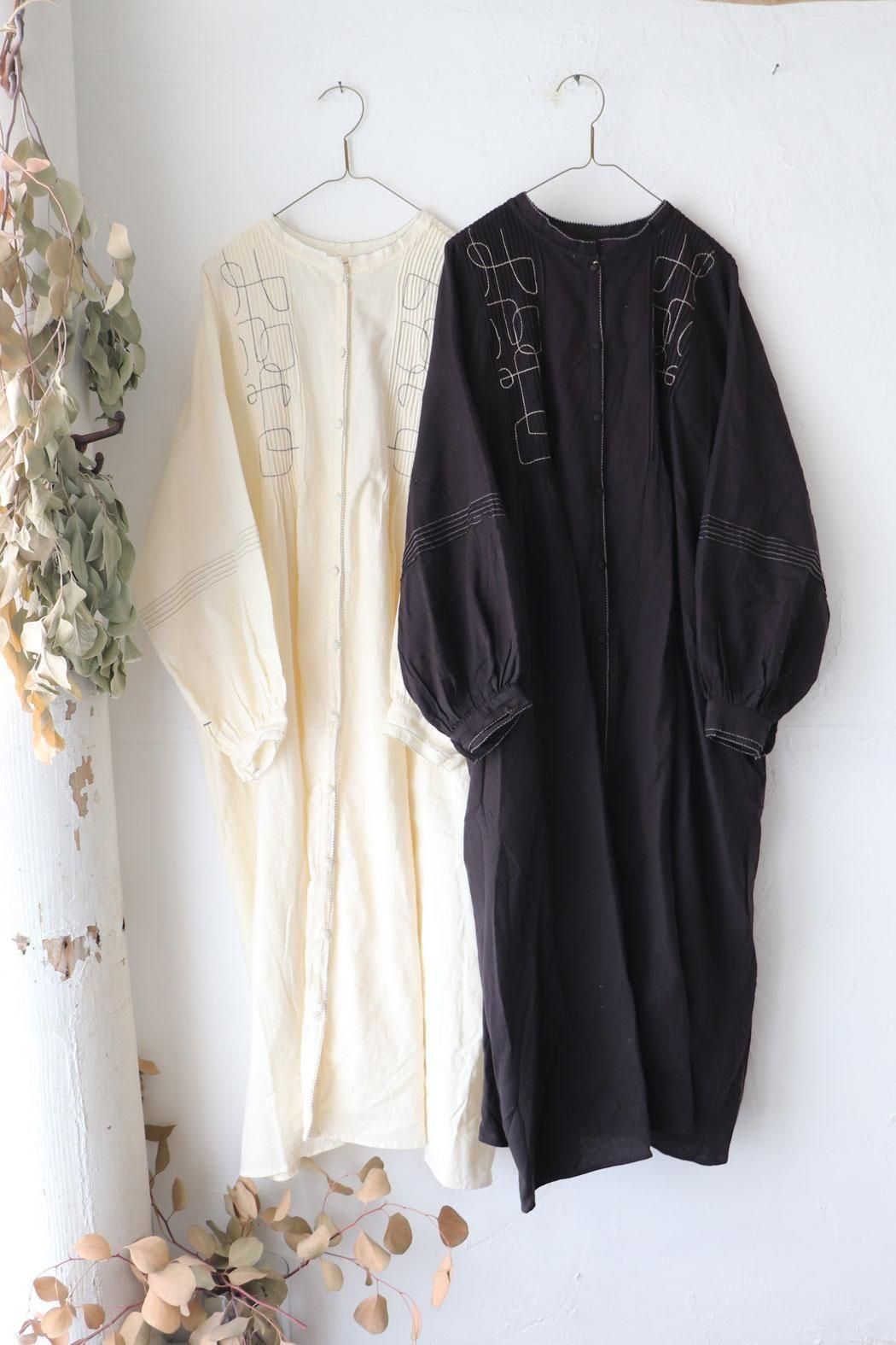 ピンタックの上に幾何学模様の刺繍を施した1着*