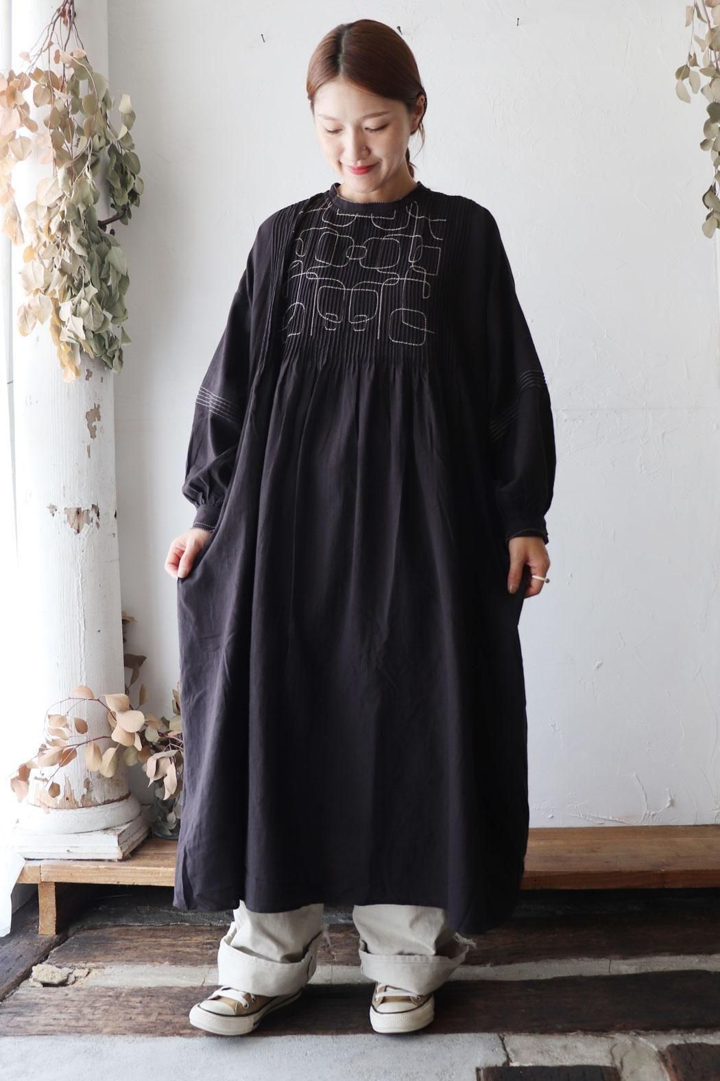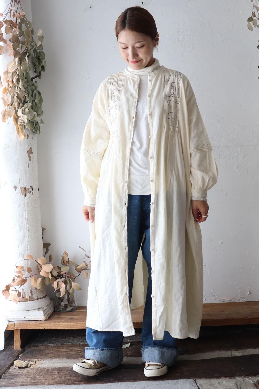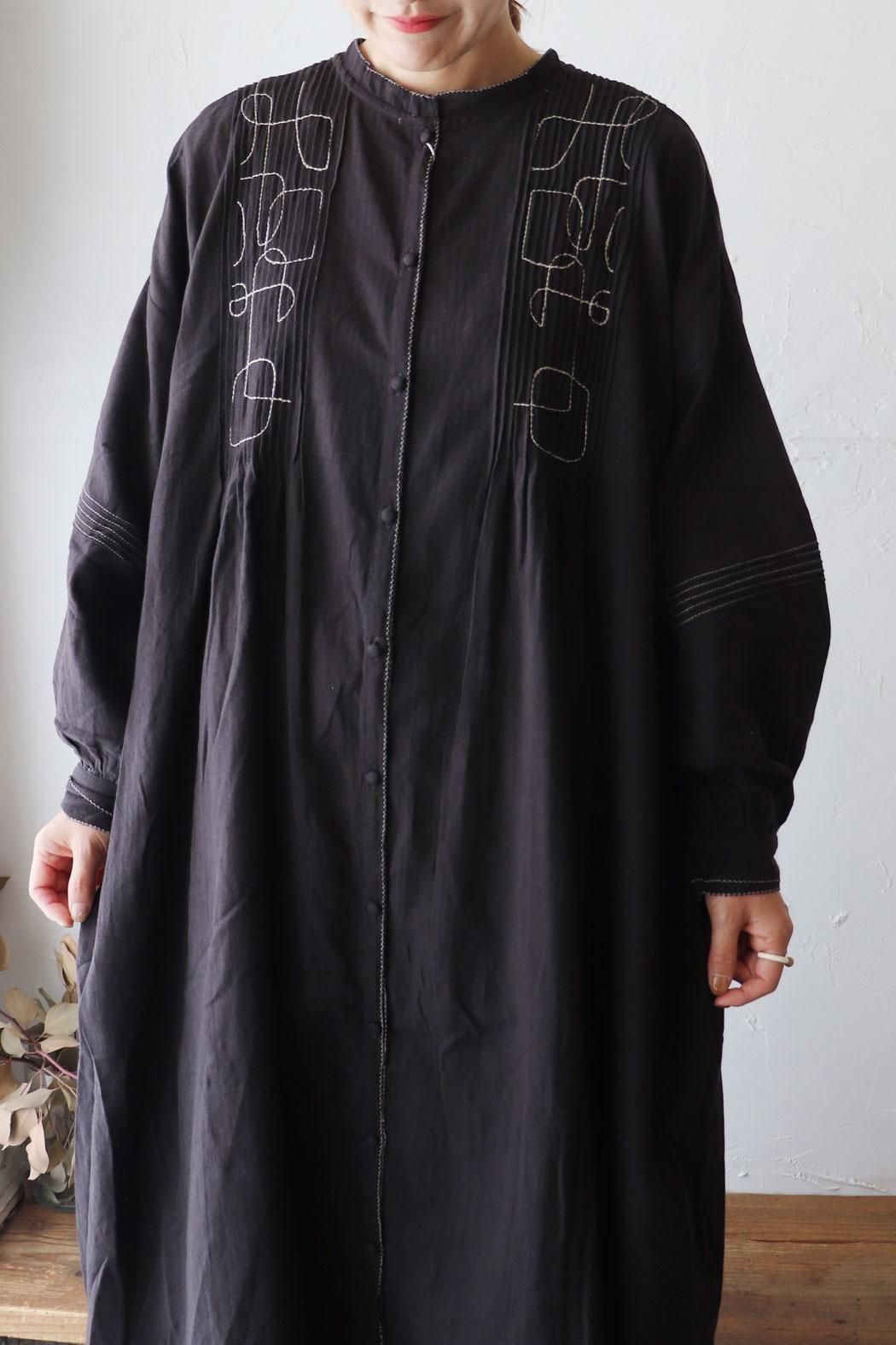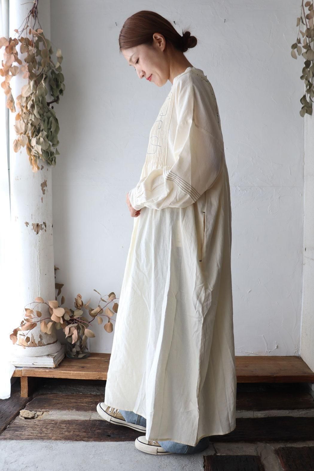 ピンタックの上に幾何学模様の刺繍を施した1着*