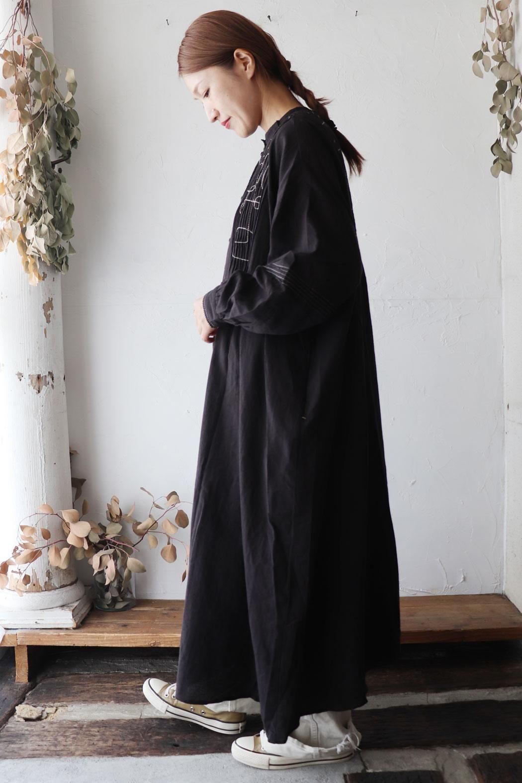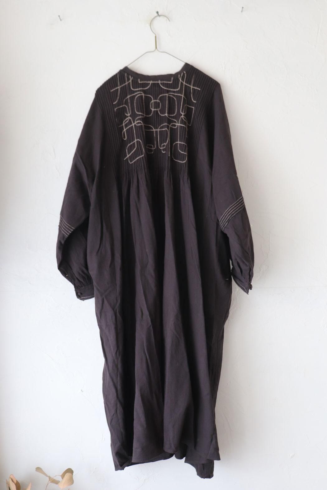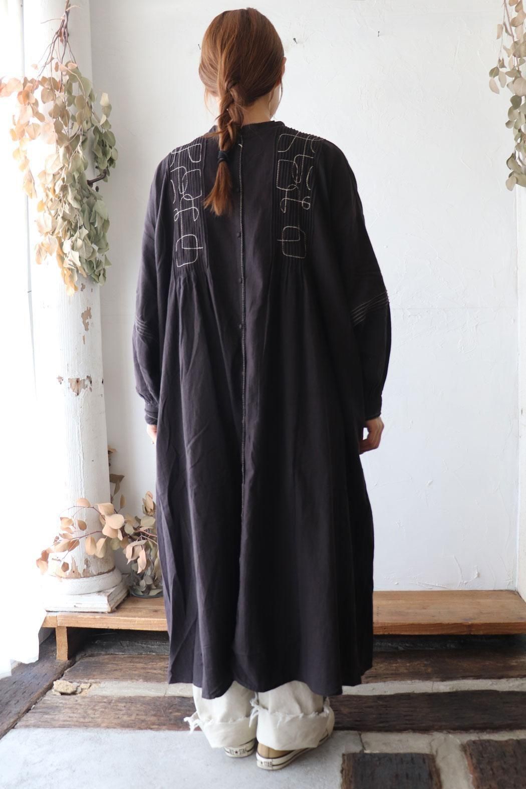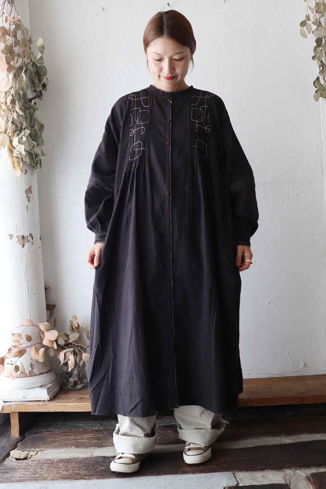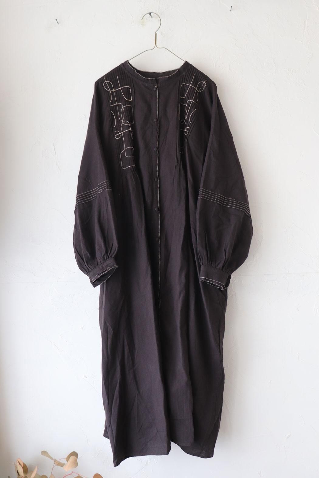 ピンタックの上に幾何学模様の刺繍を施した1着*