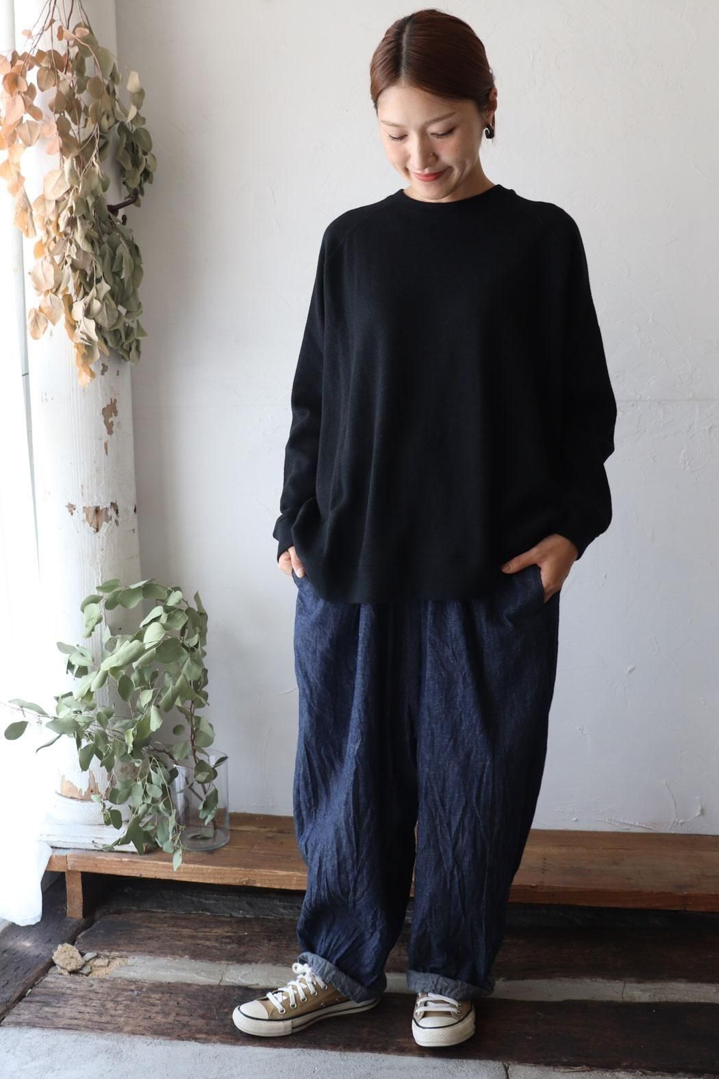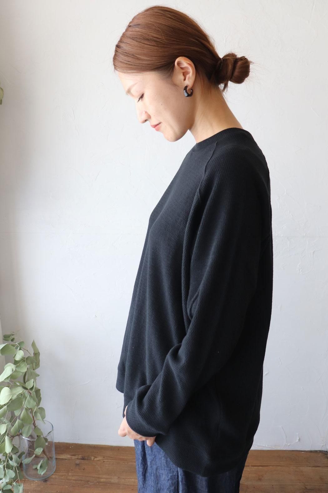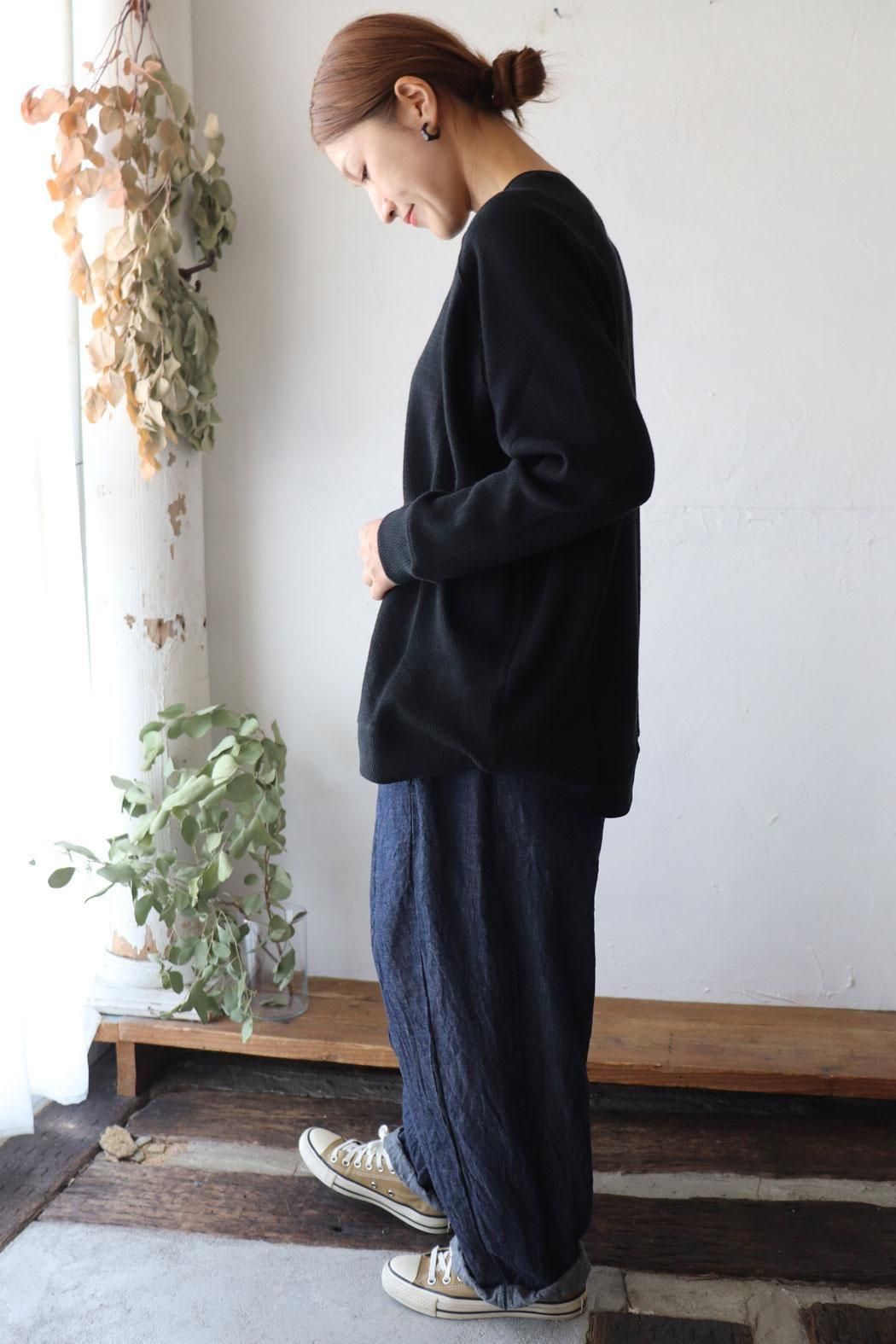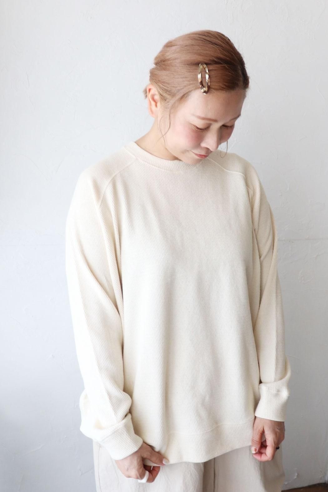 季節の変わり目に重宝するワッフルニットプルオーバー。