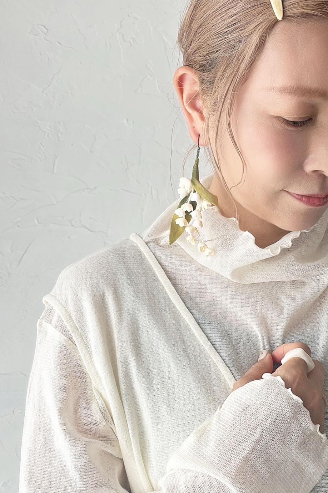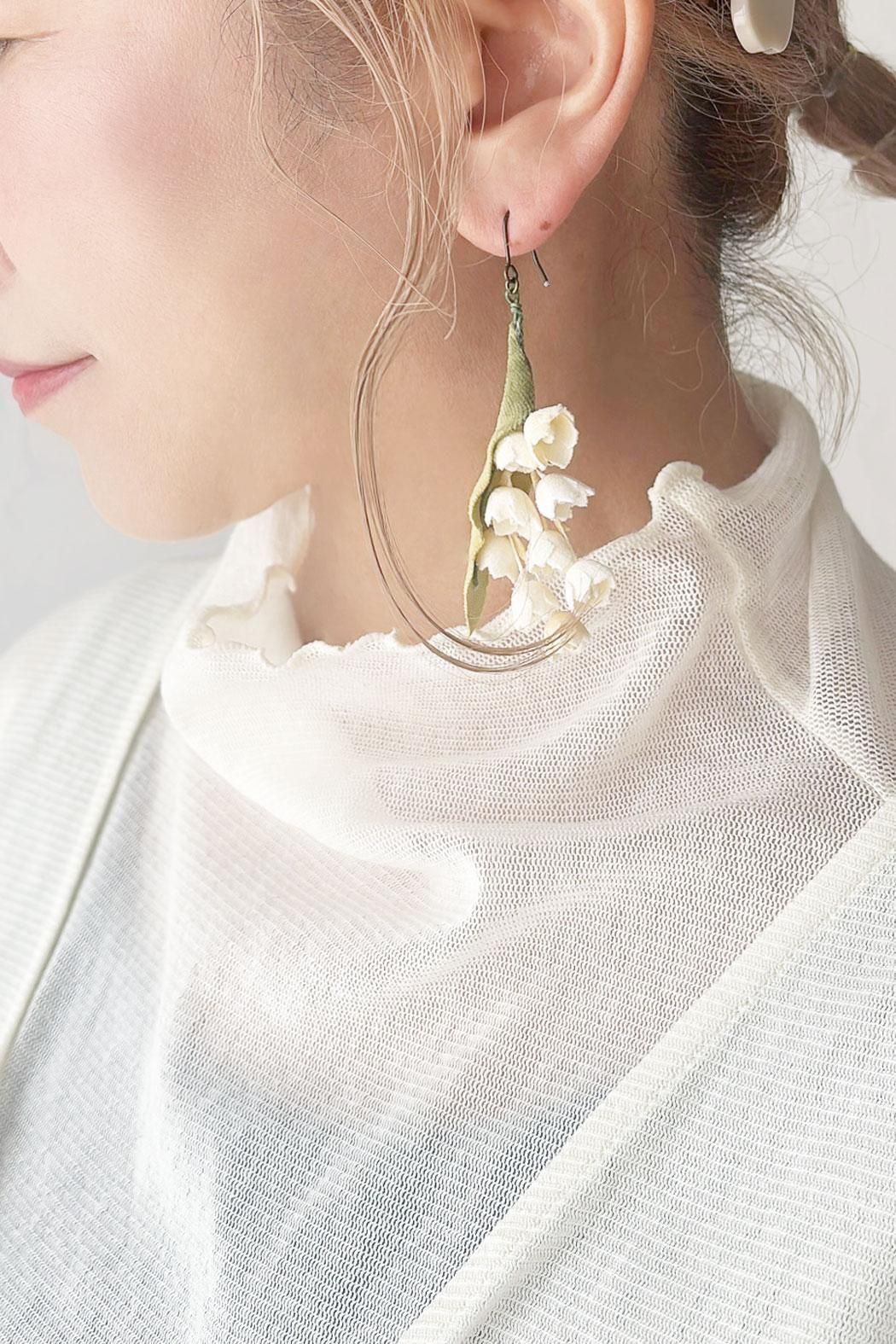 すずらんをモチーフにした、上品でクラシカルな印象のピアス。