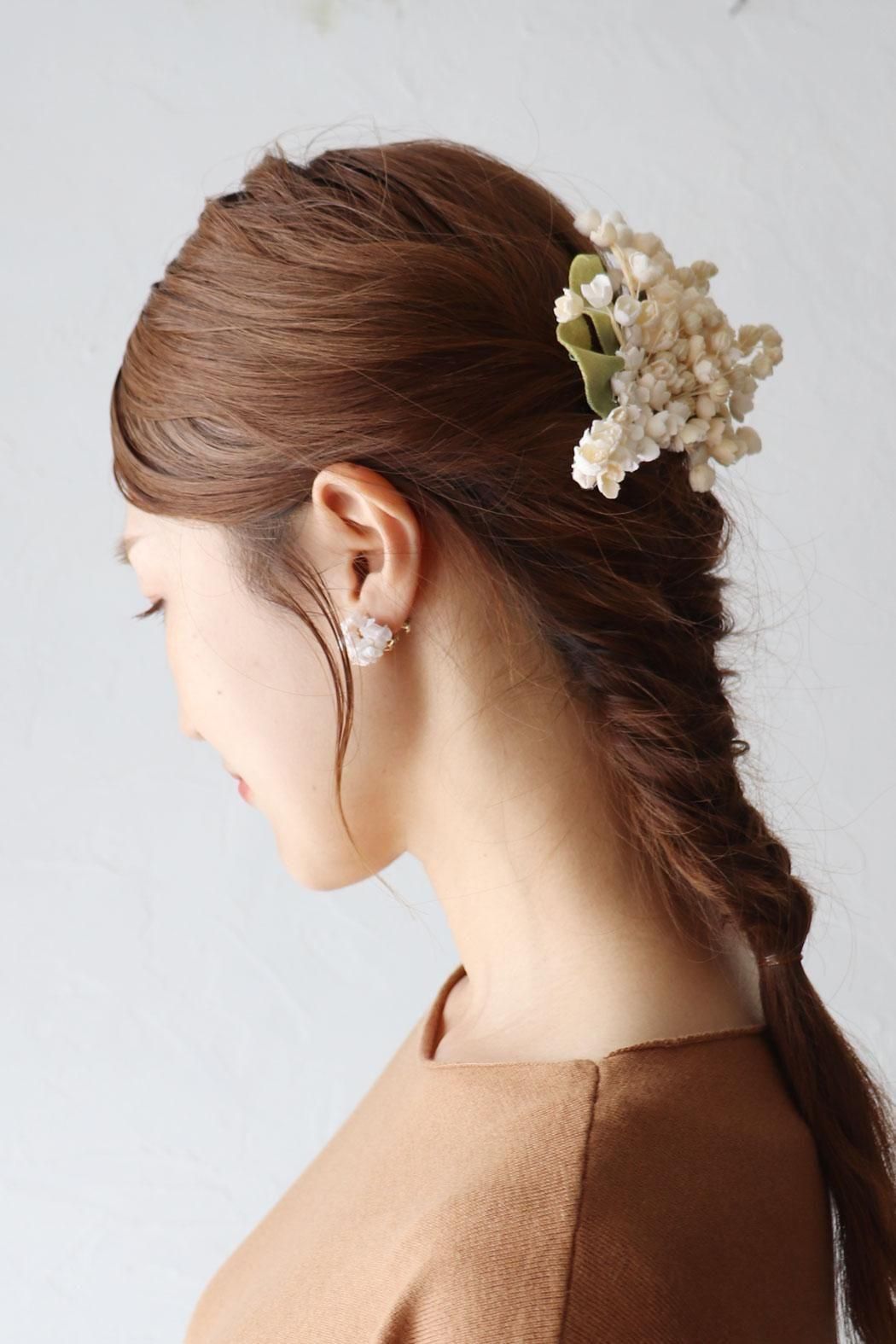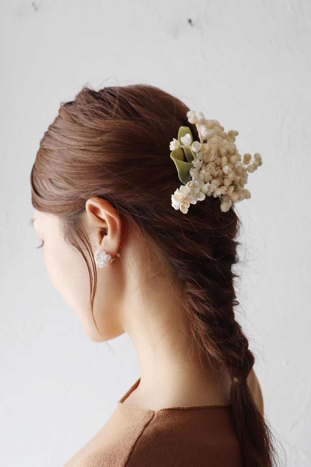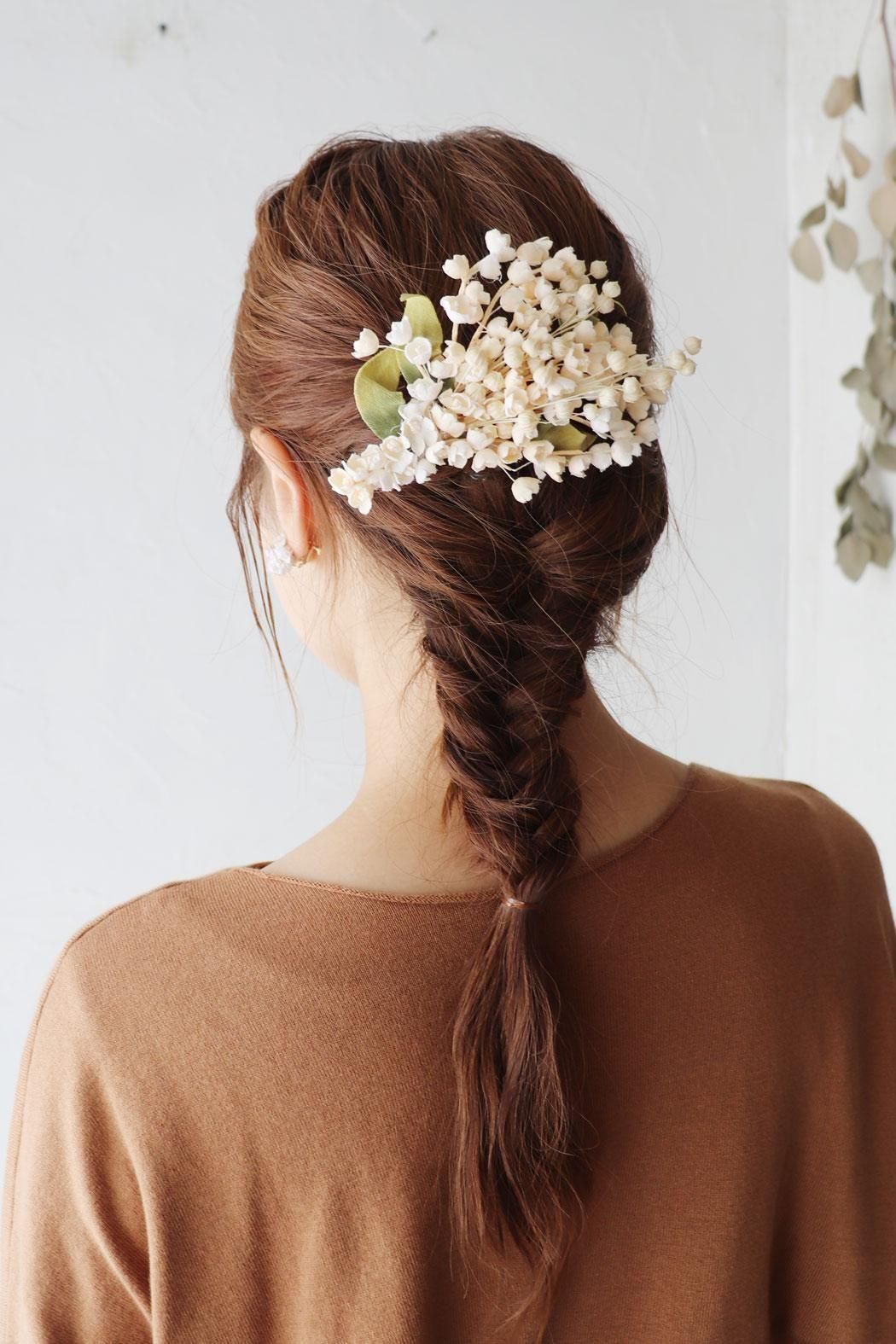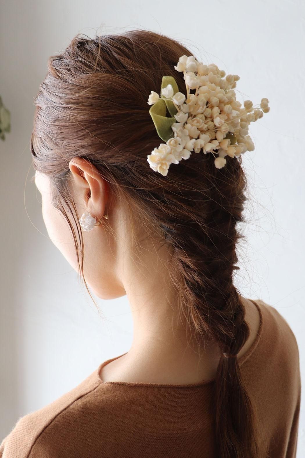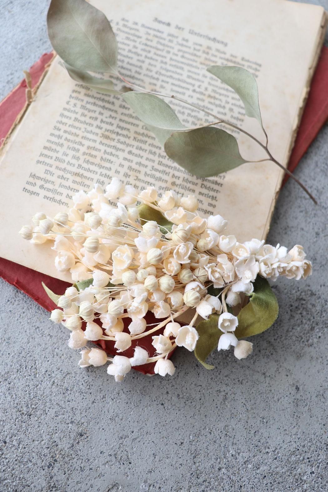 すずらんをモチーフにした、上品でクラシカルな印象のコサージュ。