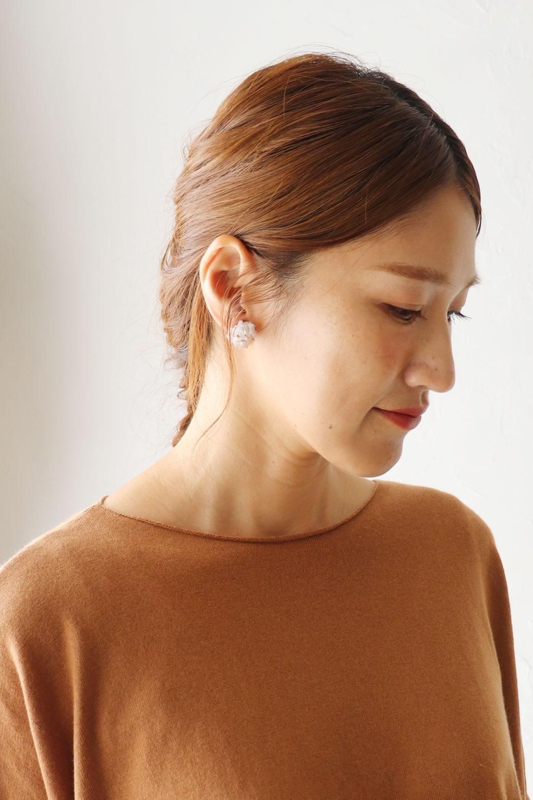 さりげなく顔周りを華やかにしてくれる、程よいサイズ感が魅力*