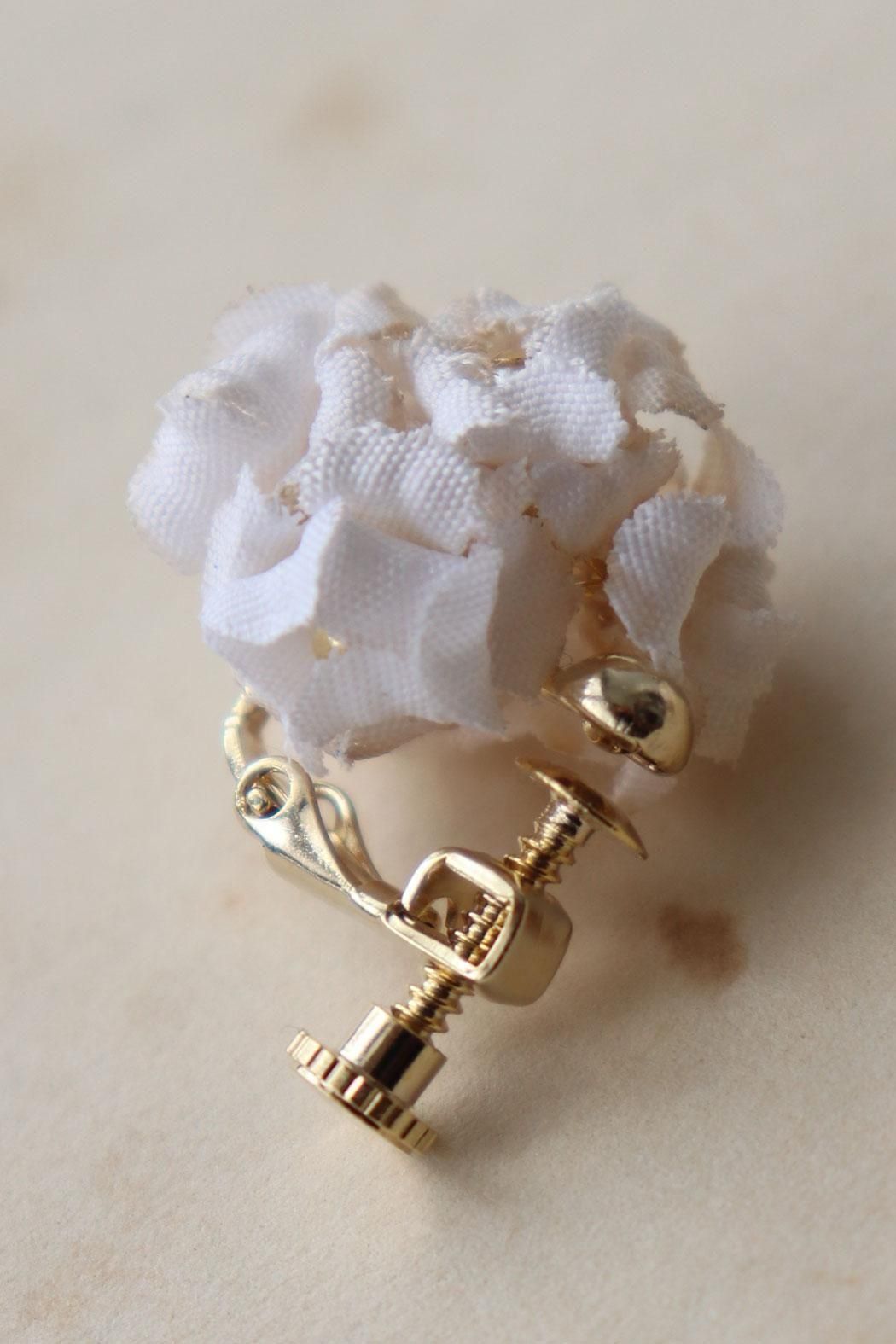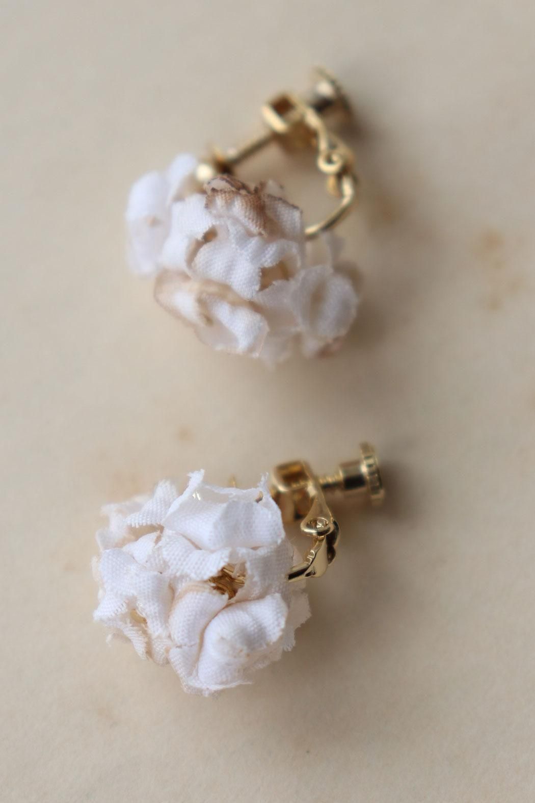小さな手毬のような丸みが可愛いコデマリをモチーフにしたイヤリング。