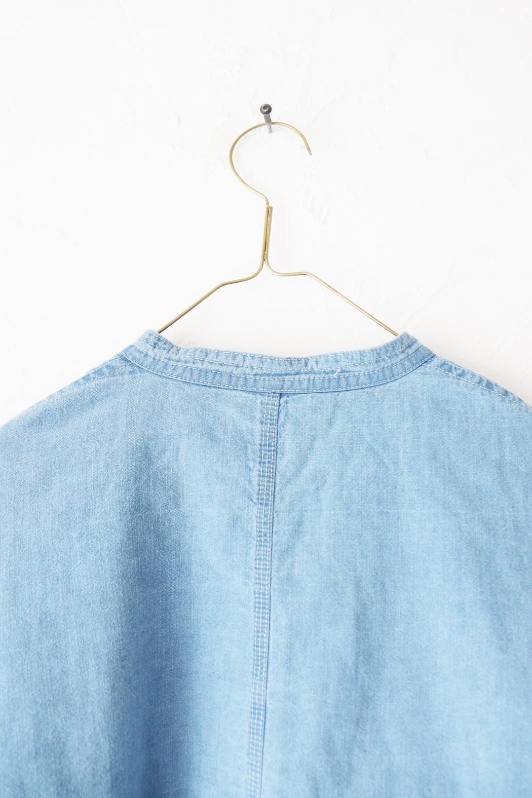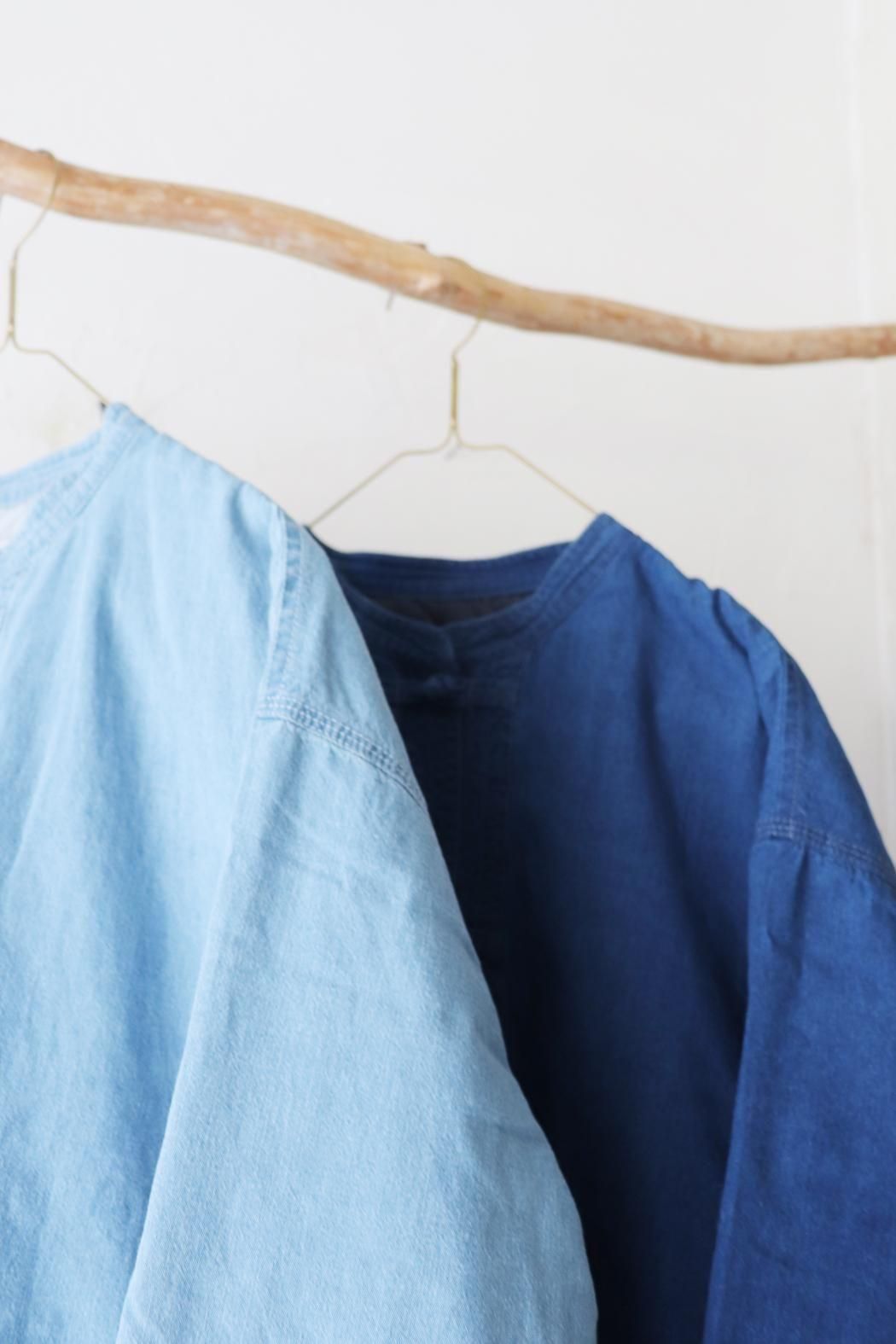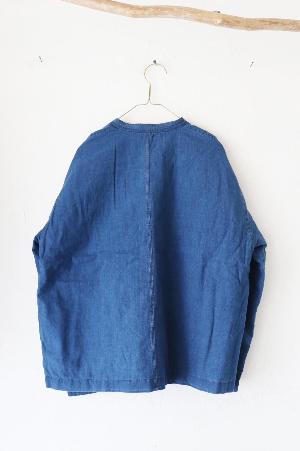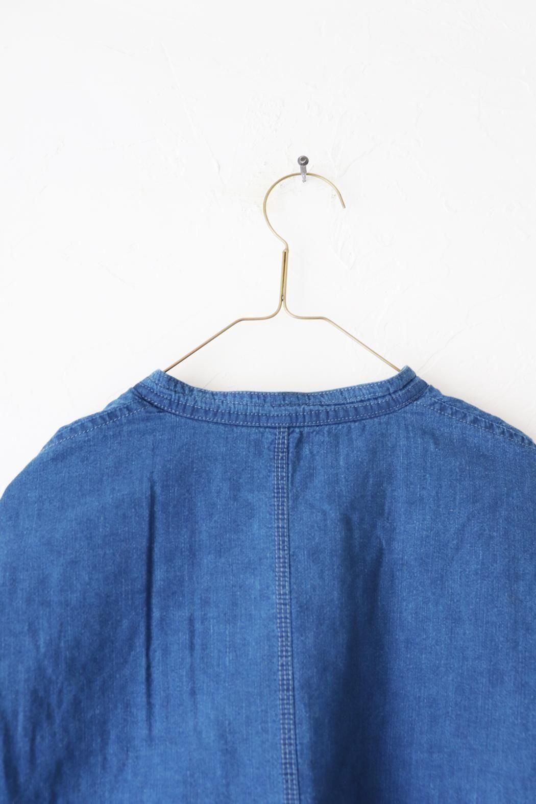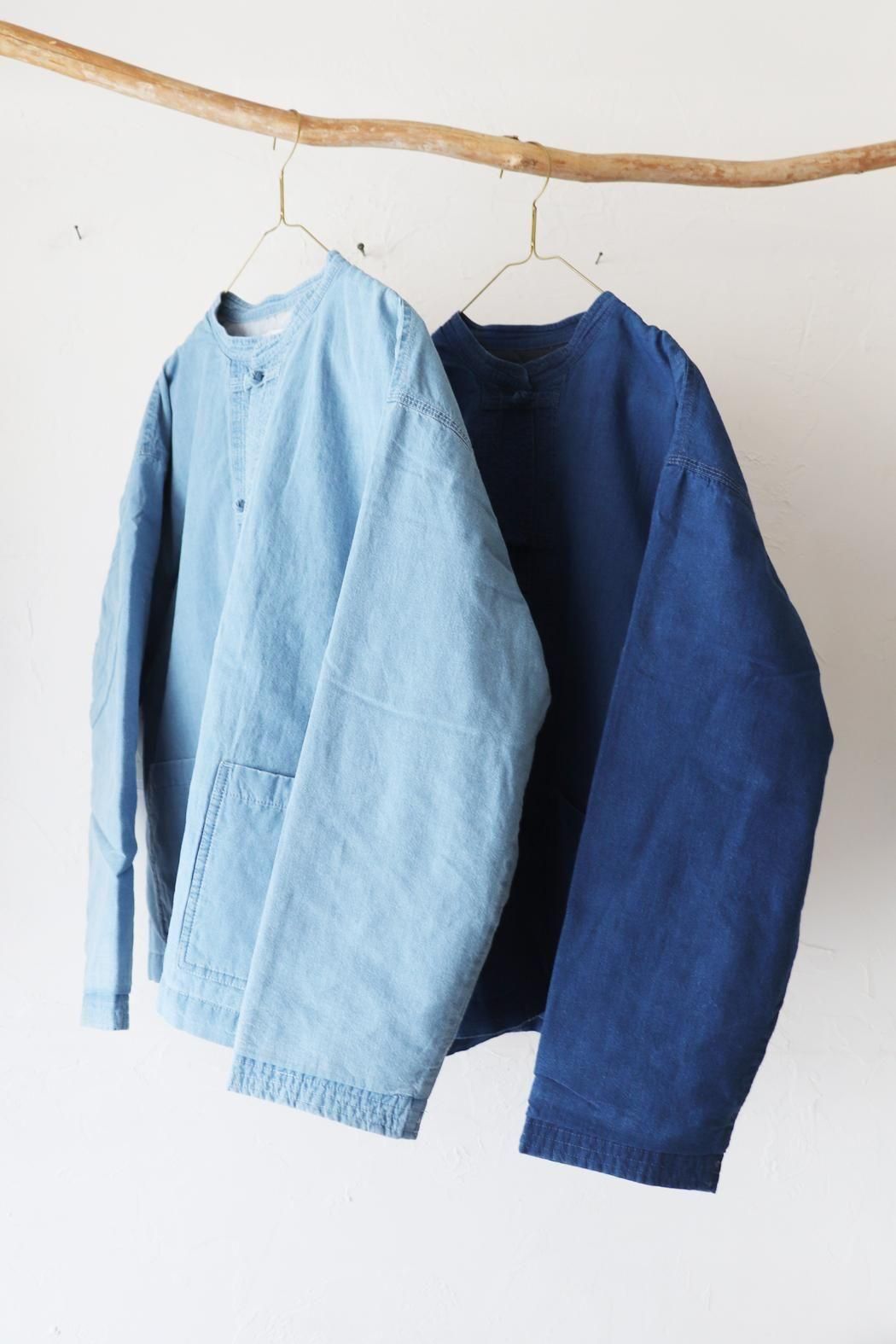 インディゴシャンブレー素材を使用したキルトジャケット。