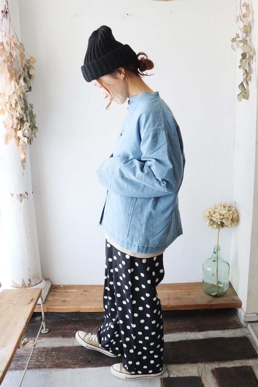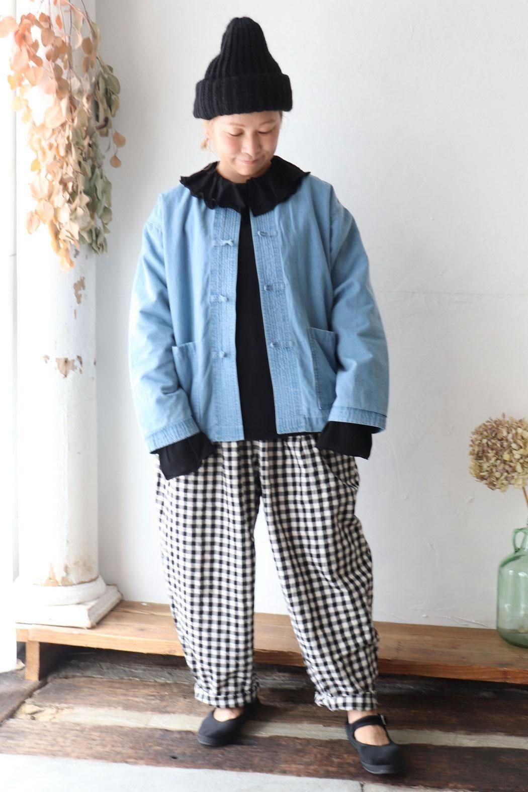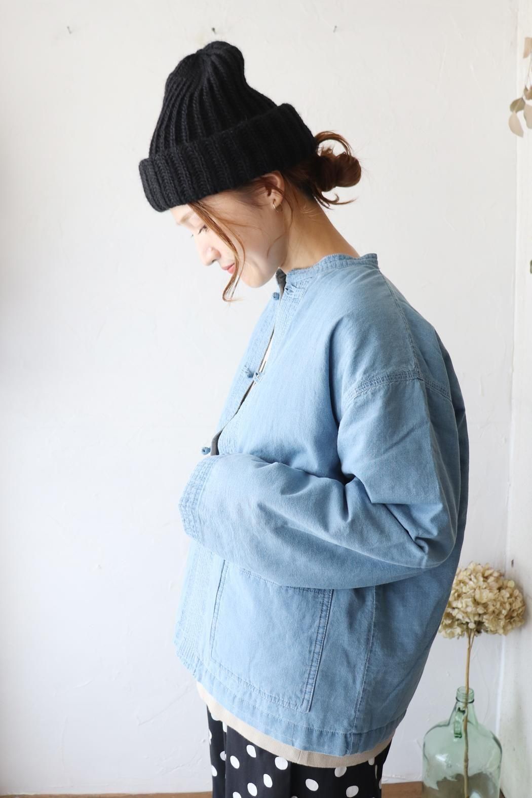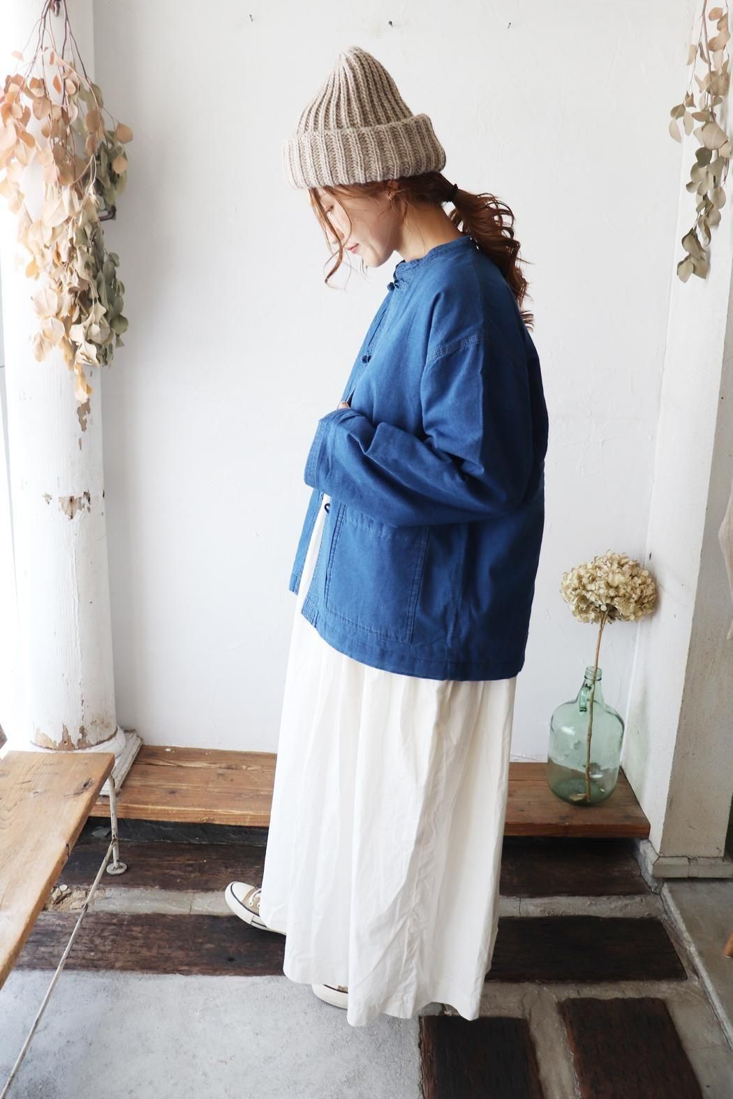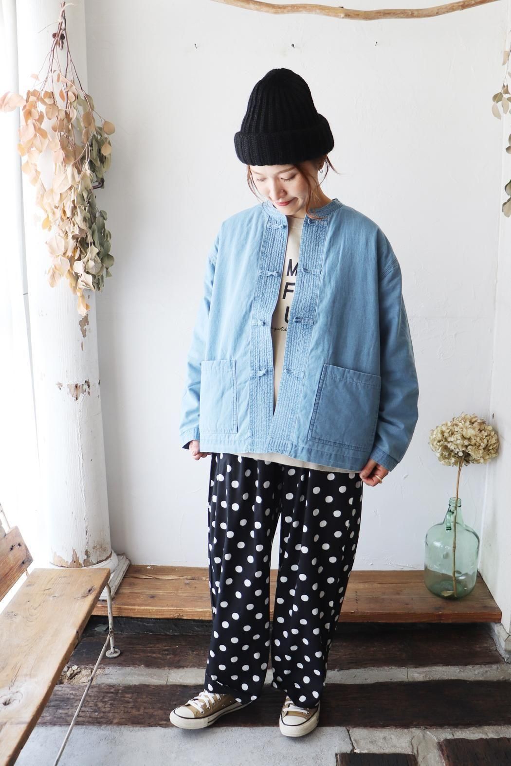 ゆったりとしたシルエットと、チャイナボタンのディティールが