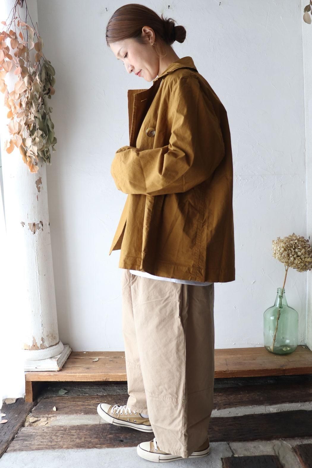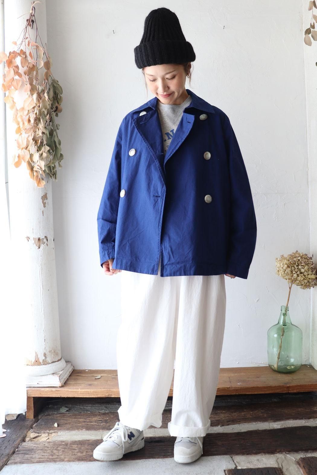 コットン100%の生地で仕立てた定番人気のダブルボタンのショートコート。