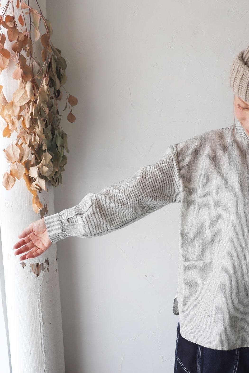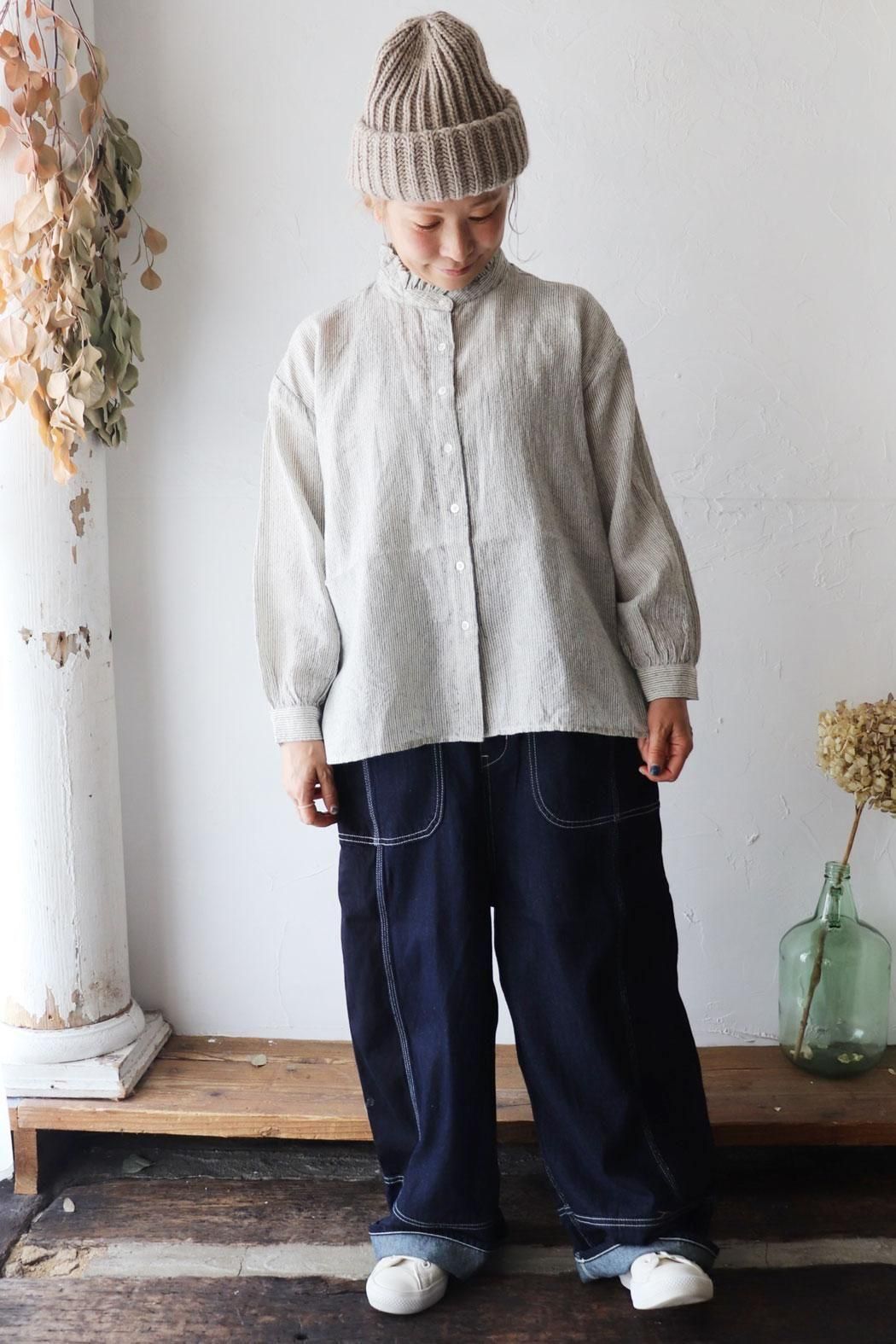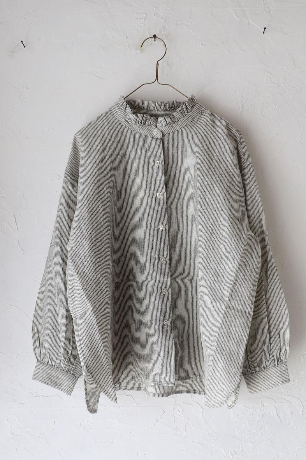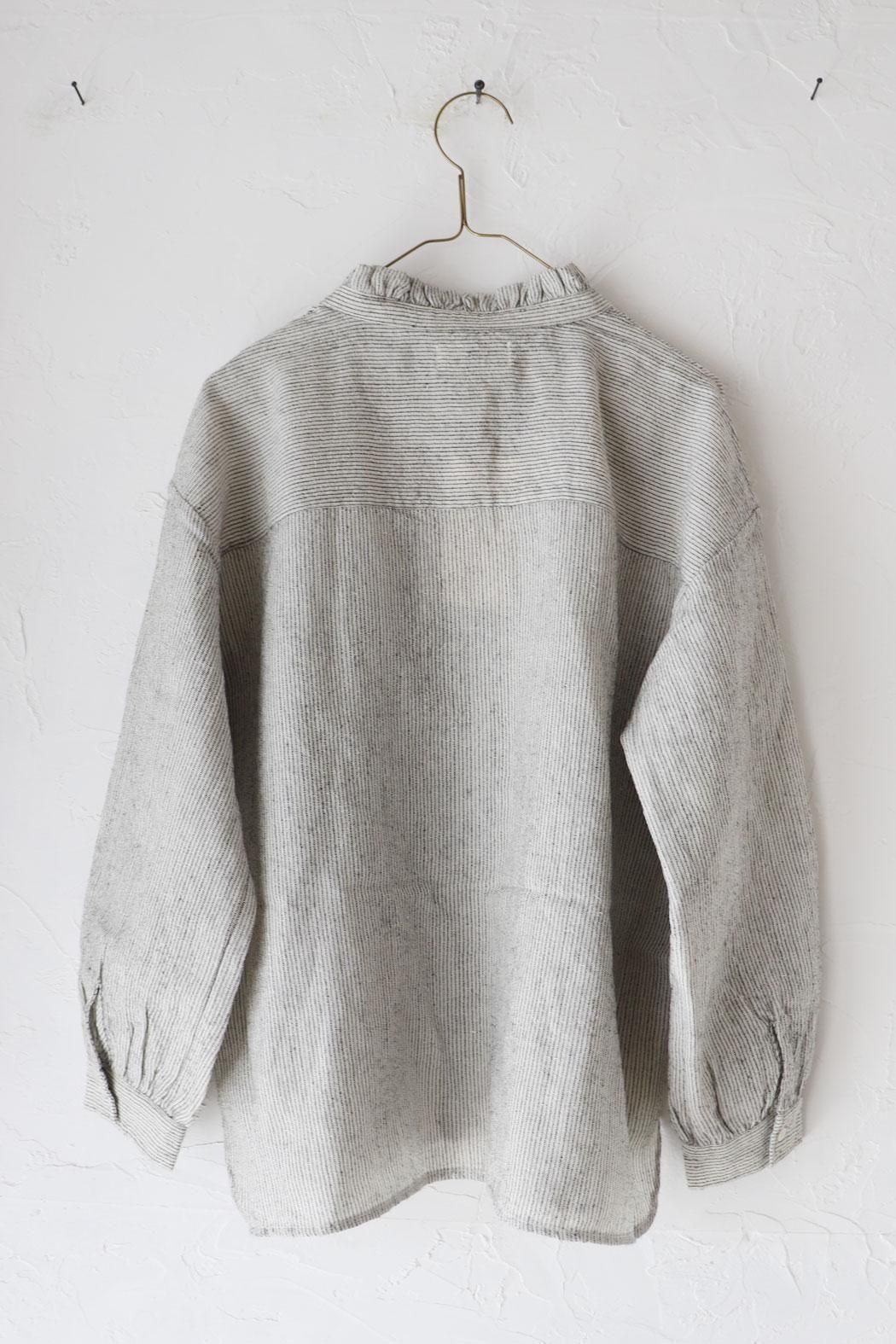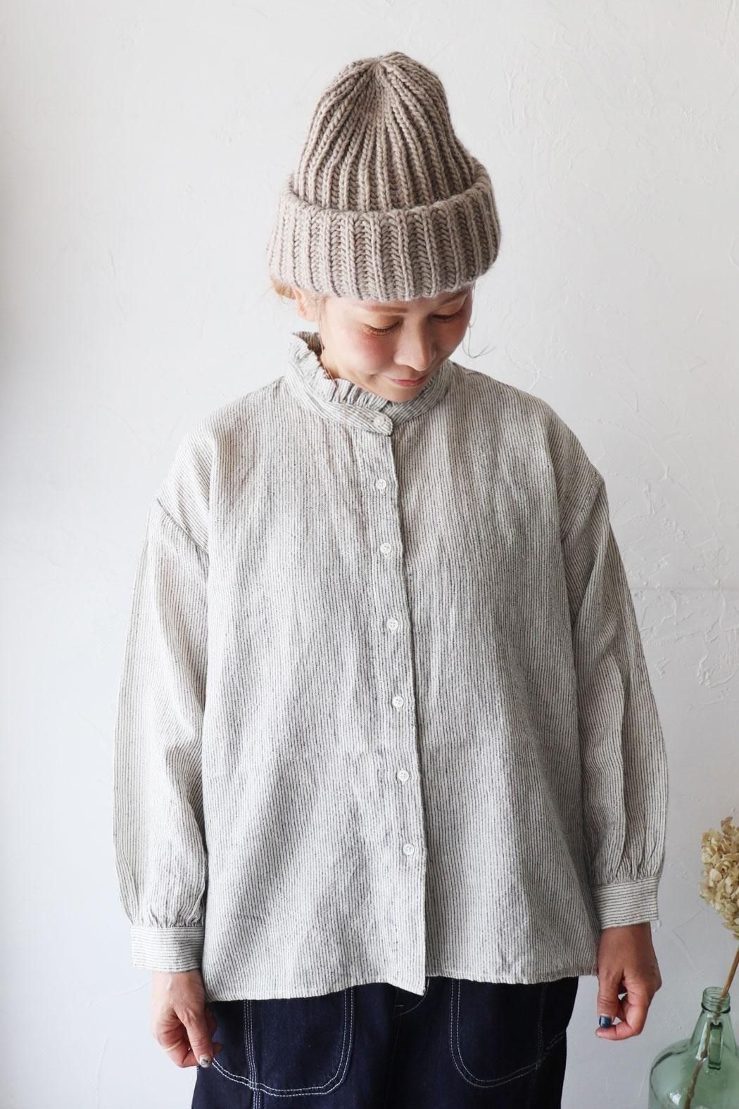 SOIL(ソイル) WOOL/LINEN STRIPE FRILL COLLAR SHIRT