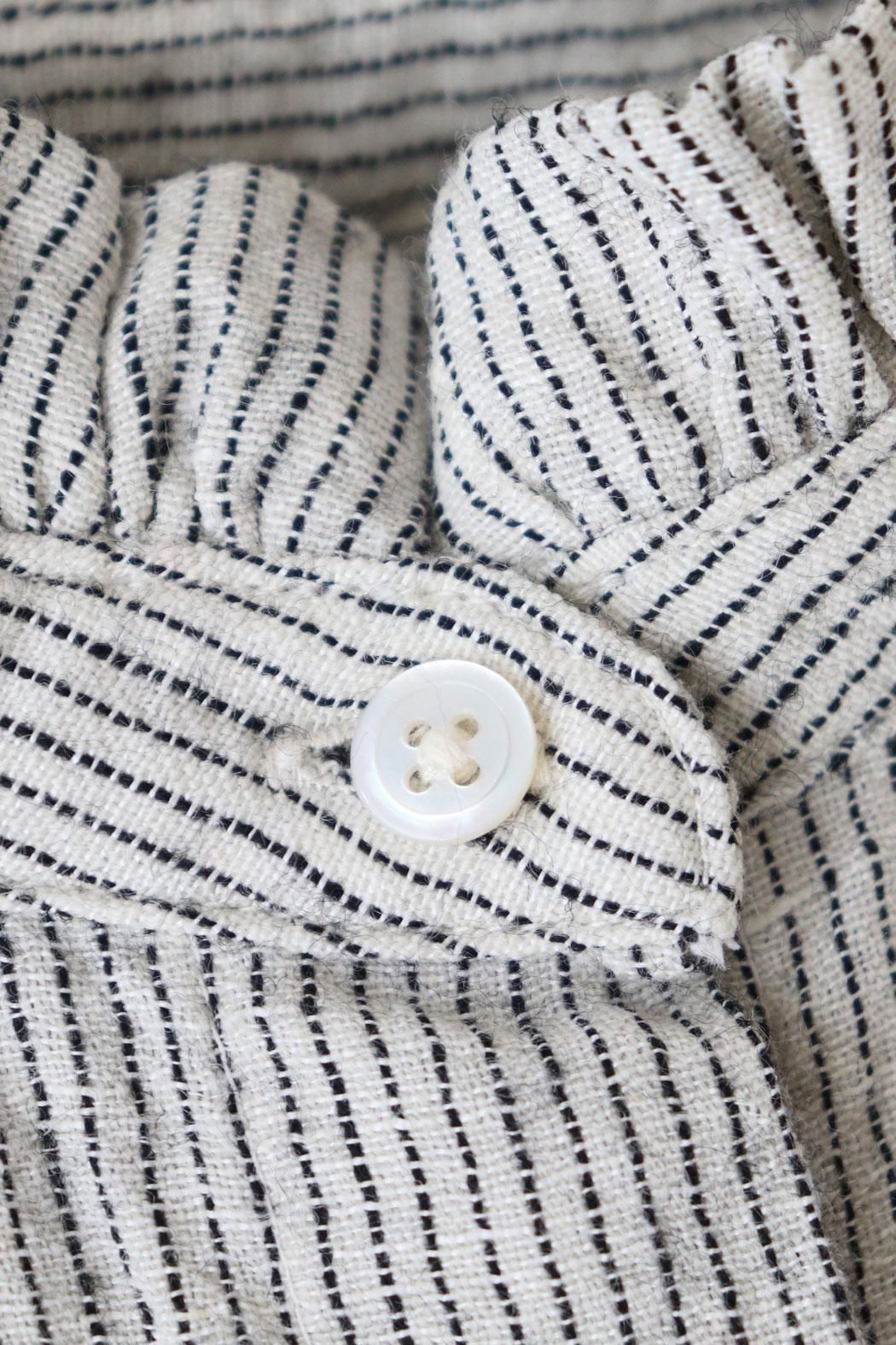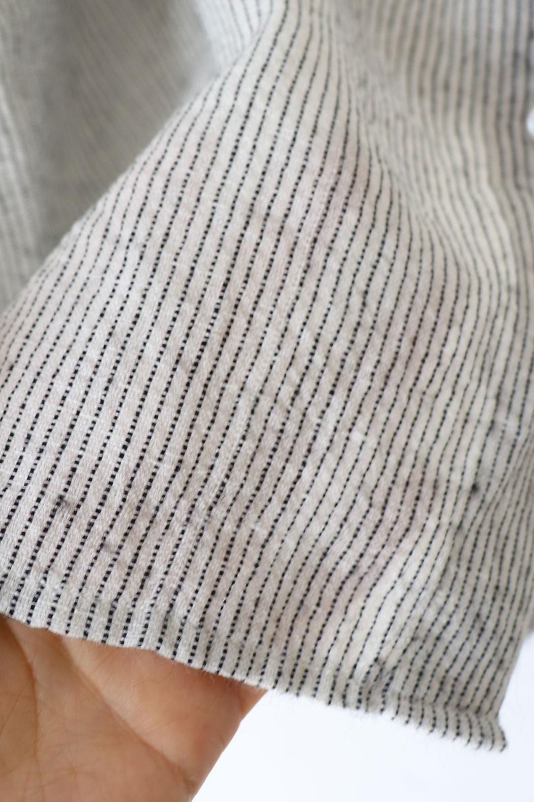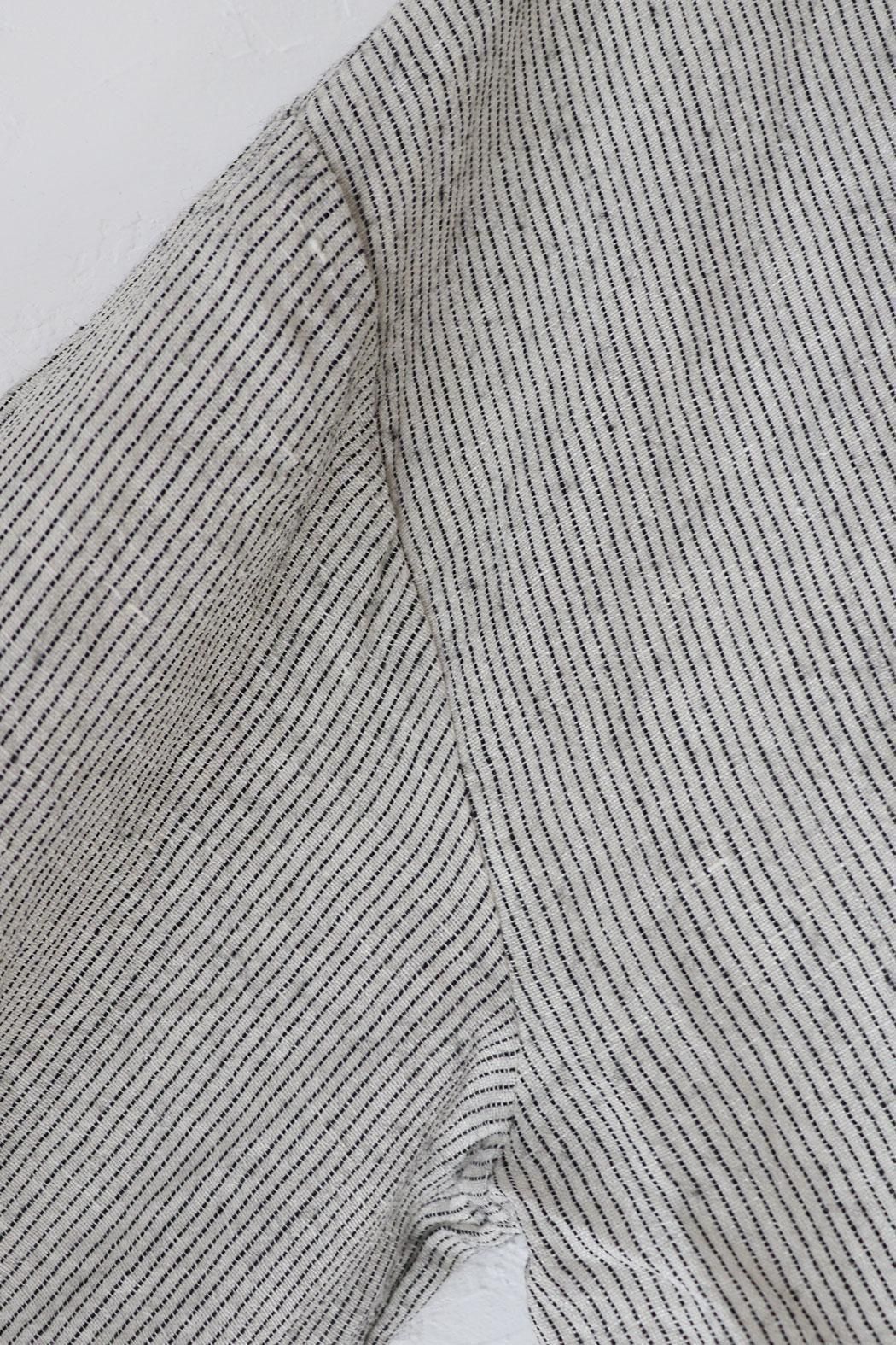 ウールリネンの温かみある生地に爽やかなストライプをあてて、初秋にぴったりな1着*