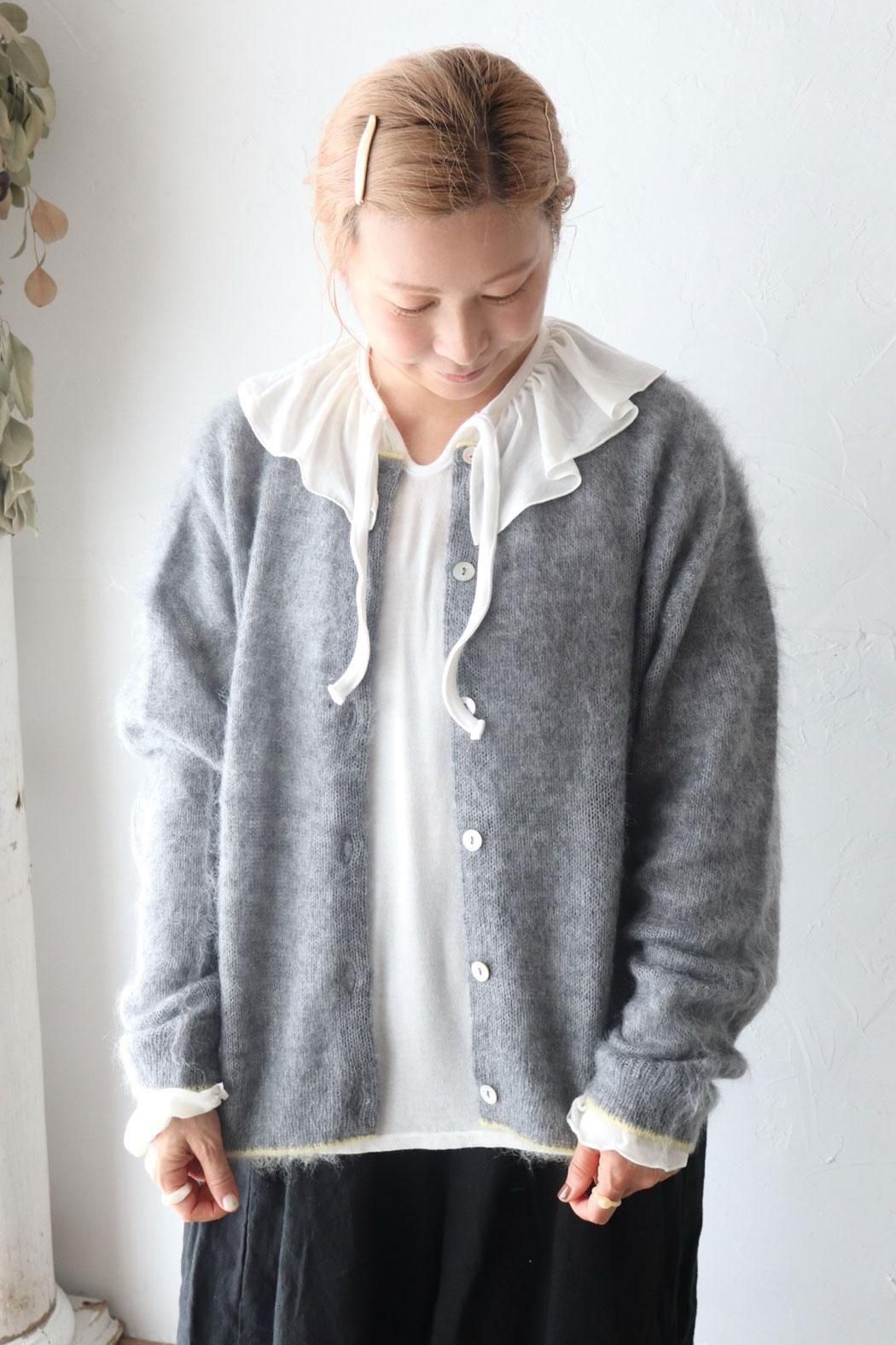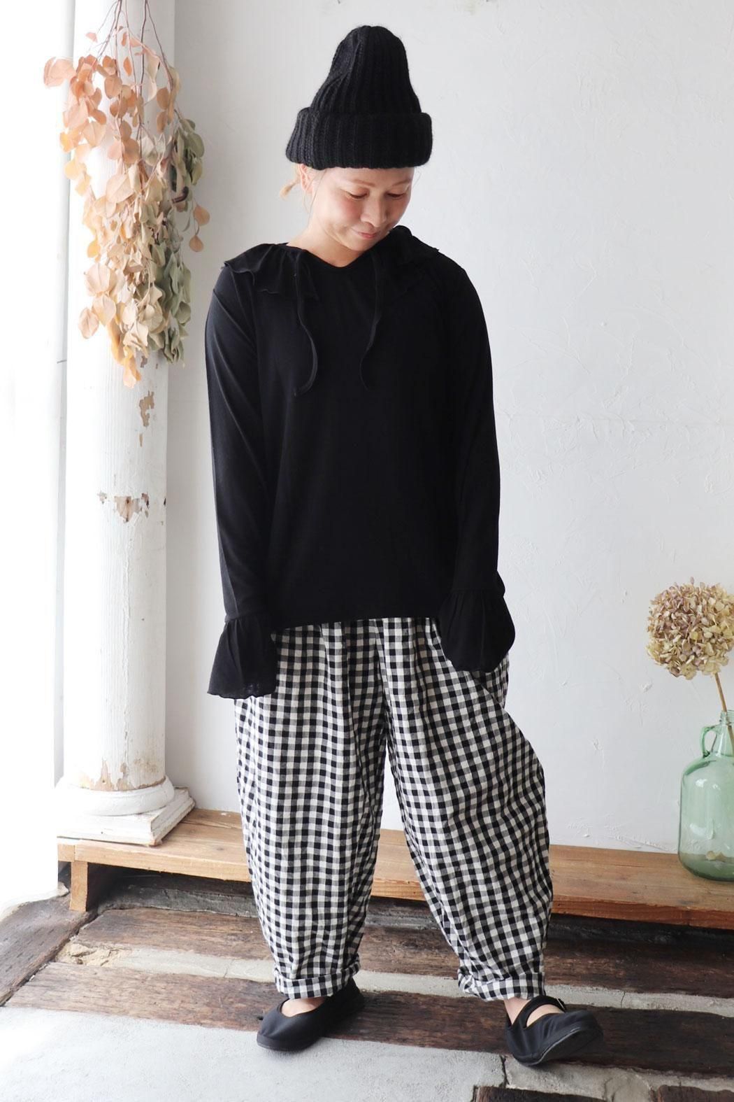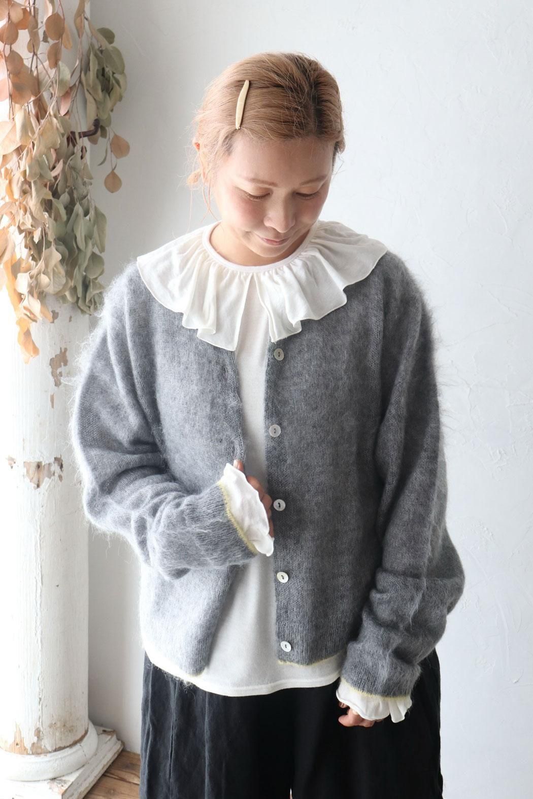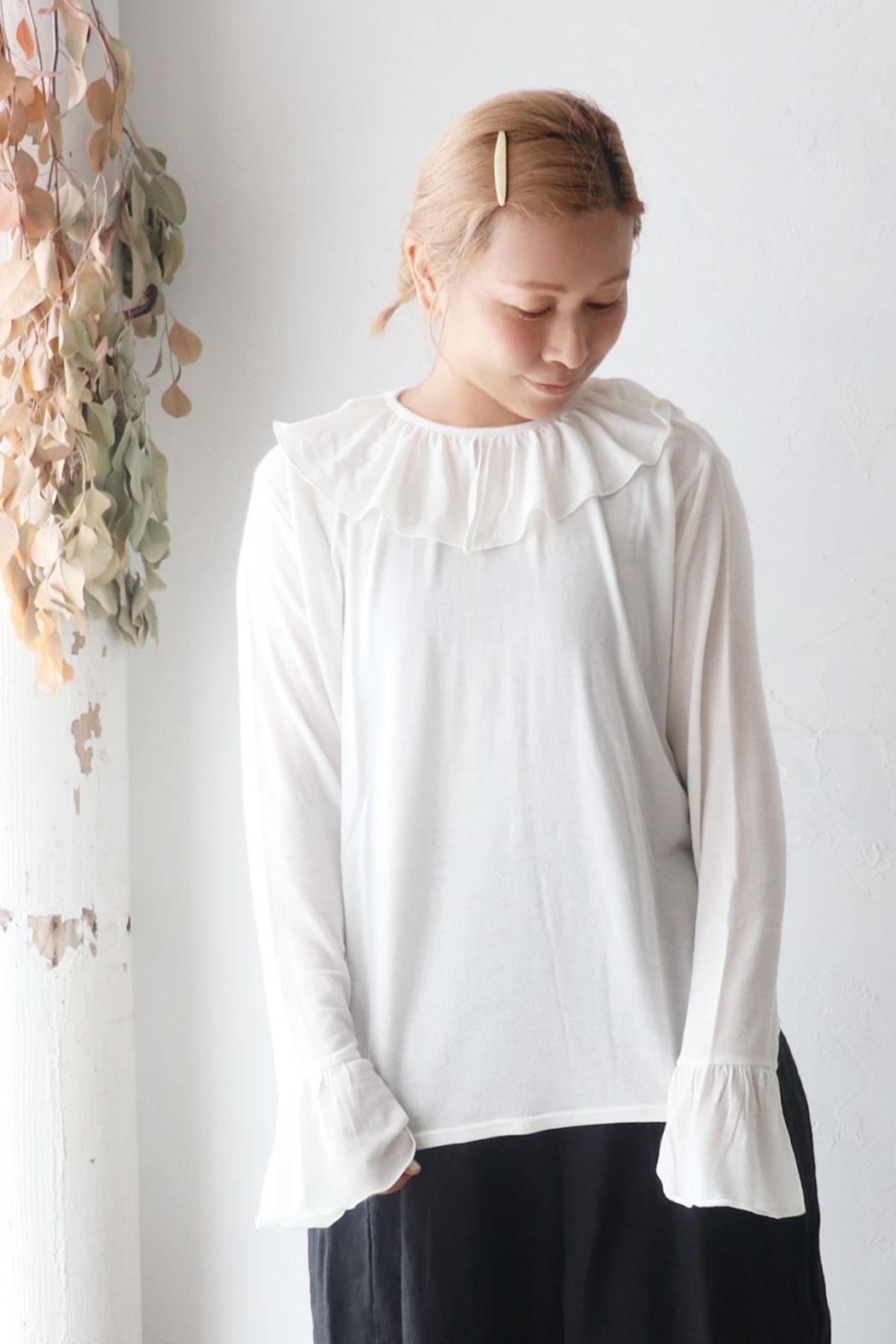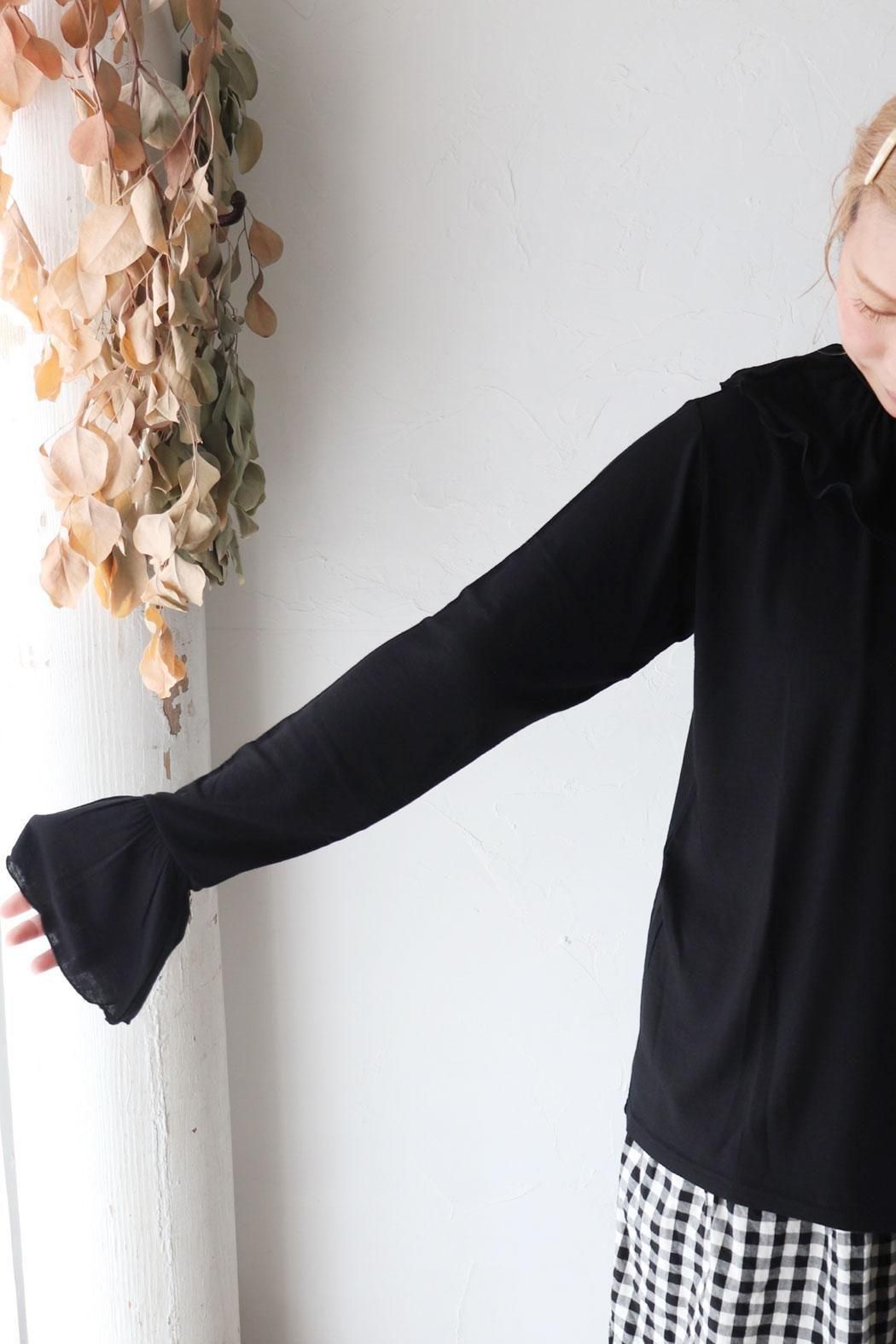 衿元や袖口のフリルをチラ見せするレイヤードスタイルにもぴったり。