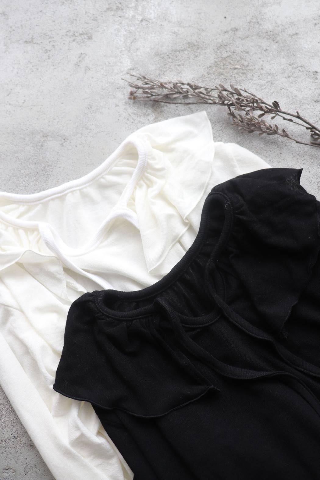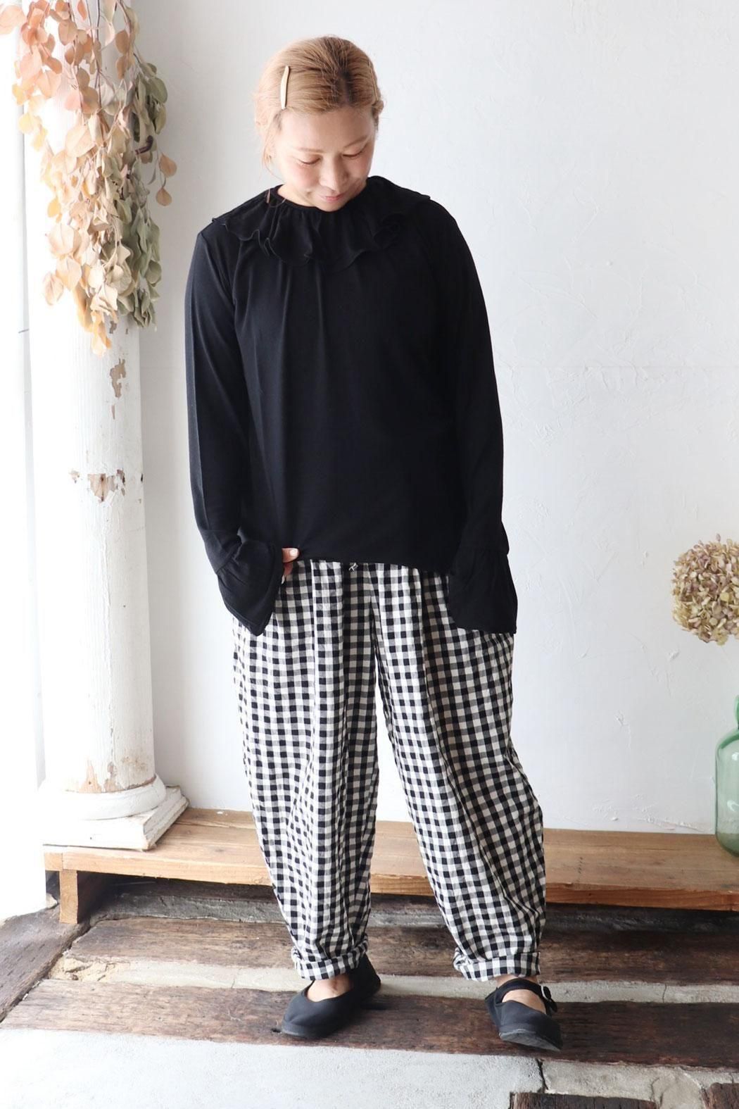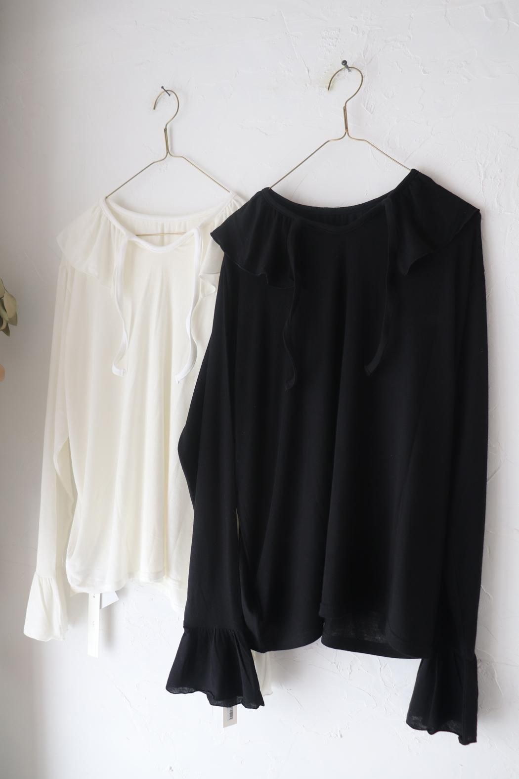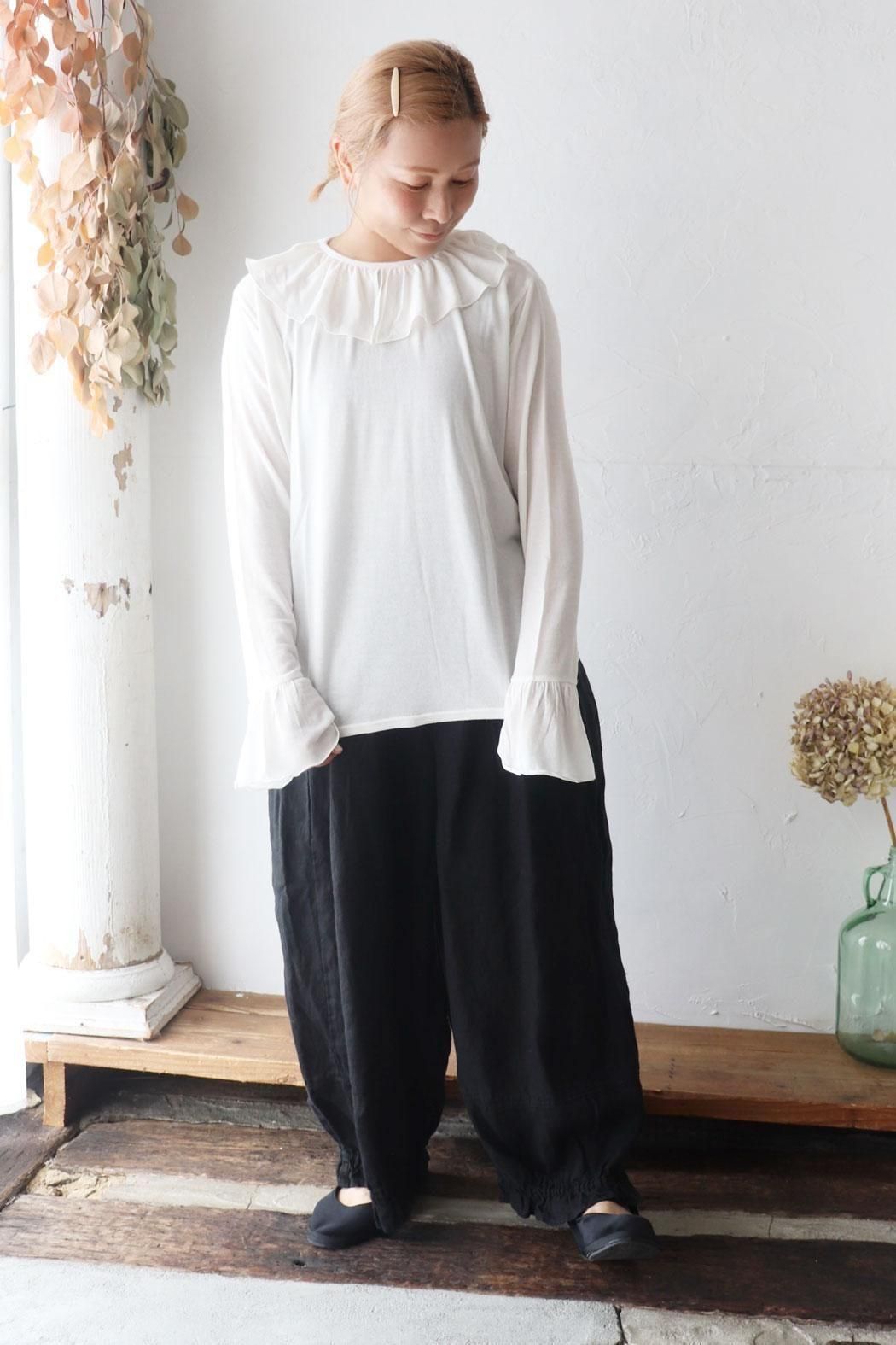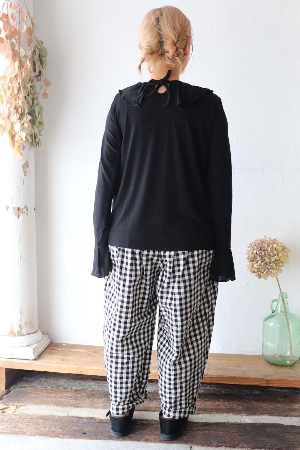 衿元や袖口のフリルをチラ見せするレイヤードスタイルにもぴったり。