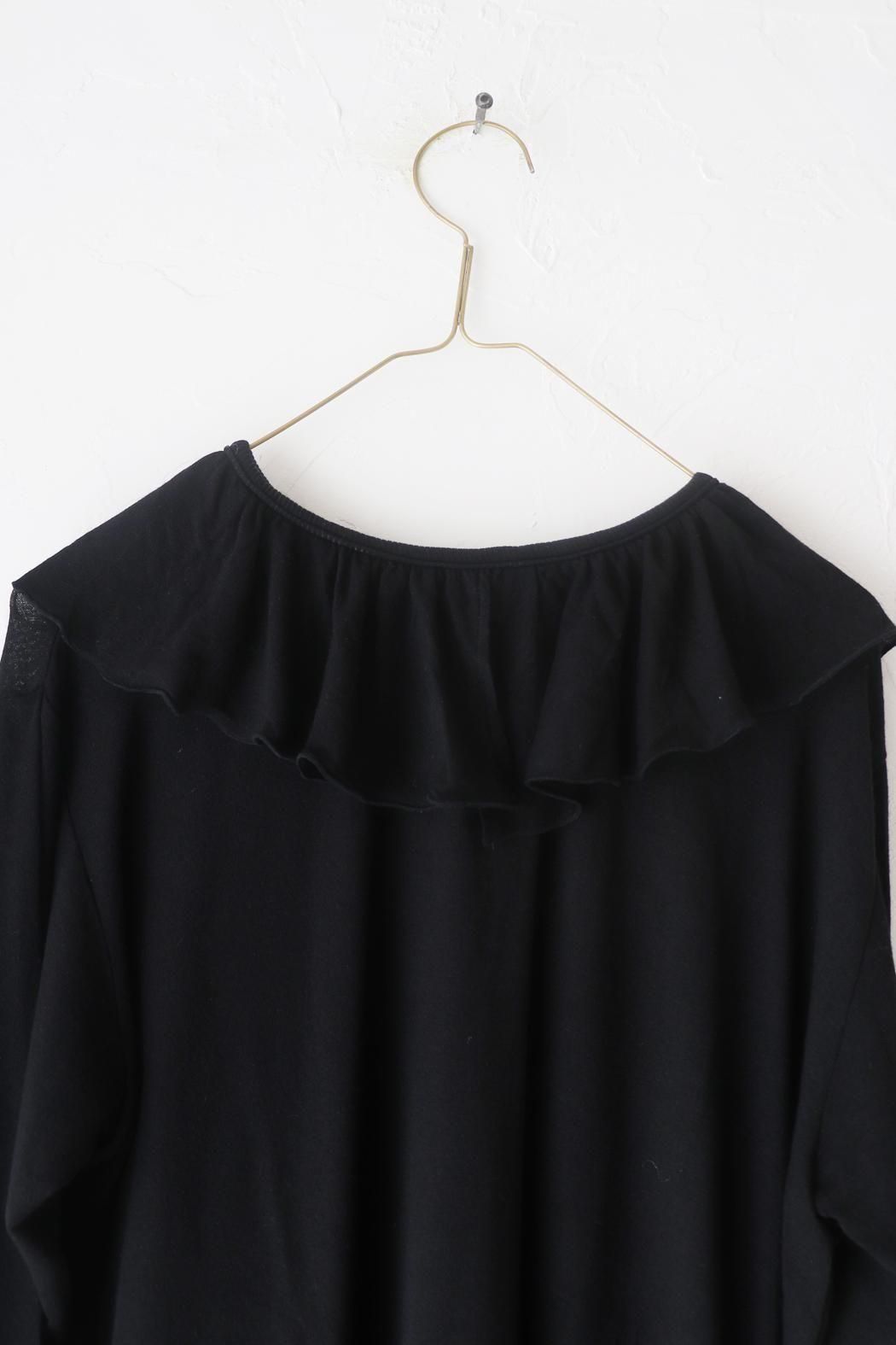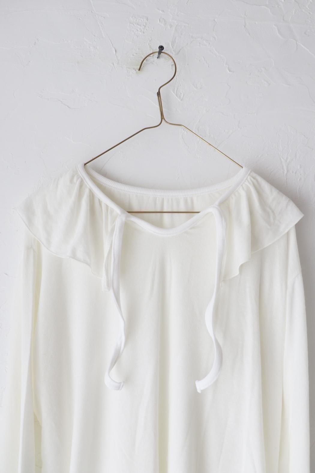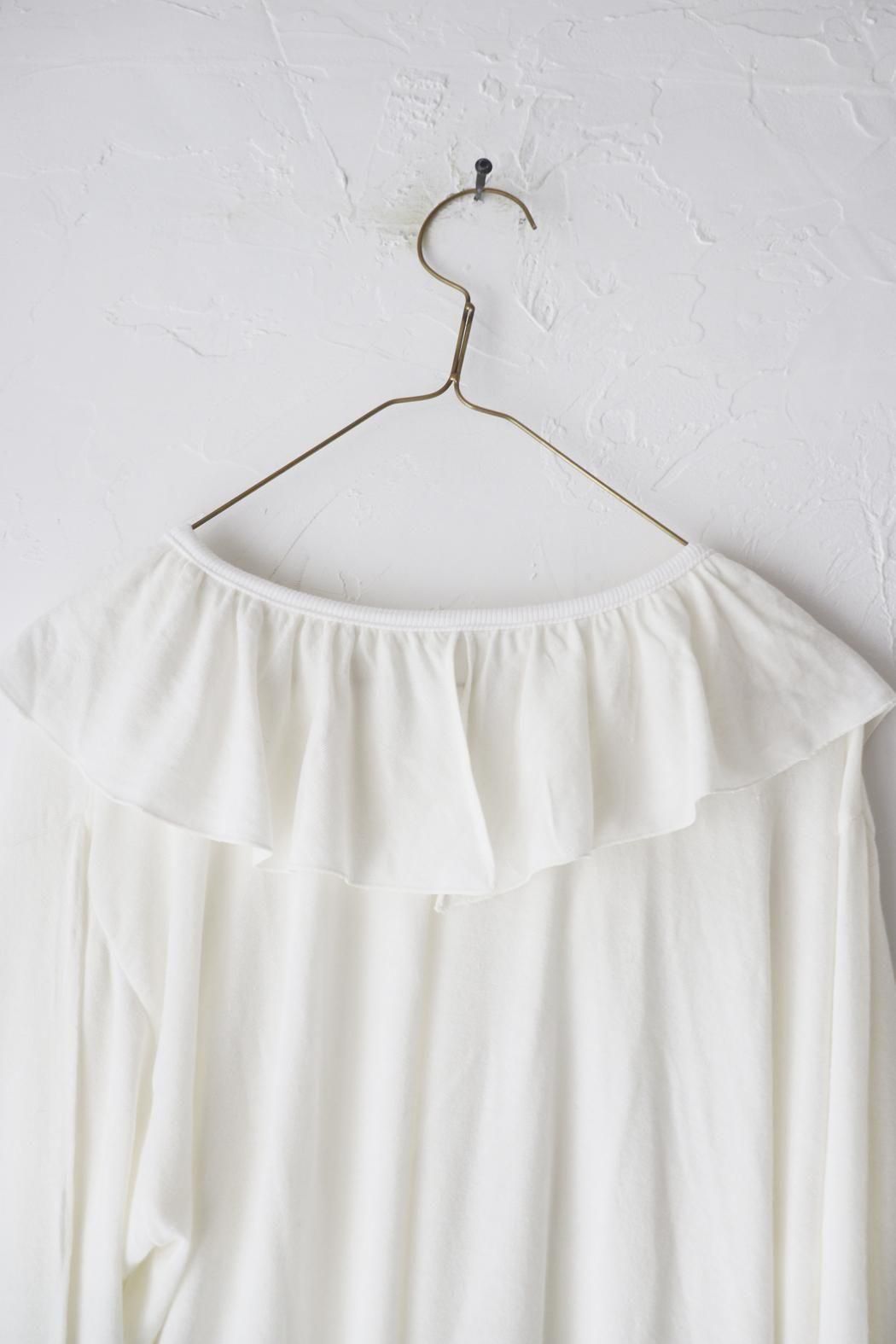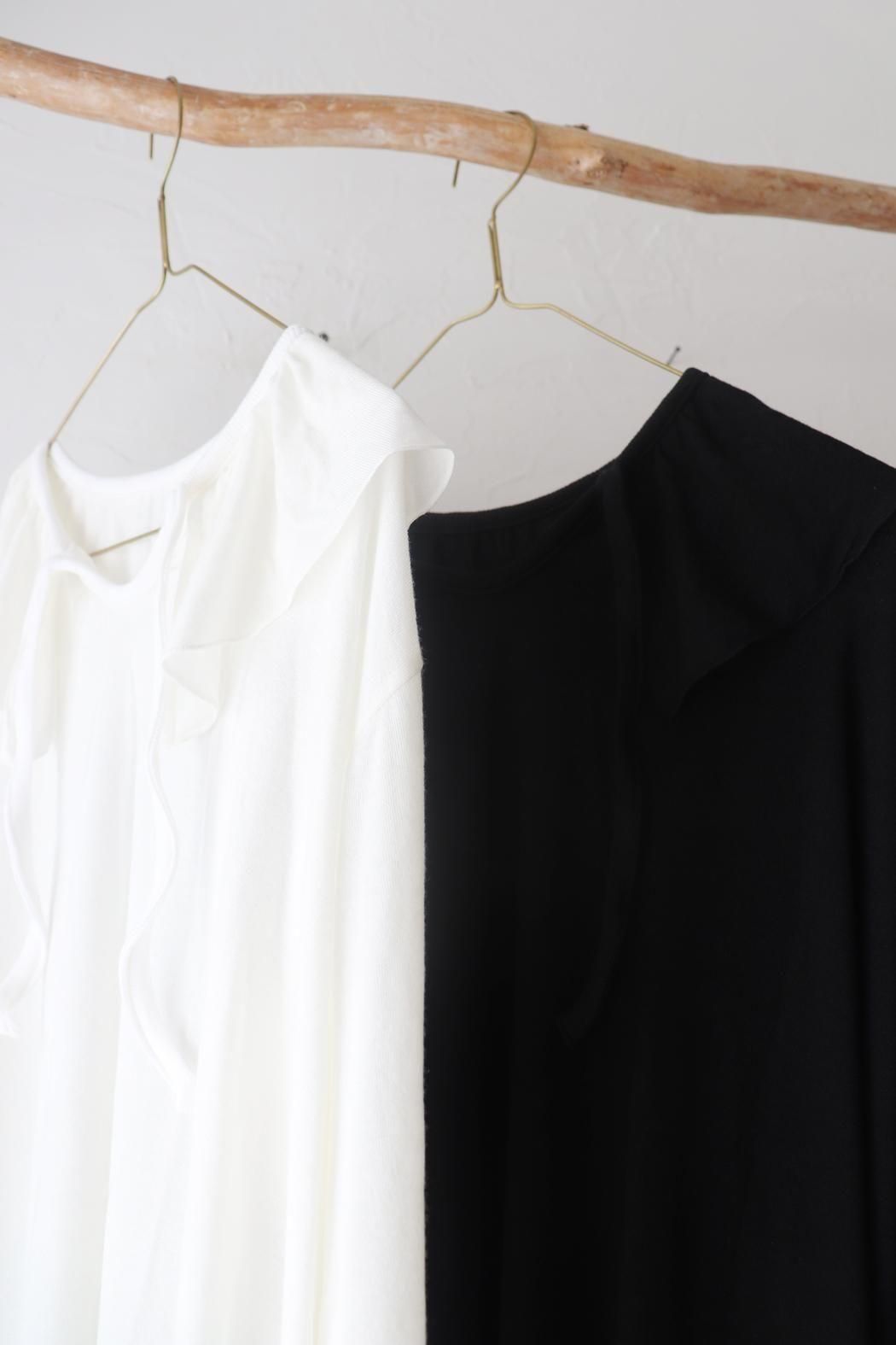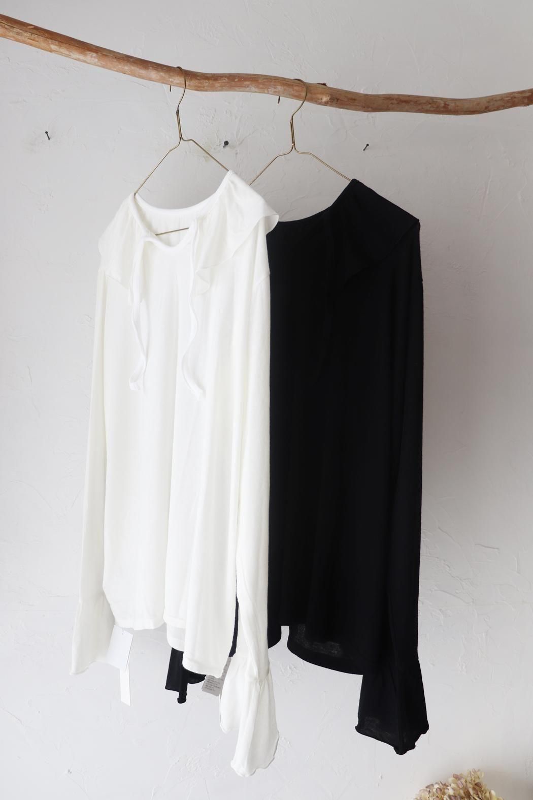 衿元や袖口のフリルをチラ見せするレイヤードスタイルにもぴったり。