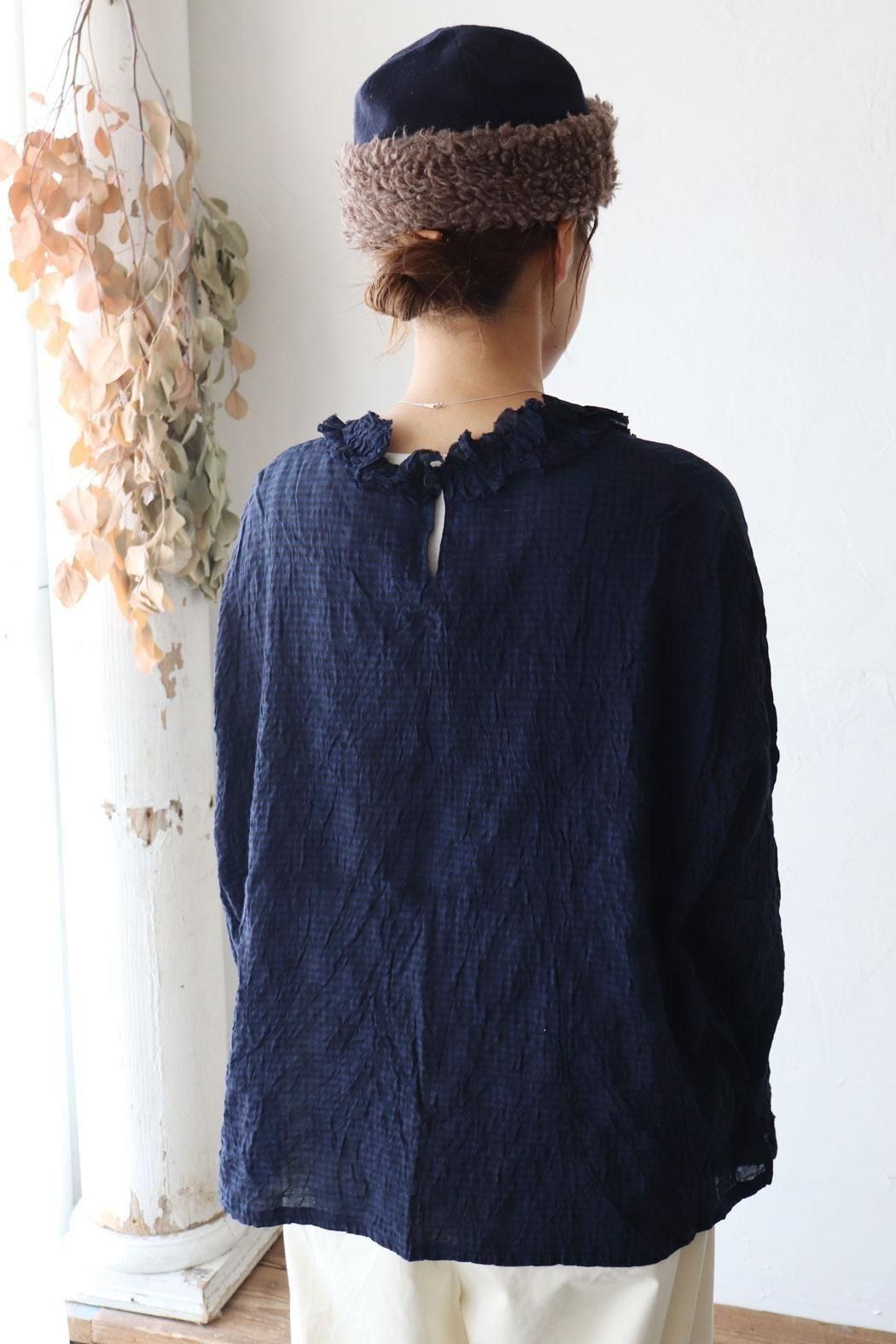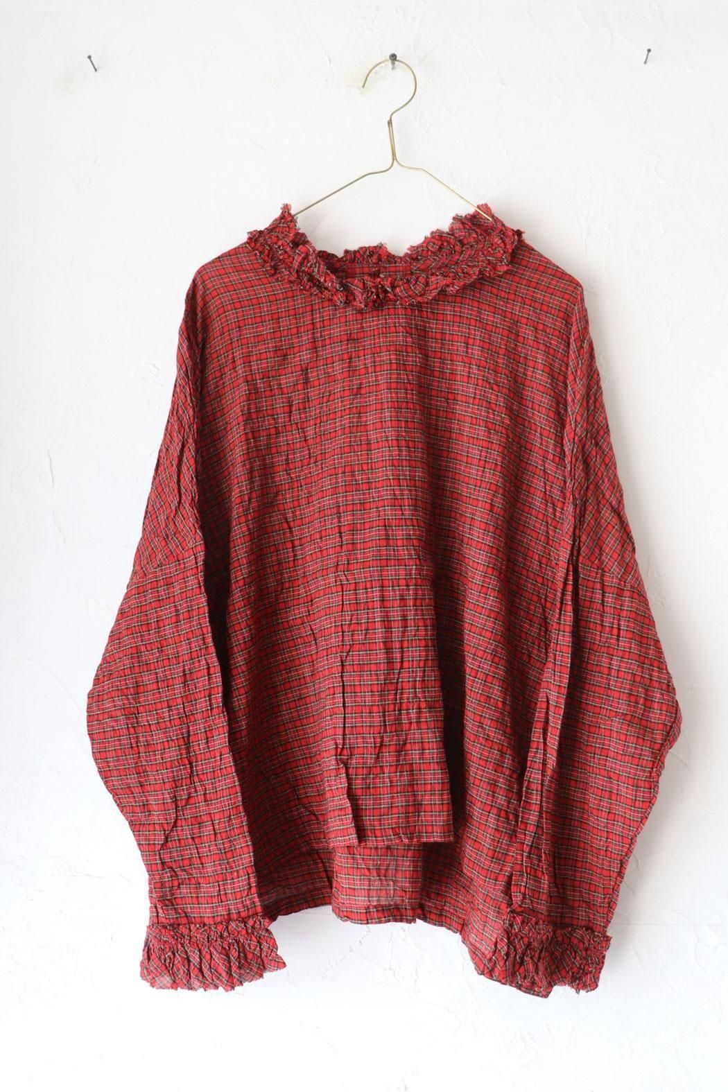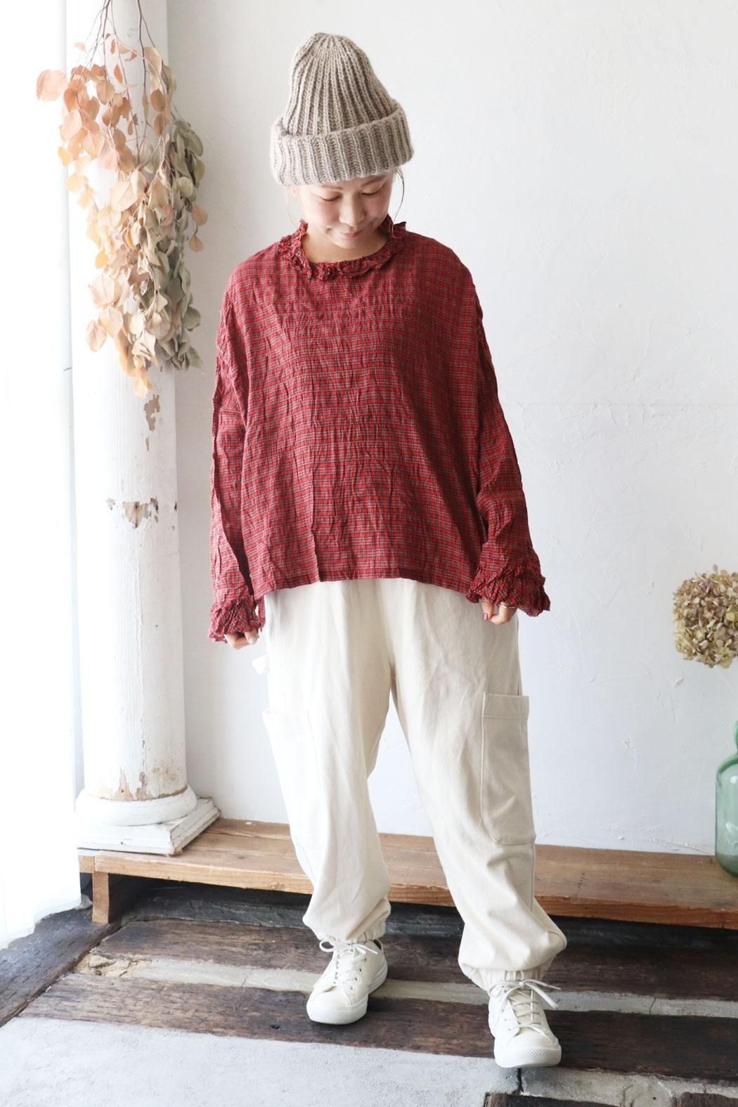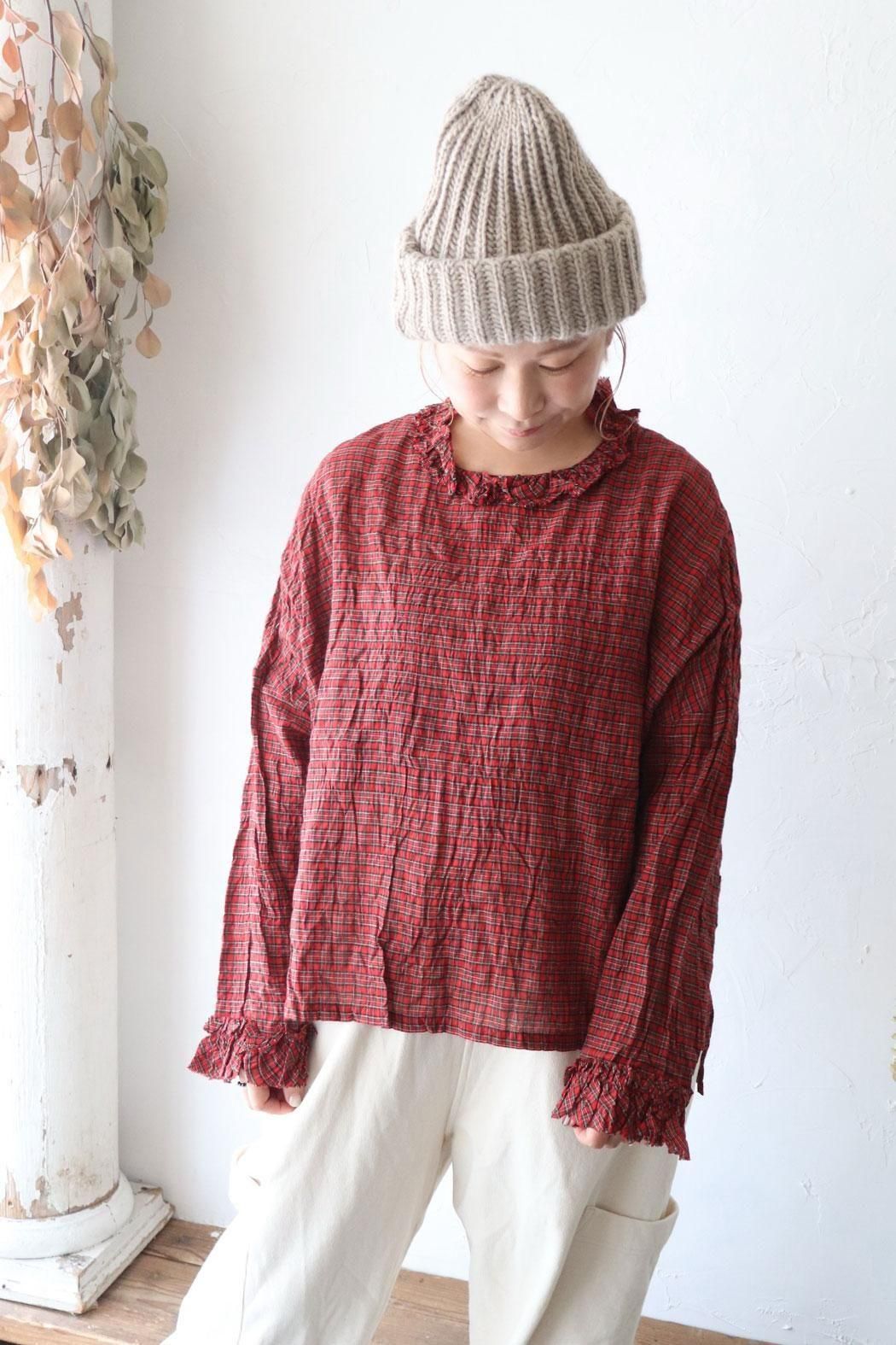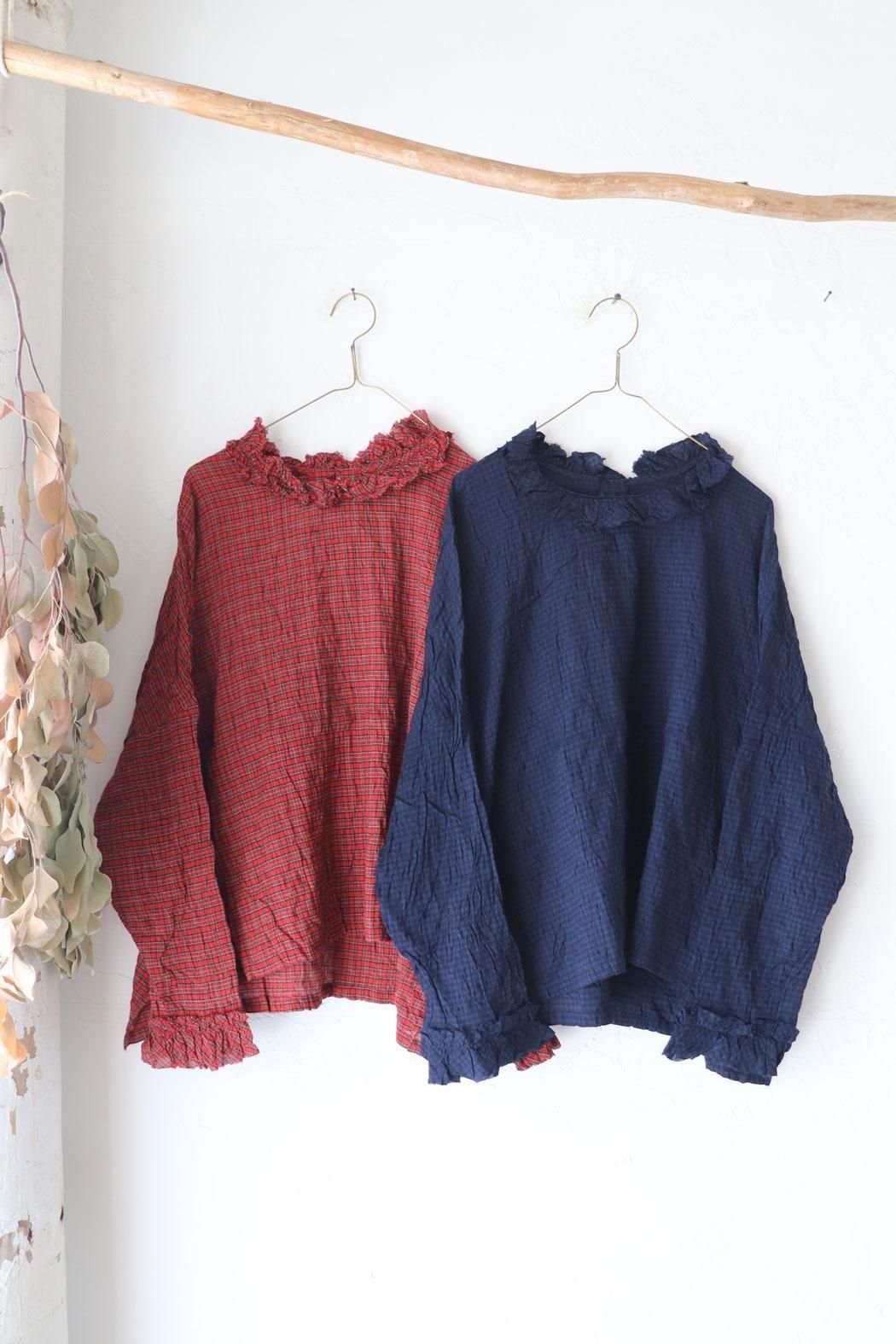 (g)(グラム) チェックネックフリルボックスプルオーバー