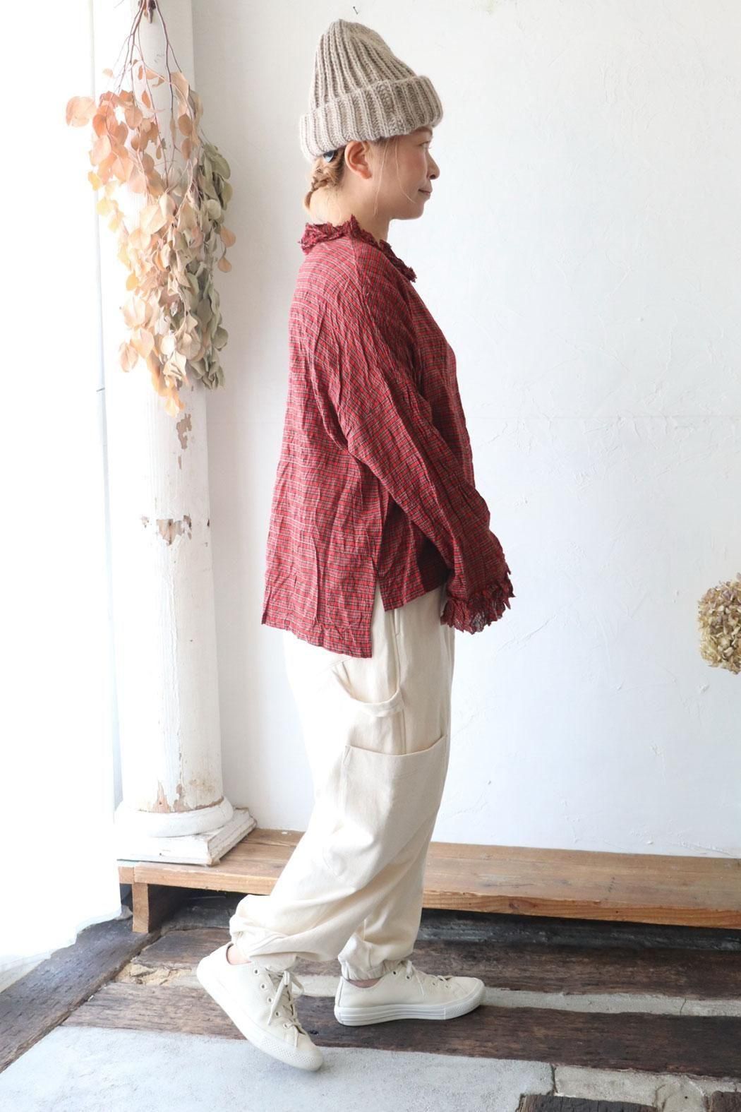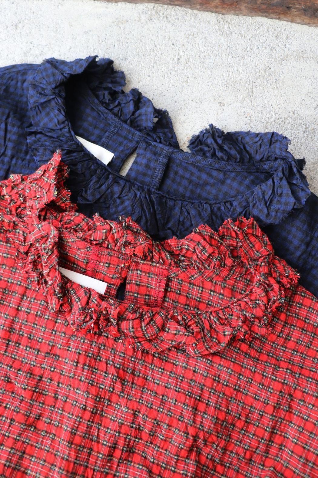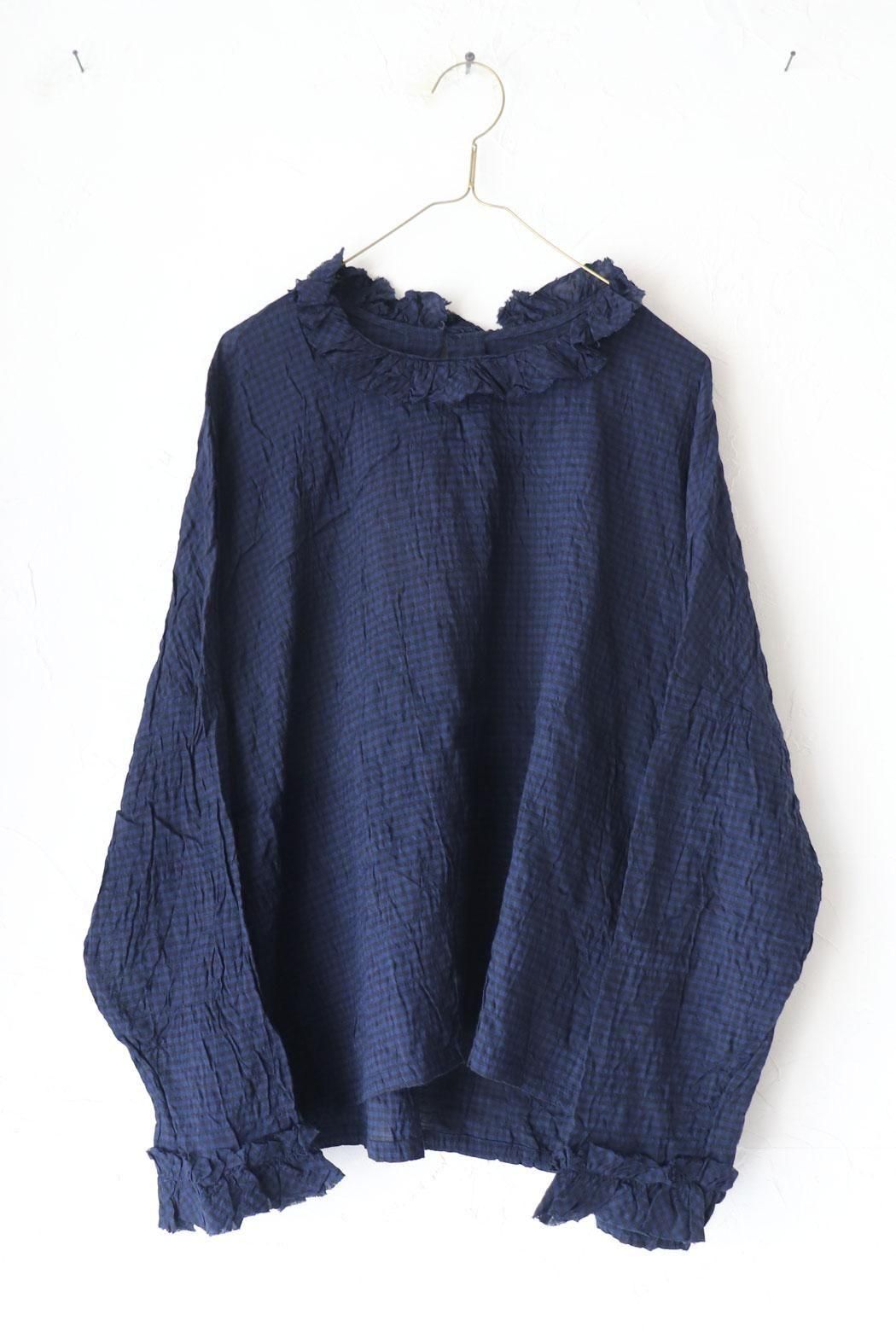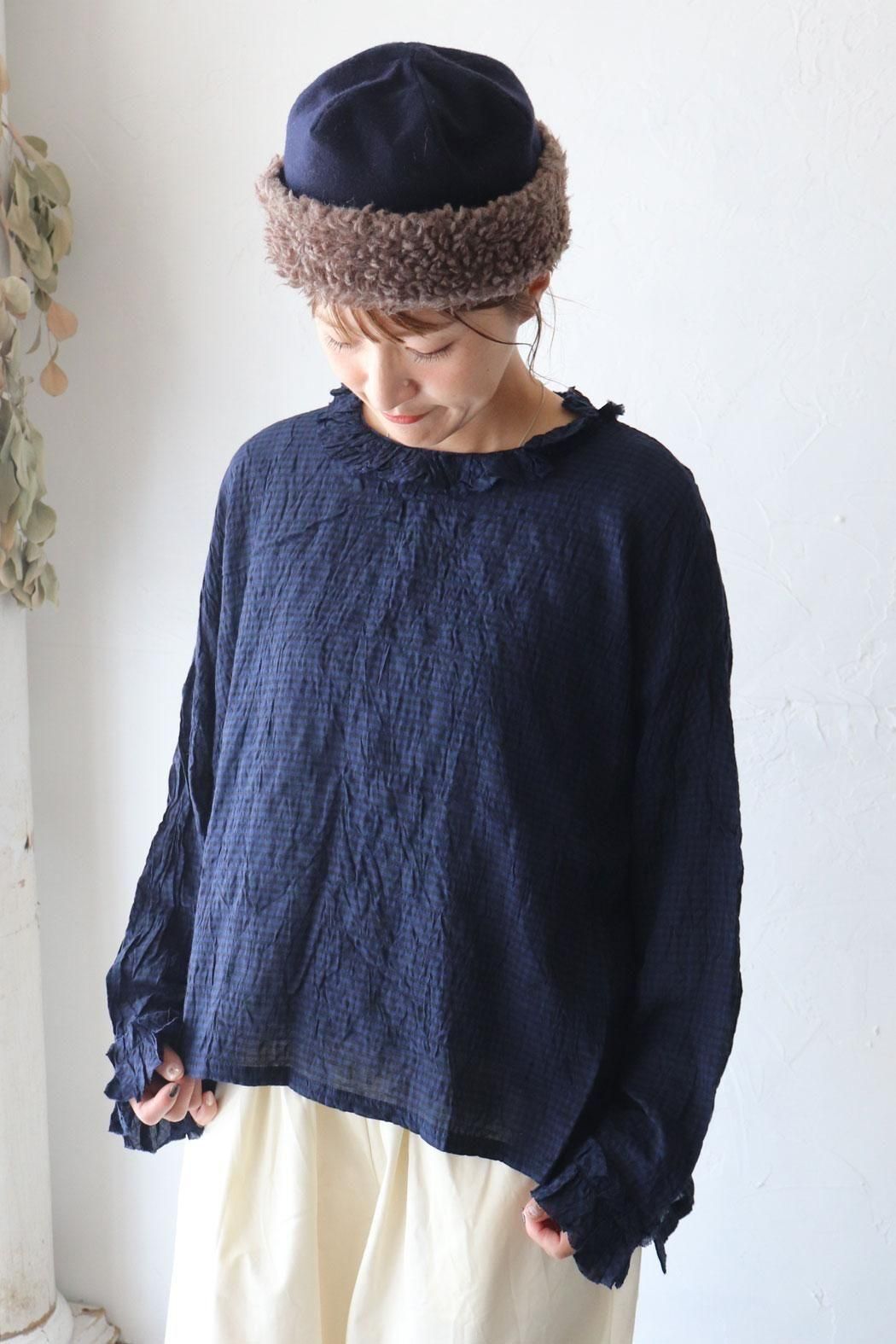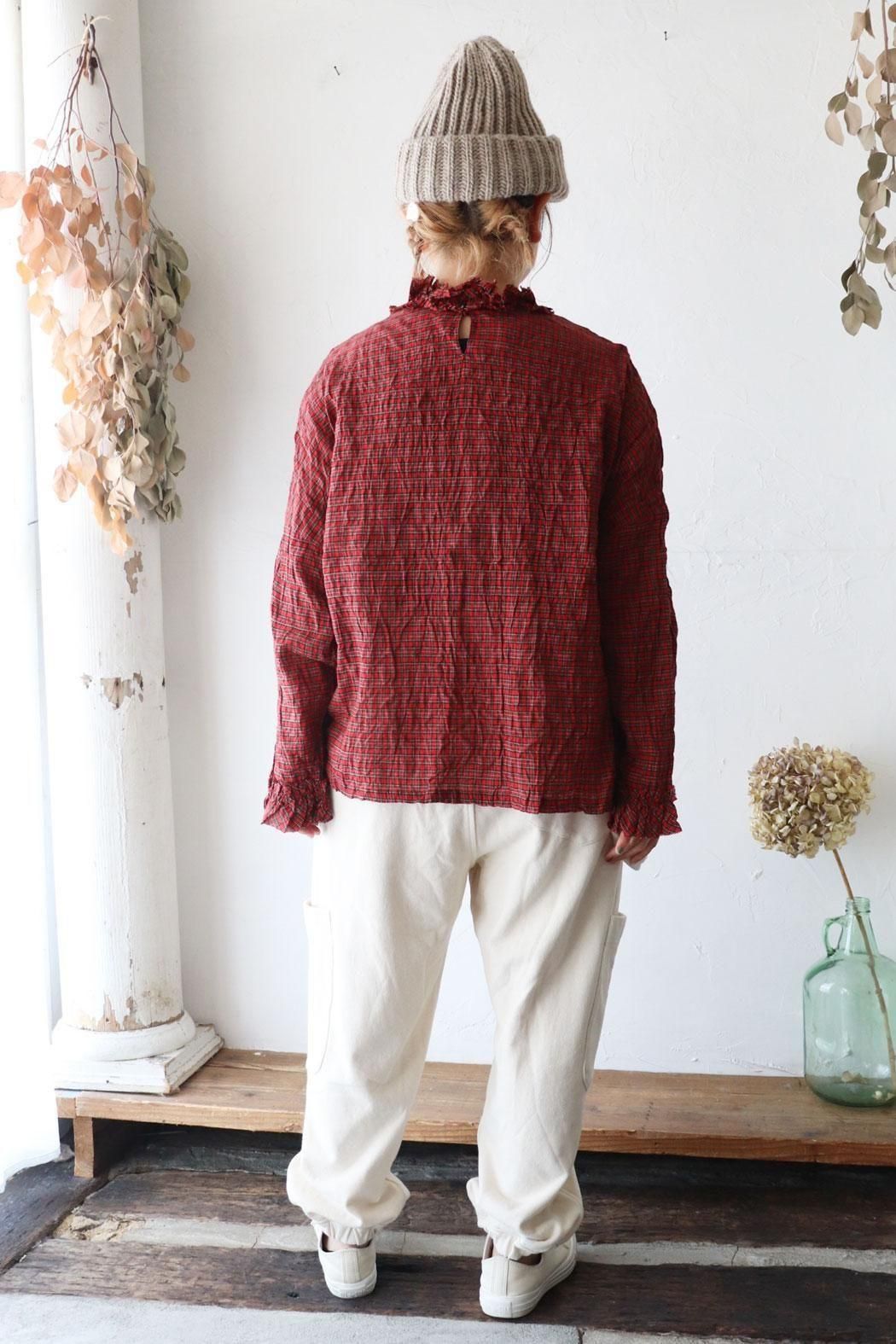 (g)(グラム) チェックネックフリルボックスプルオーバー