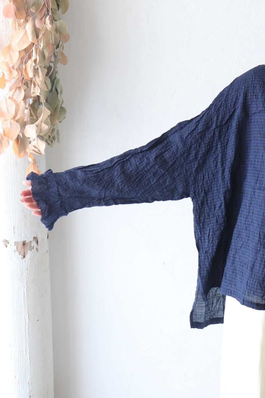 薄手の綿麻生地を使用した、ほっこりしたチェック柄プルオーバー。