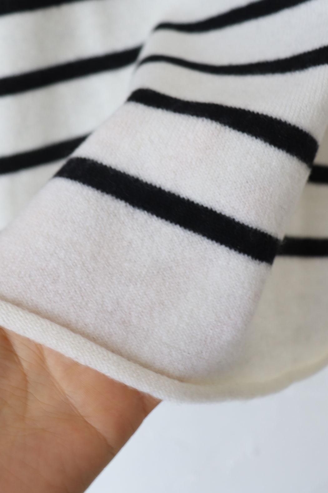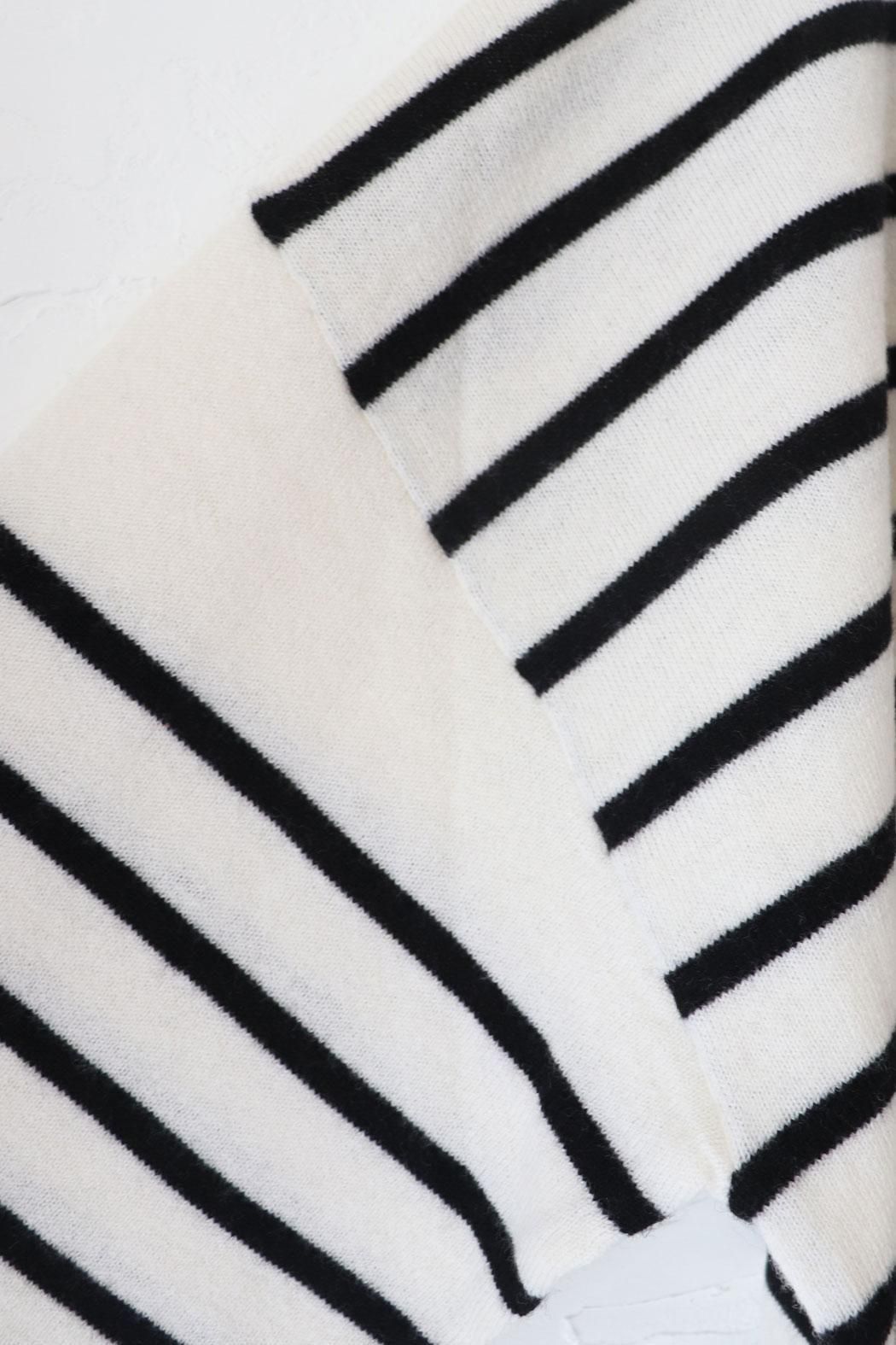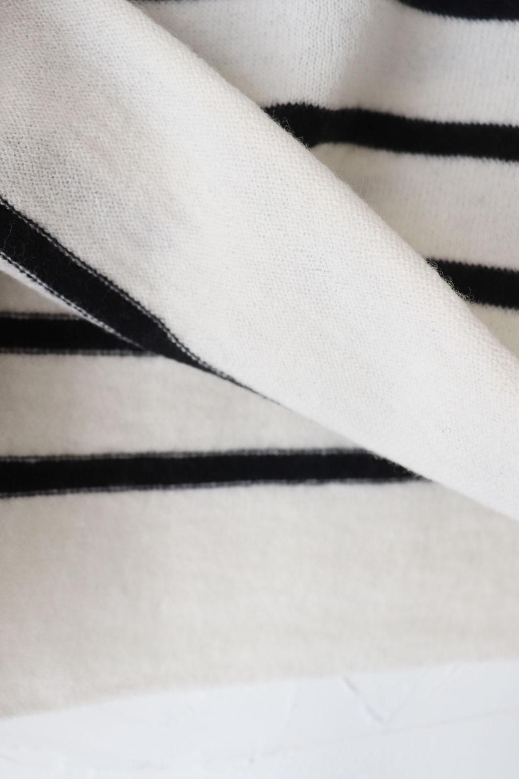 絶妙なピッチのボーダー柄で、重くなりがちな秋冬コーデに爽やかさをプラス。