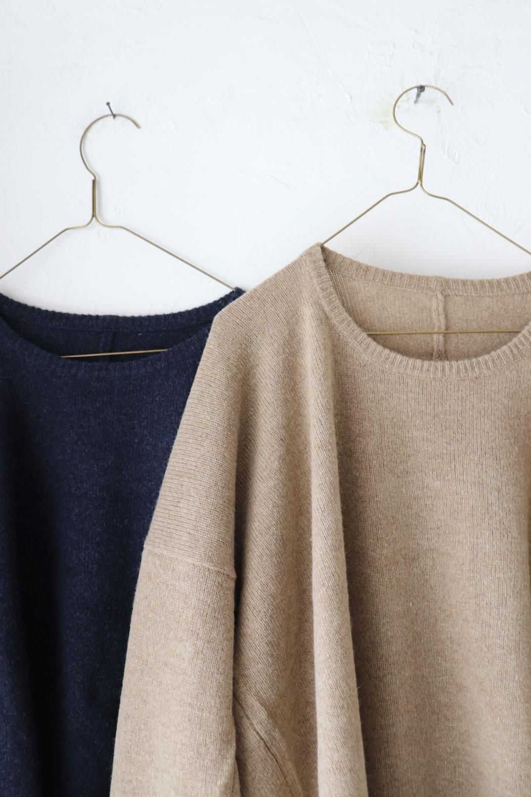 ベーシックなカタチが使い勝手の良いニットプルオーバー。