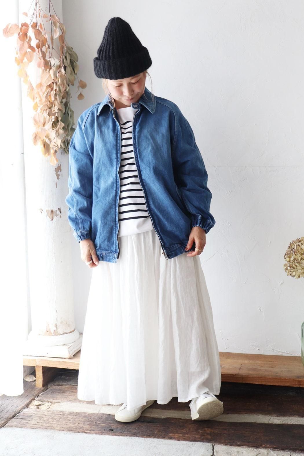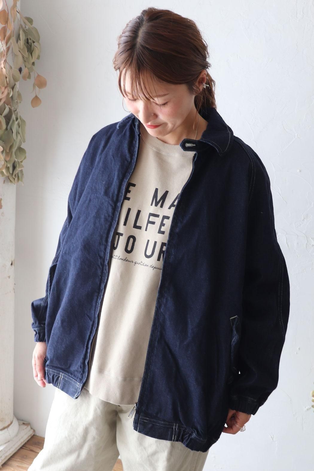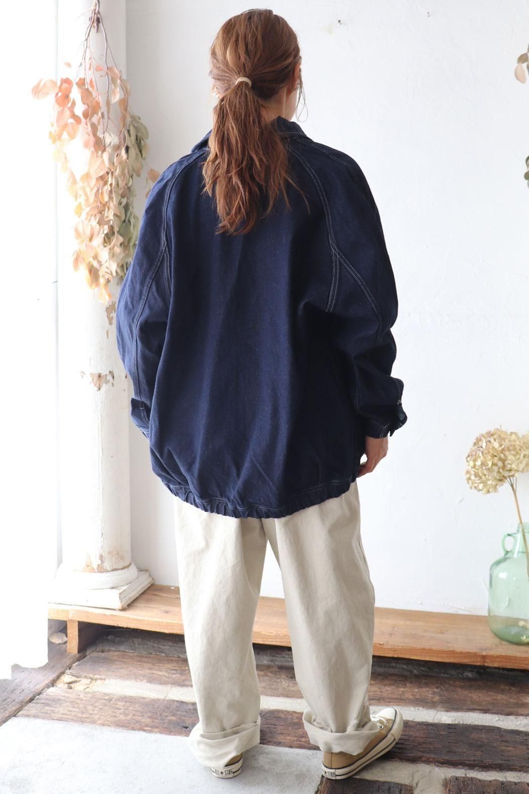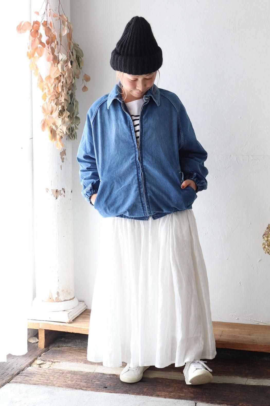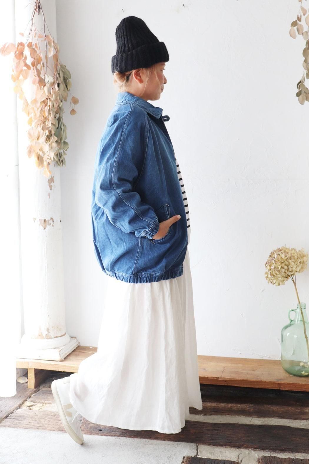 肩をやや落としたゆとりのあるサイズに、裾と袖口にゴムを入れる事でシルエットに変化を加えました。
