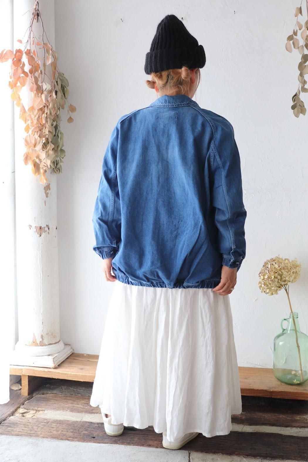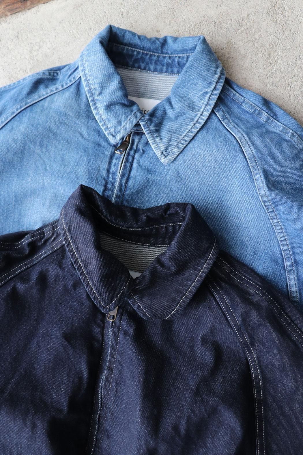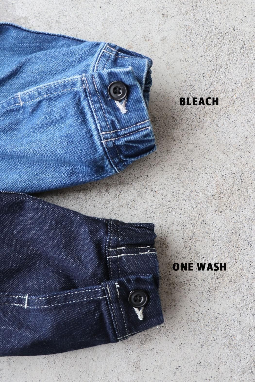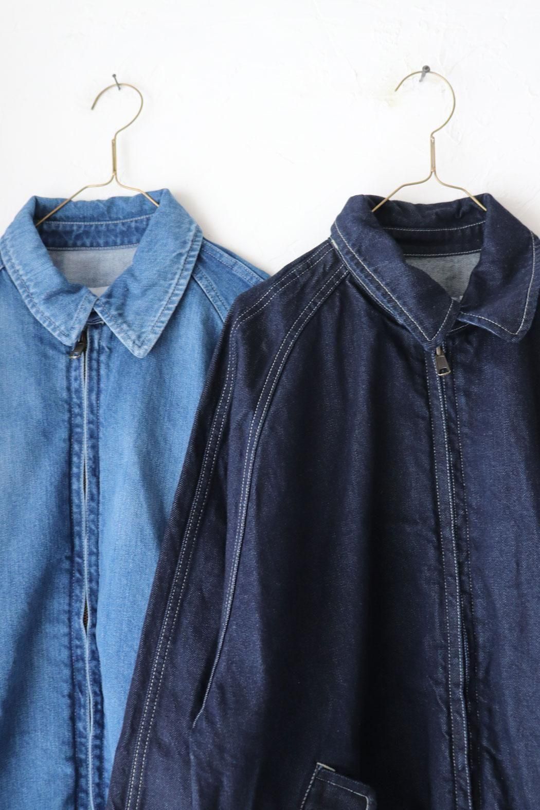 ピュアインディゴを用い、糸の中心が白く残るロープ染色をしているためアタリが出て経年変化を味わうことが出来る1着〇