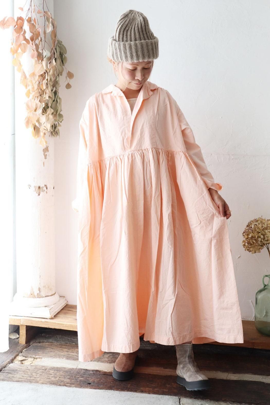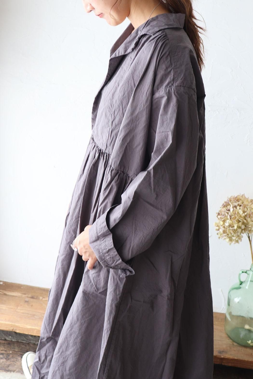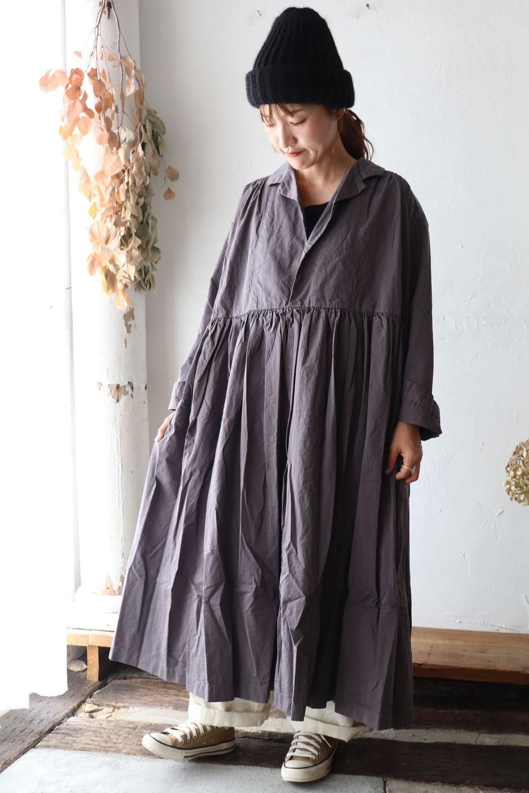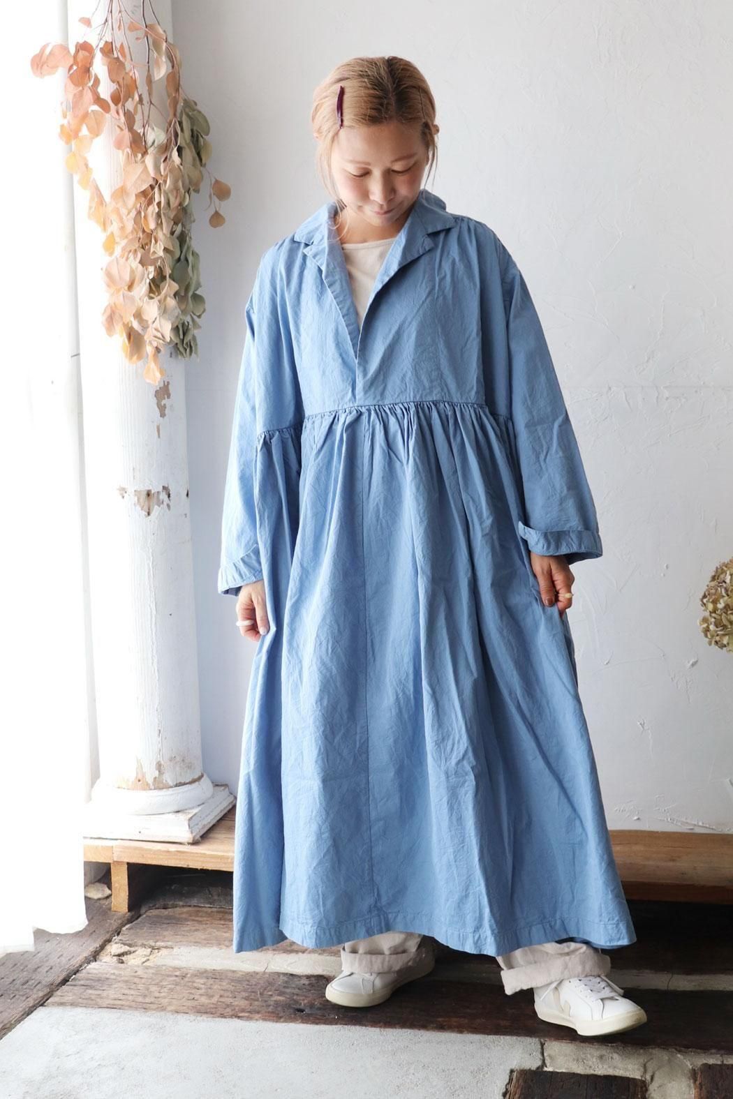 ウエストにたっぷりとギャザーを寄せたボリュームのある A ラインワンピース。