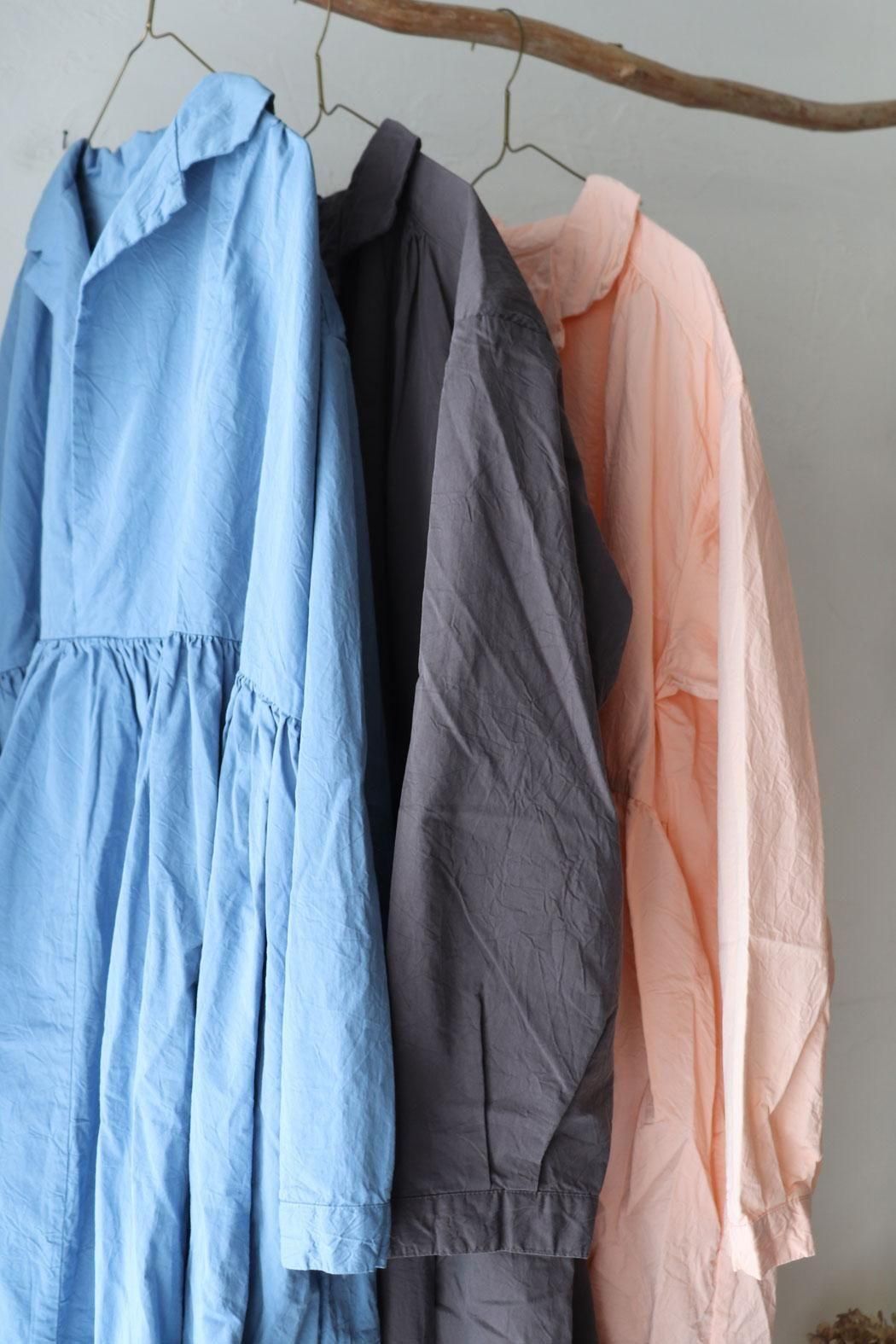 キャッチワッシャー加工によるエッジの効いたシワ感が特徴のコットンツイル素材*