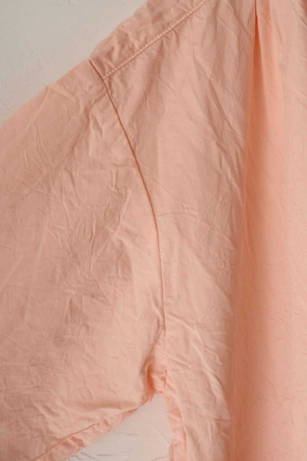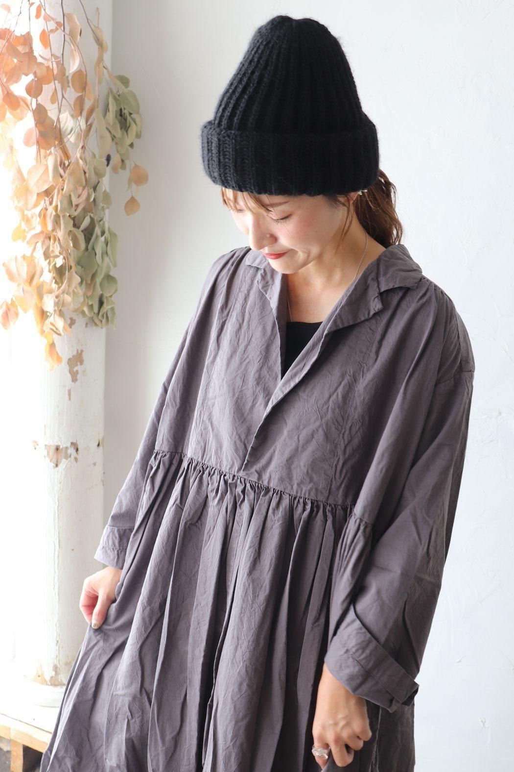オープンカラーとボタンレスの前開きによりラフな雰囲気に仕上げました。