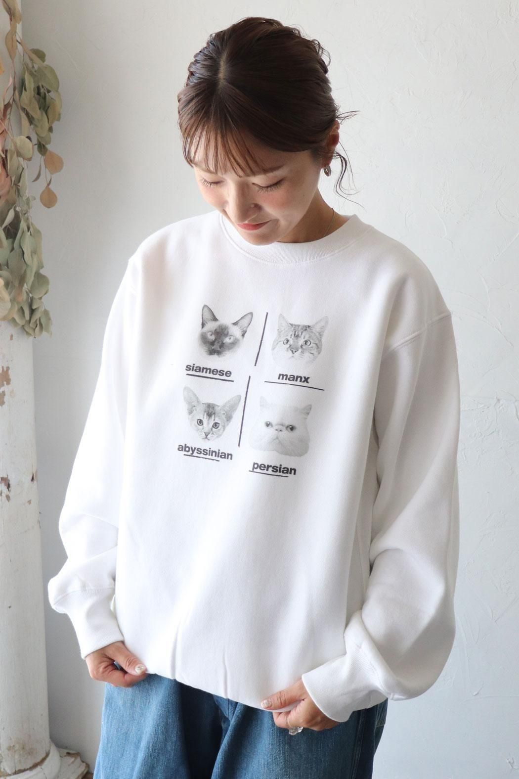 愛らしいネコちゃんの真顔の表情をプリントしたスウェット。