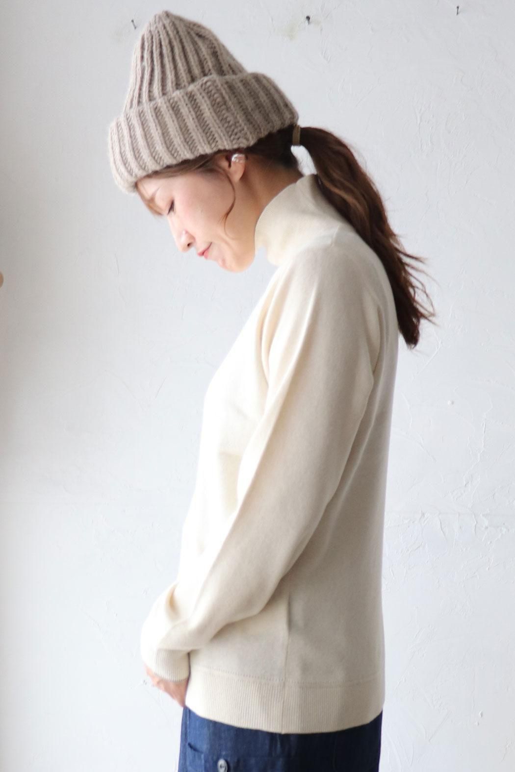 コットンにウールとカシミアを混紡した手触りの良いニットプルオーバー。