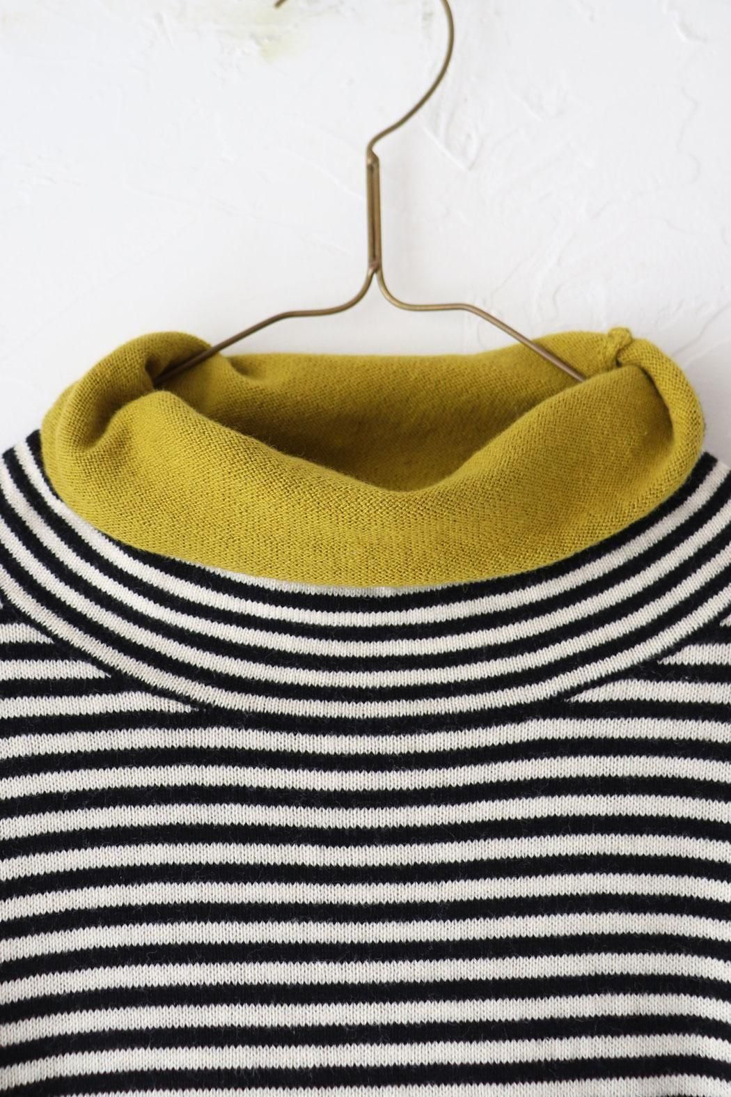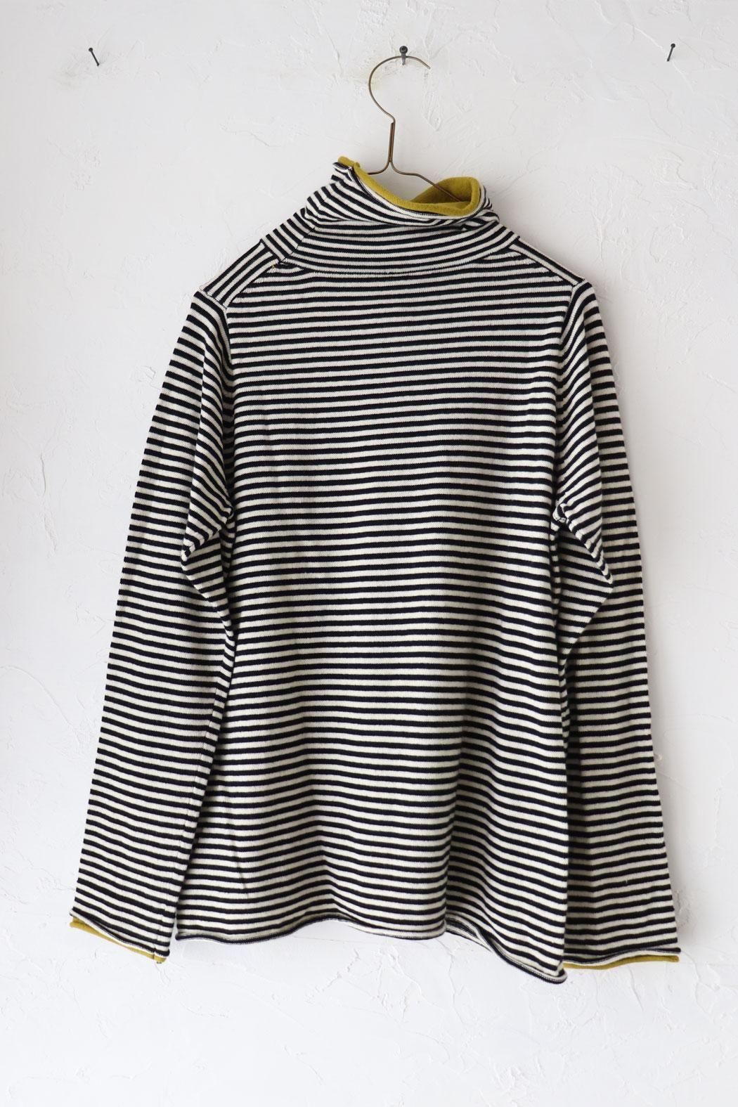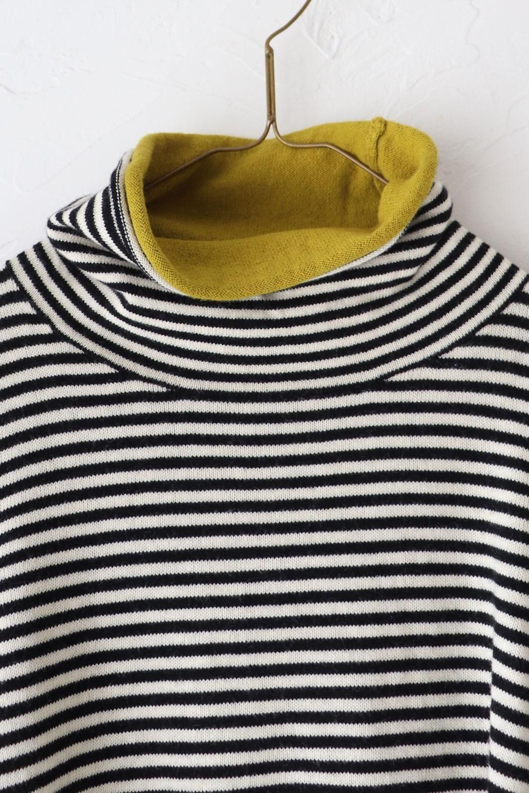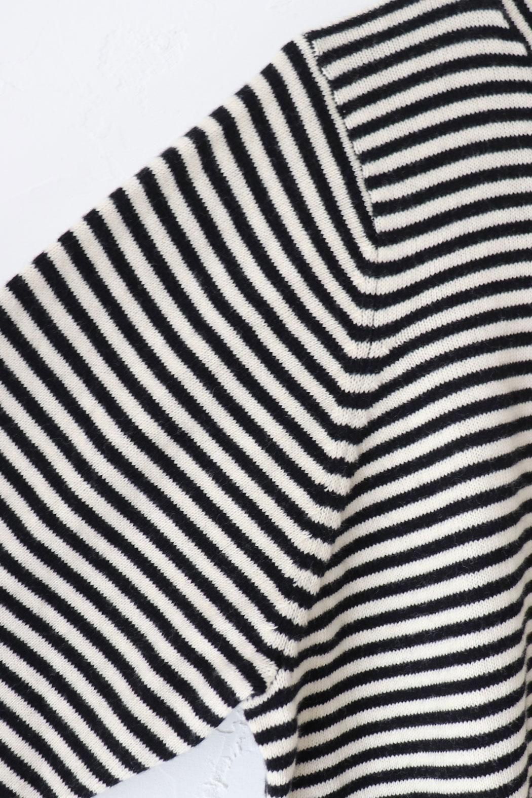 肌触りが良く身体に張り付かない編地のボーダーニット。