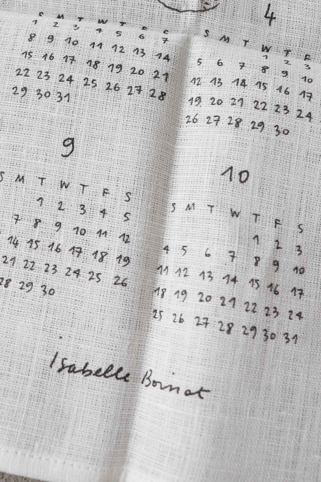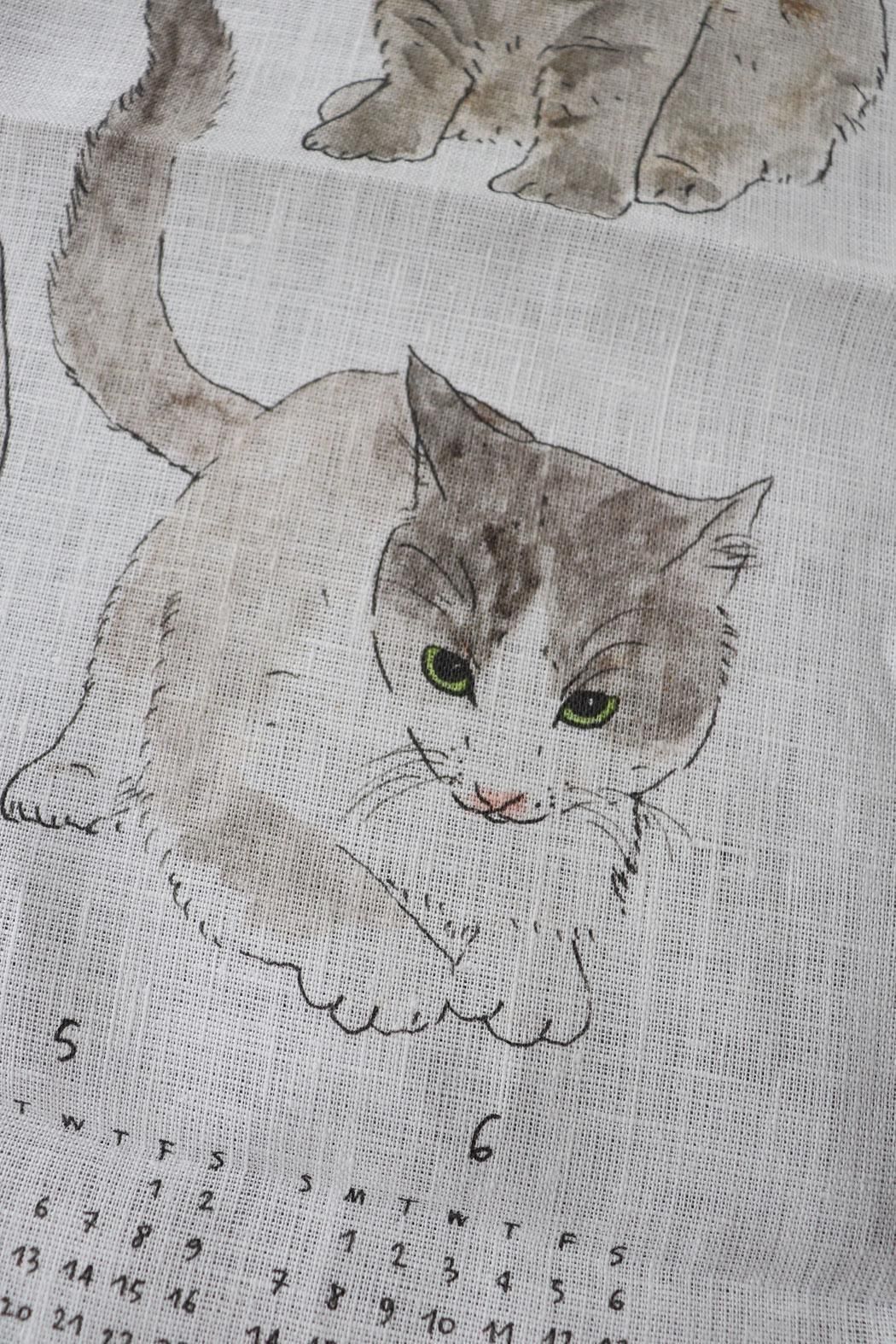 キッチンクロスサイズのリネンに、イラストとカレンダーをプリントしました〇