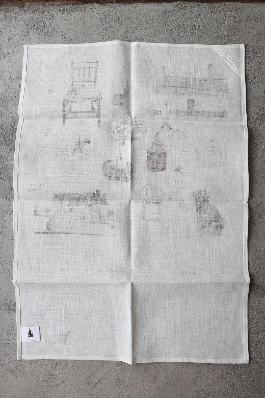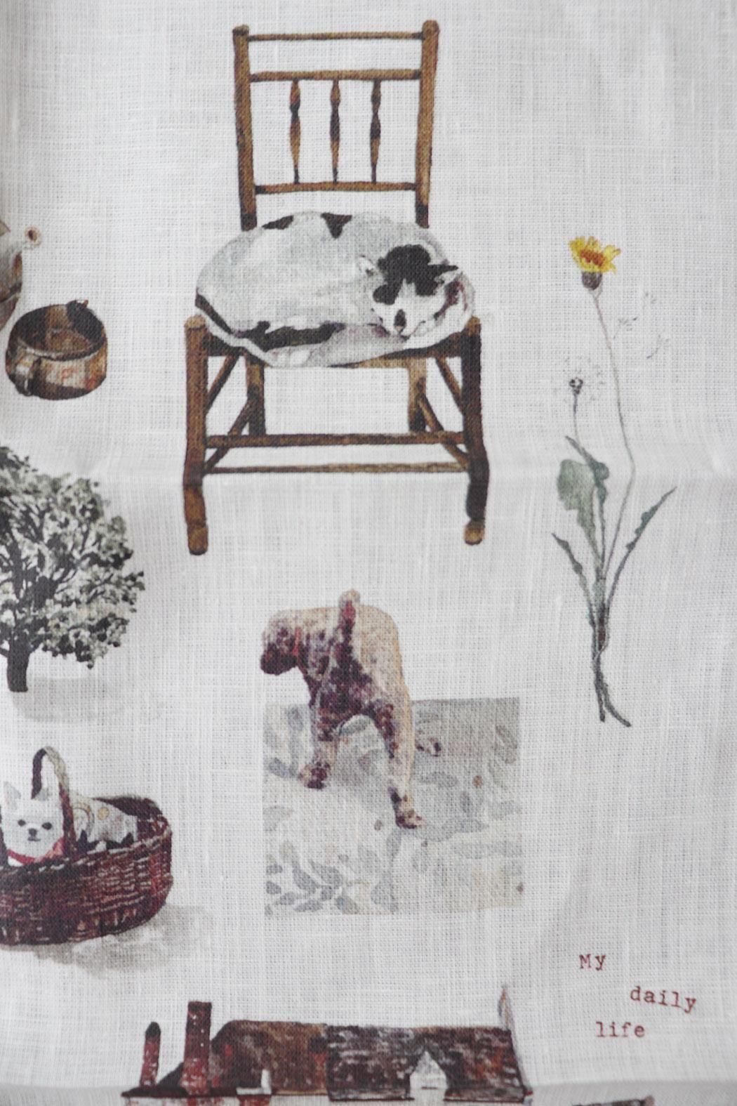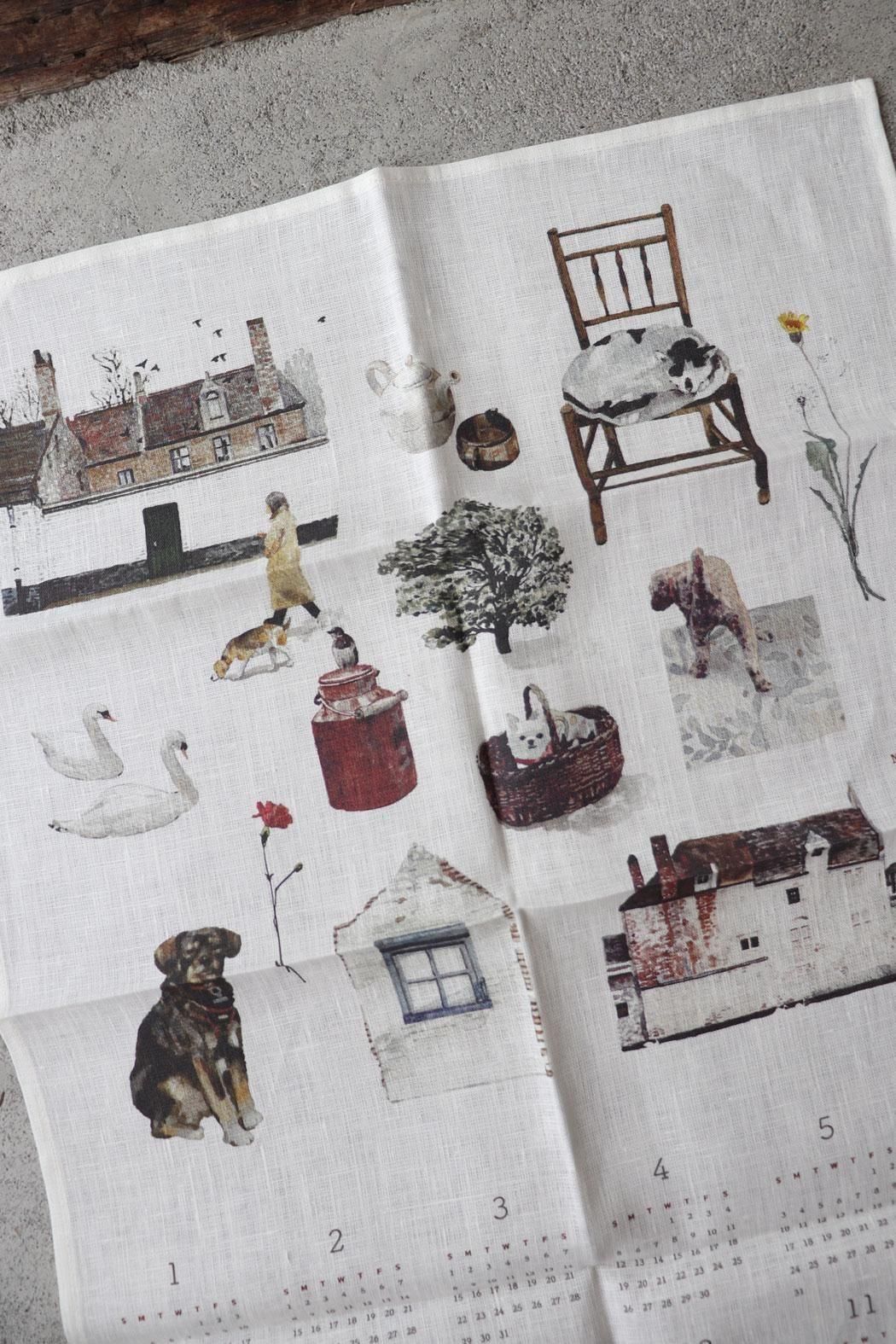 キッチンクロスサイズのリネンに、イラストとカレンダーをプリントしました〇