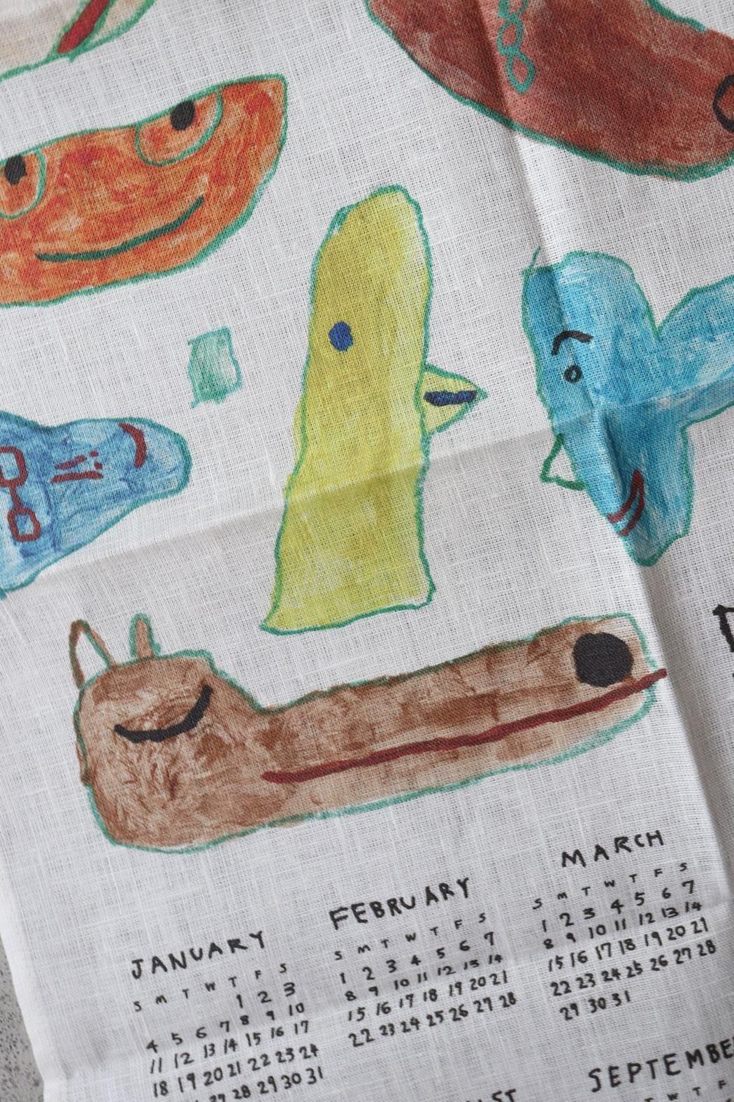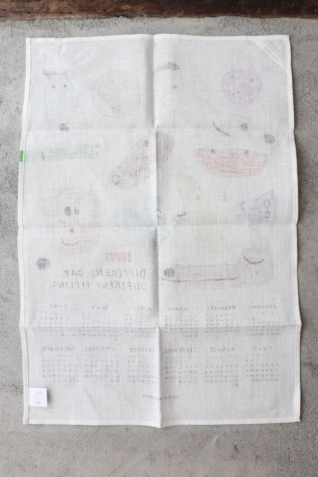 キッチンクロスサイズのリネンに、イラストとカレンダーをプリントしました〇