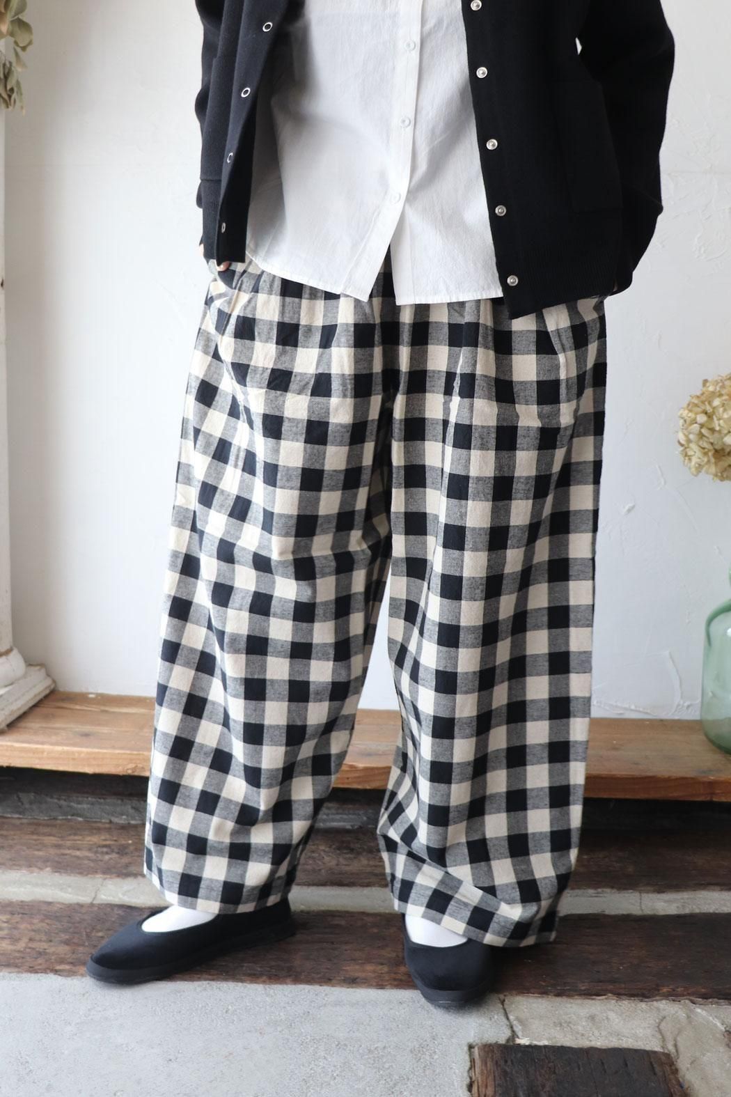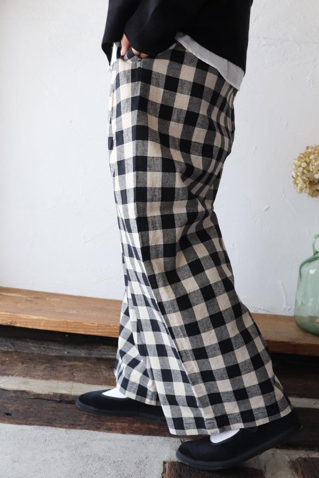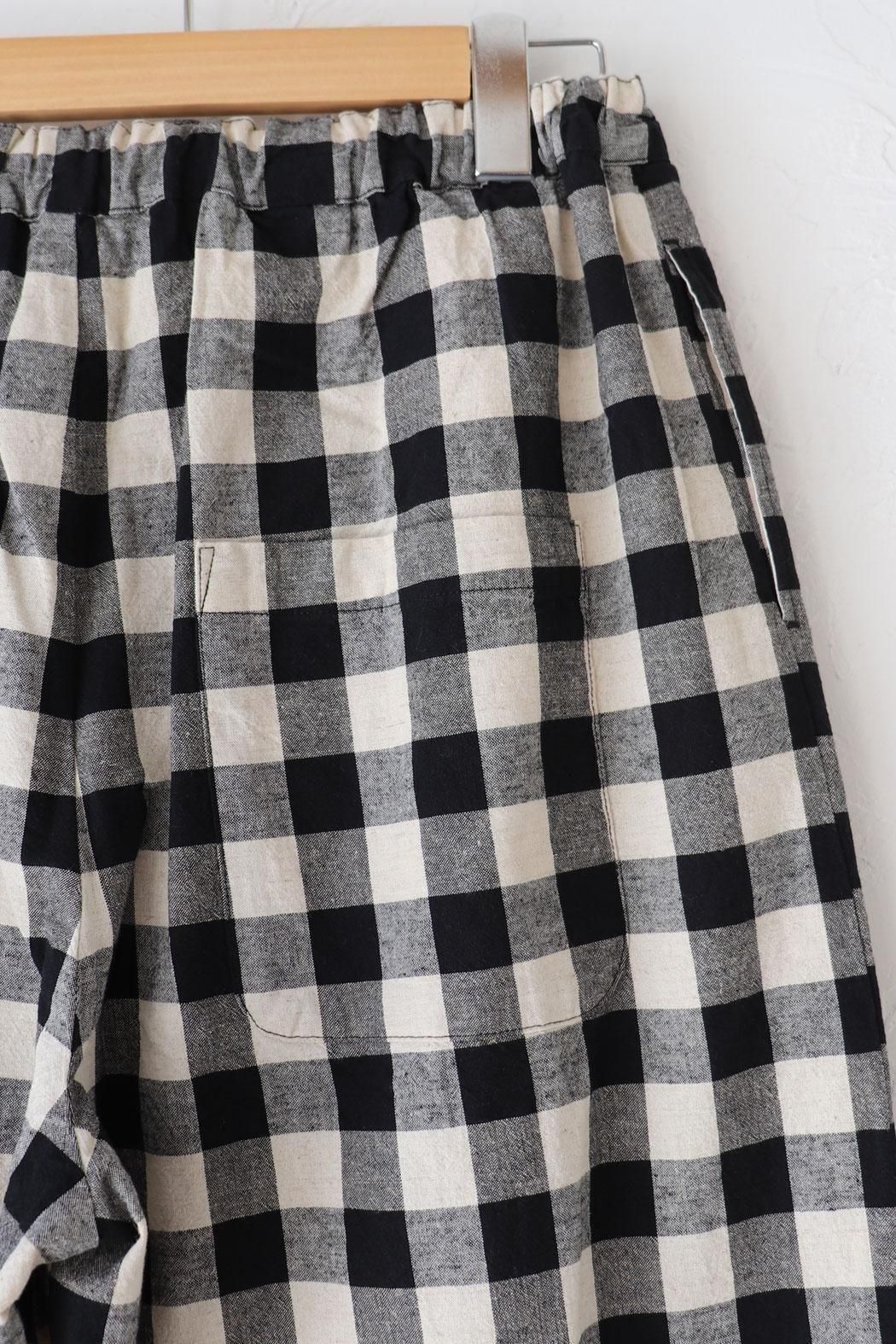 程よく厚みのある綿麻生地を使用したチェック柄パンツ。