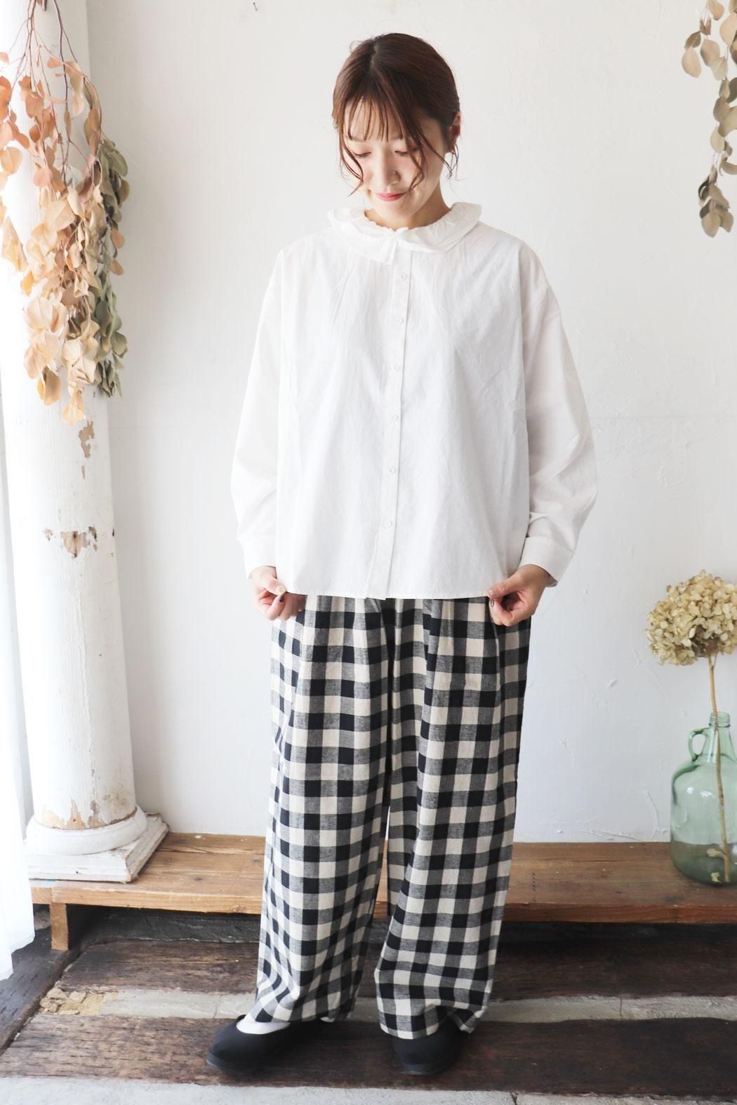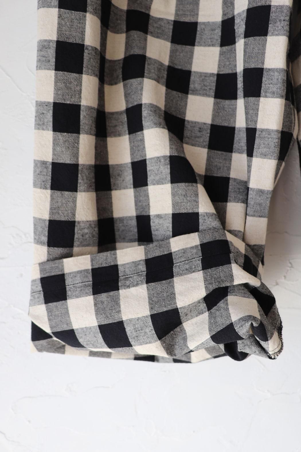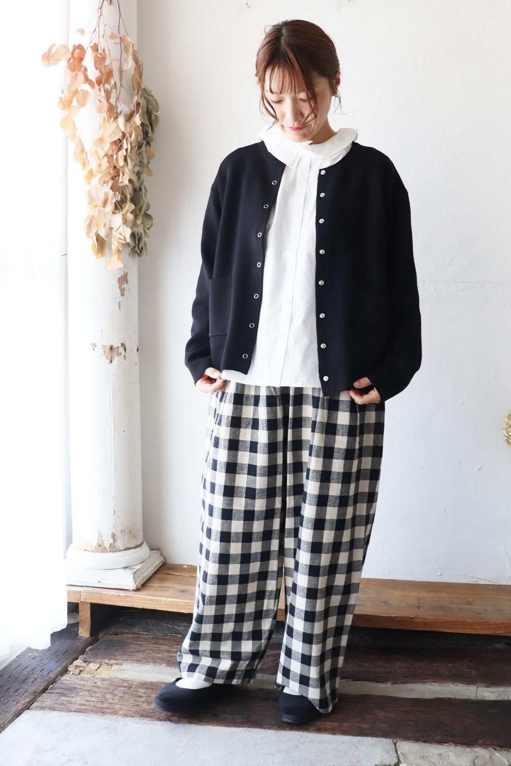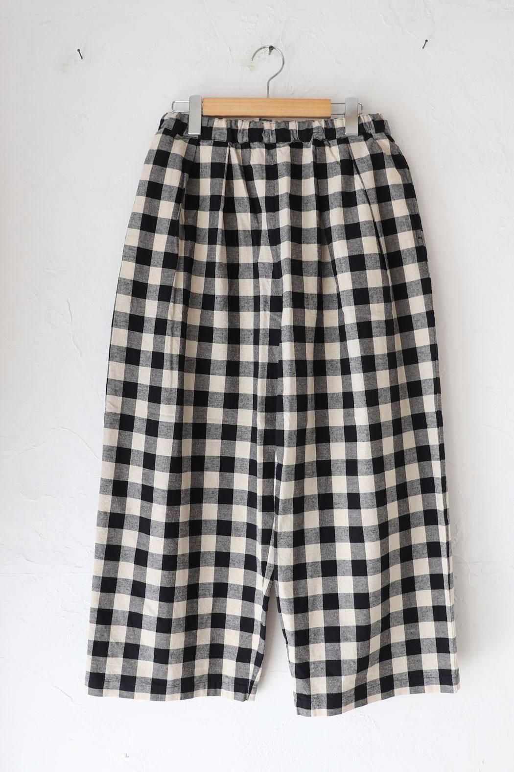 程よく厚みのある綿麻生地を使用したチェック柄パンツ。