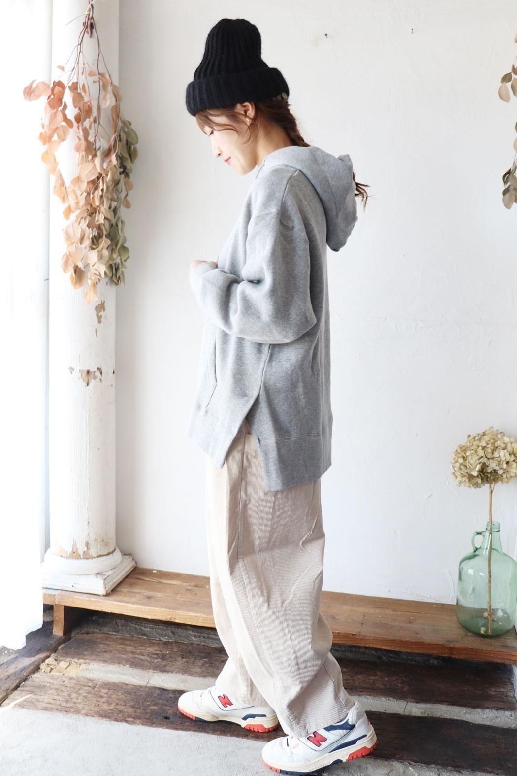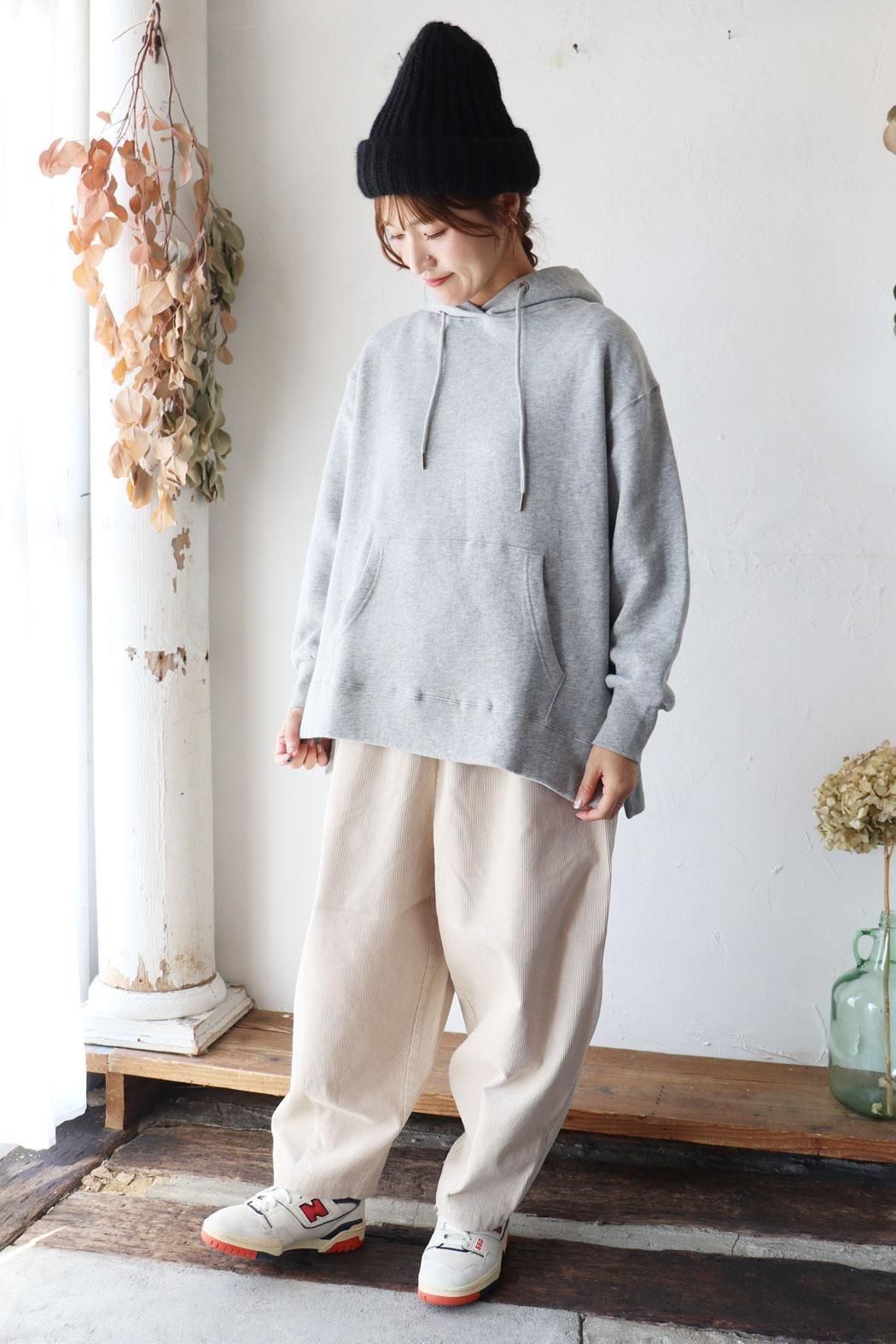 秋冬感たっぷりの、温かみあるコーデュロイパンツ。