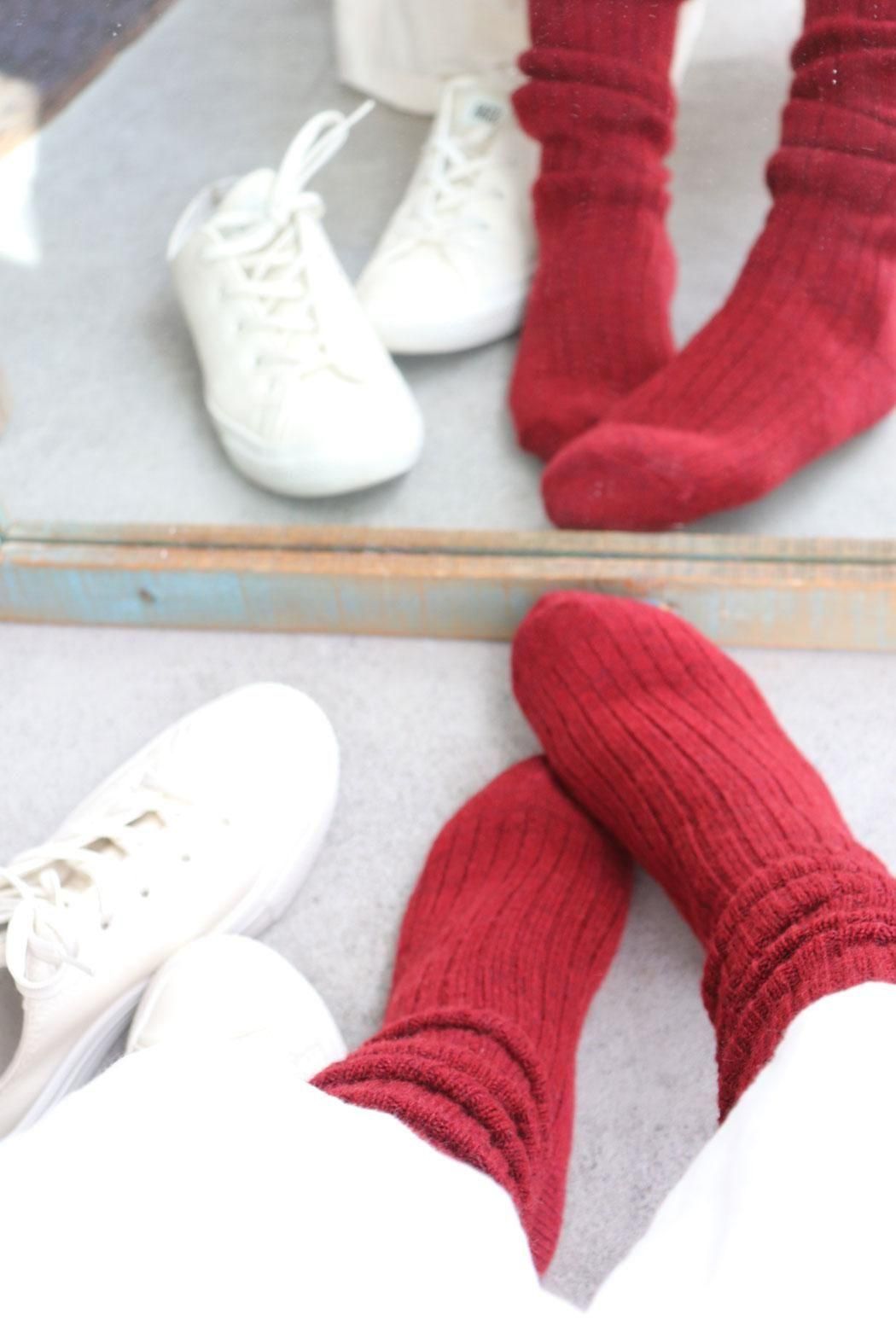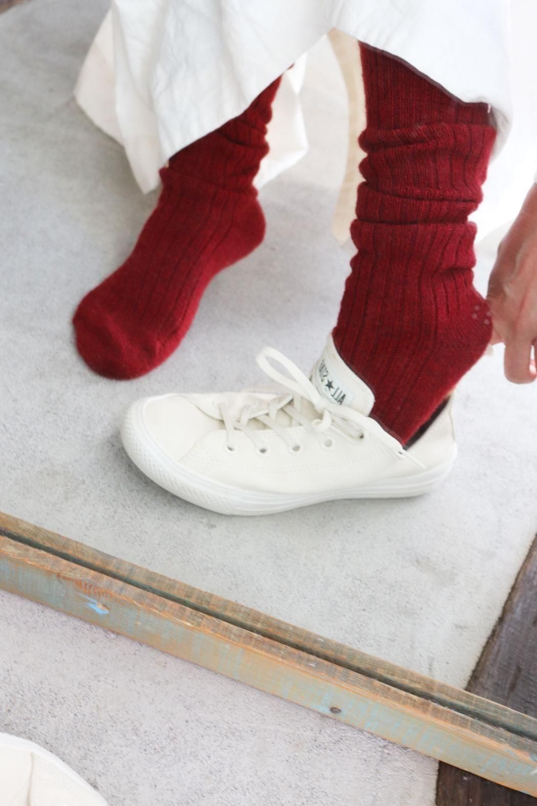 遠赤外線を放射する(株)東レのアクリルウール糸を使用したソックス。