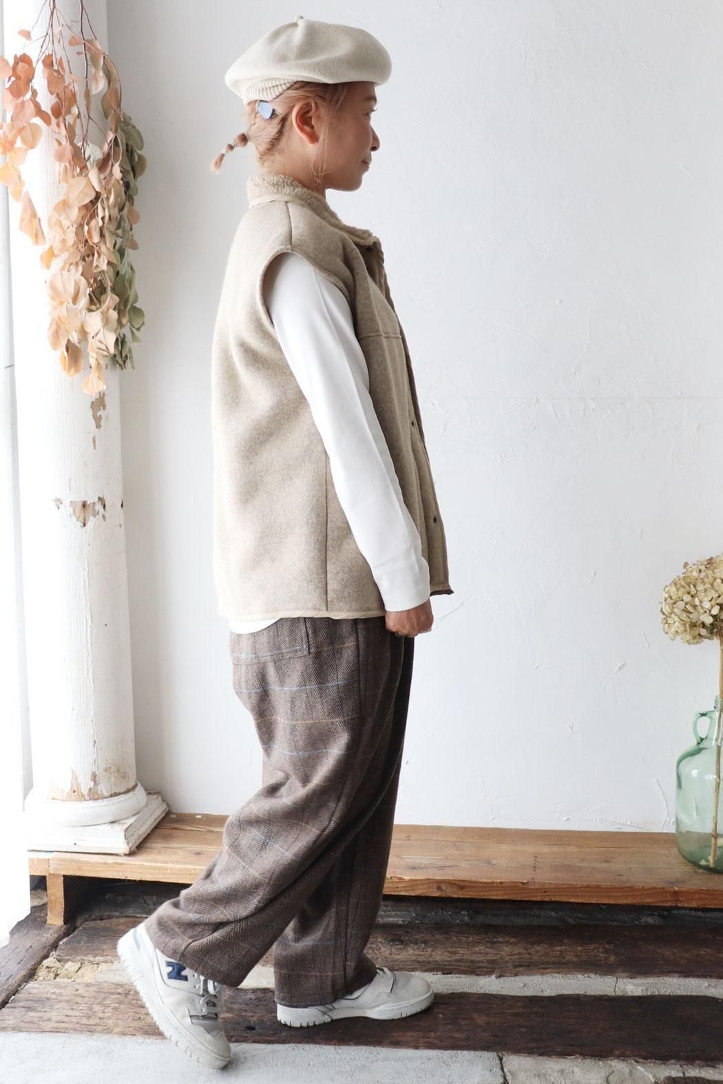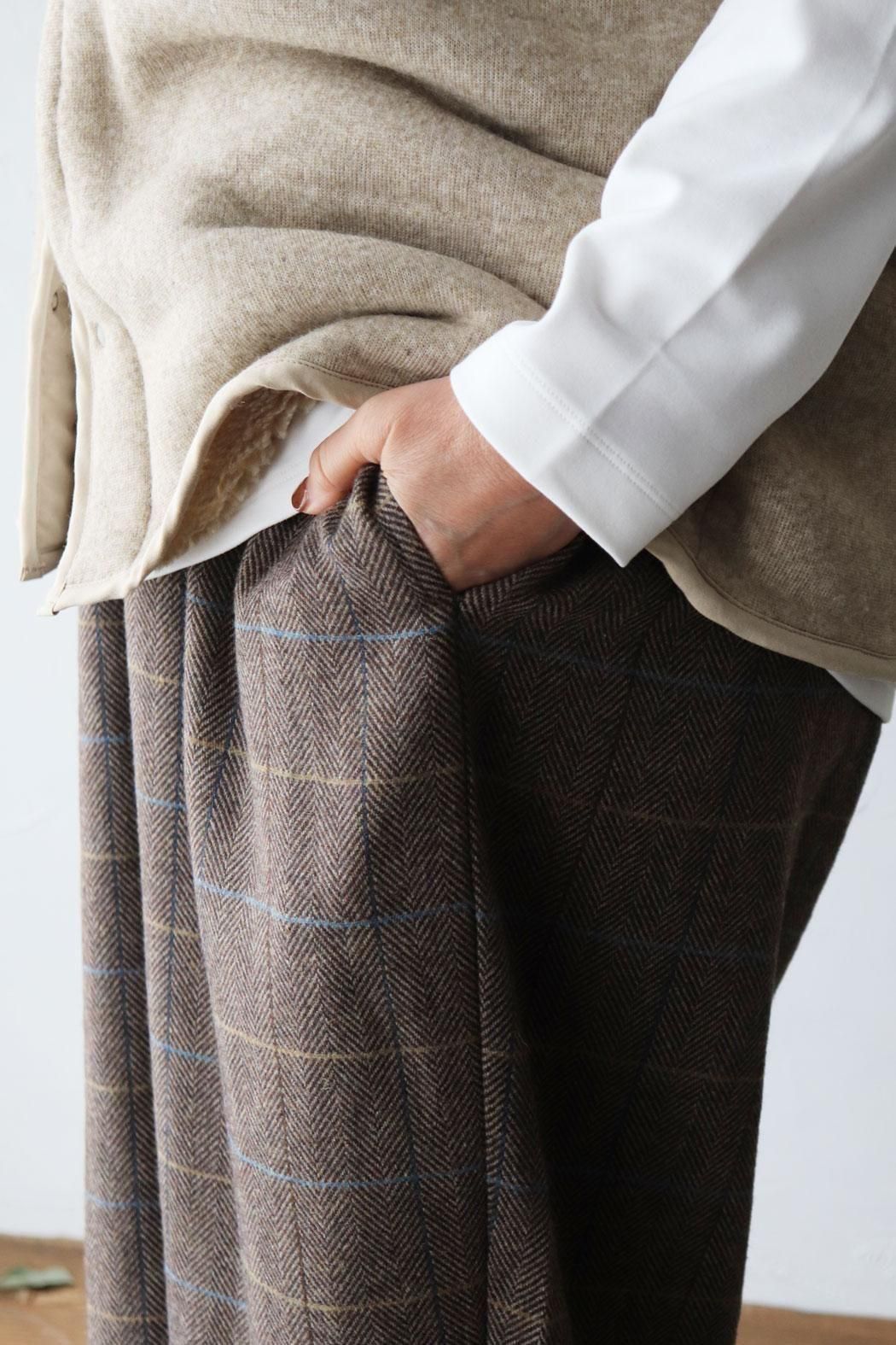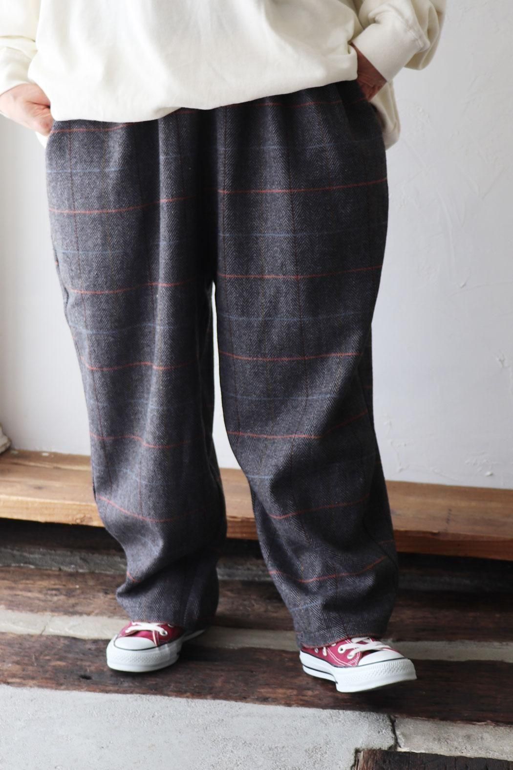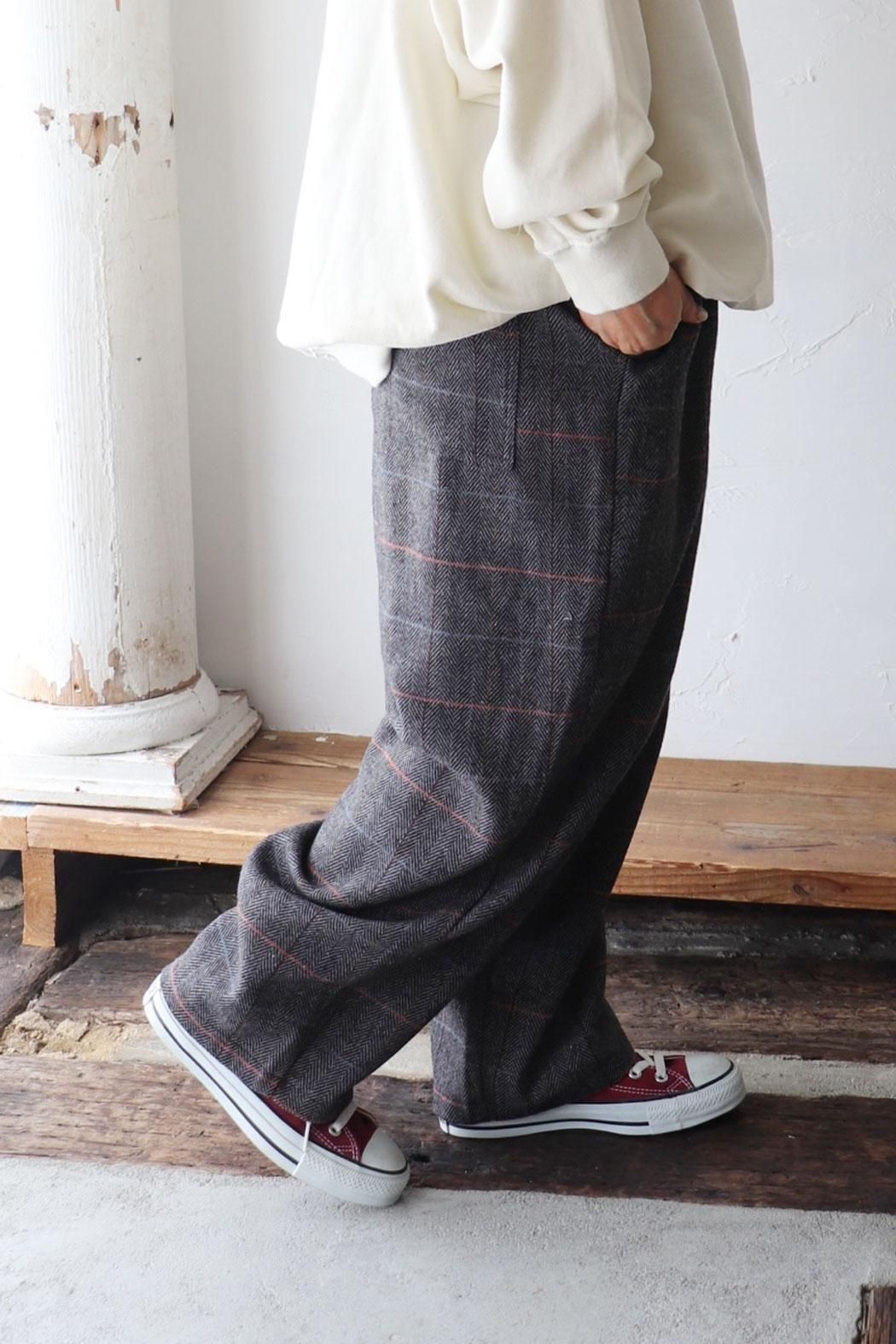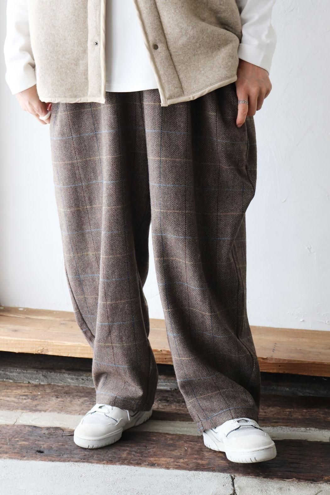 mao made(マオメイド)ヘリンボンチェック ゆったりテーパードパンツ