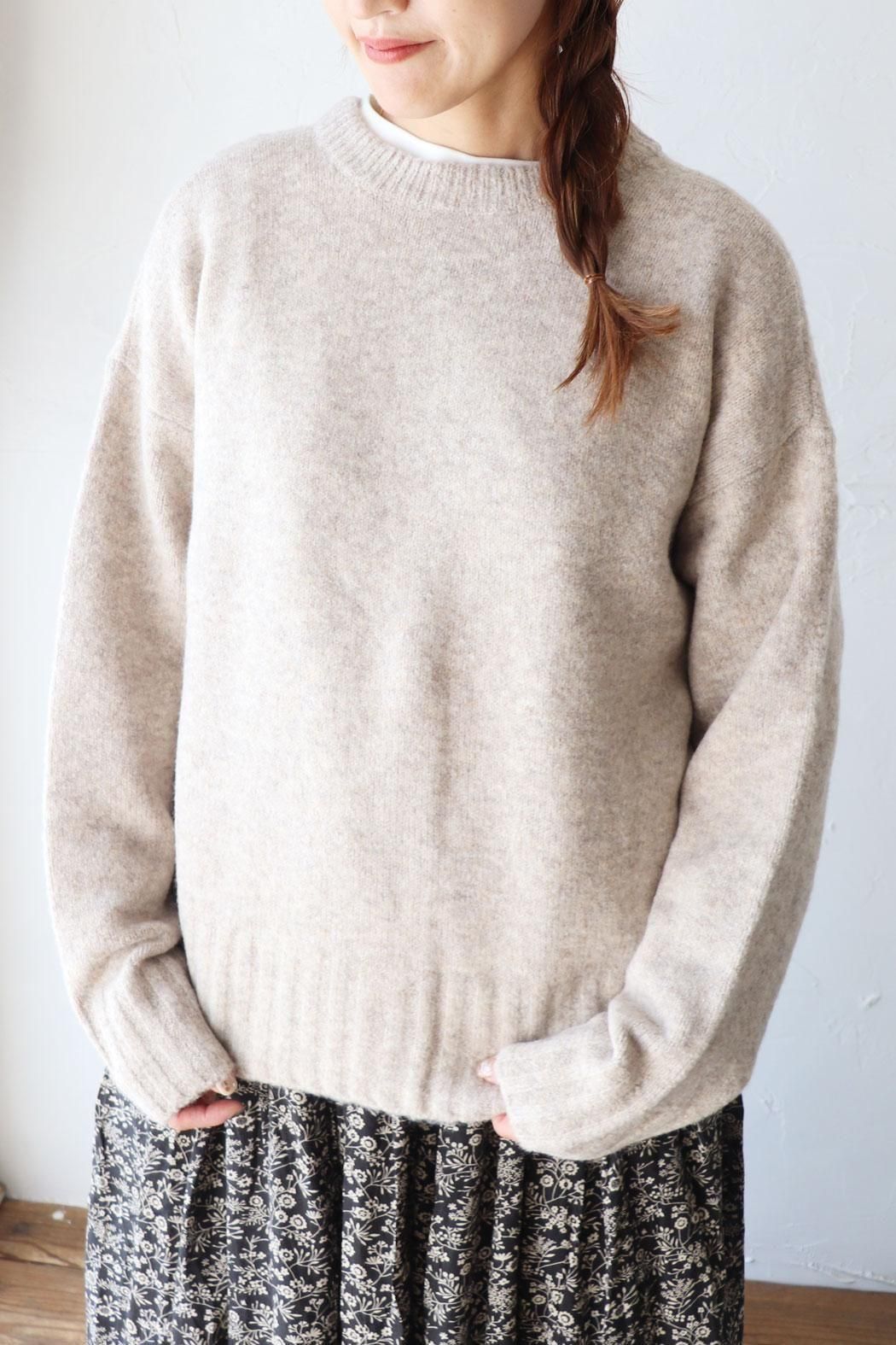 ふっくら柔らかで、もちもちとした風合いが心地よいニットプルオーバー。