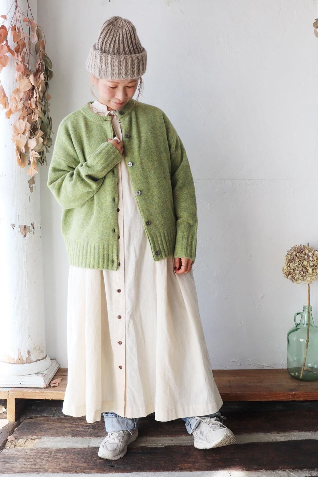 前後着用可能で、さらにボタンを開けて羽織っても可愛い万能アイテムです。