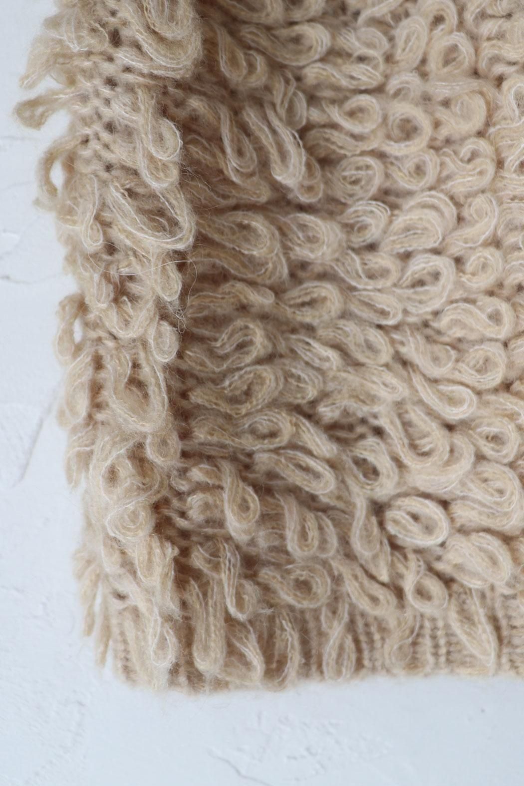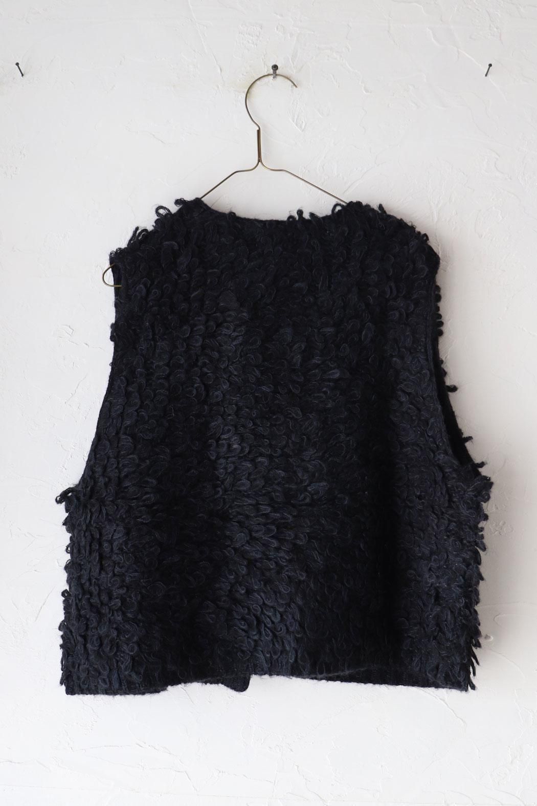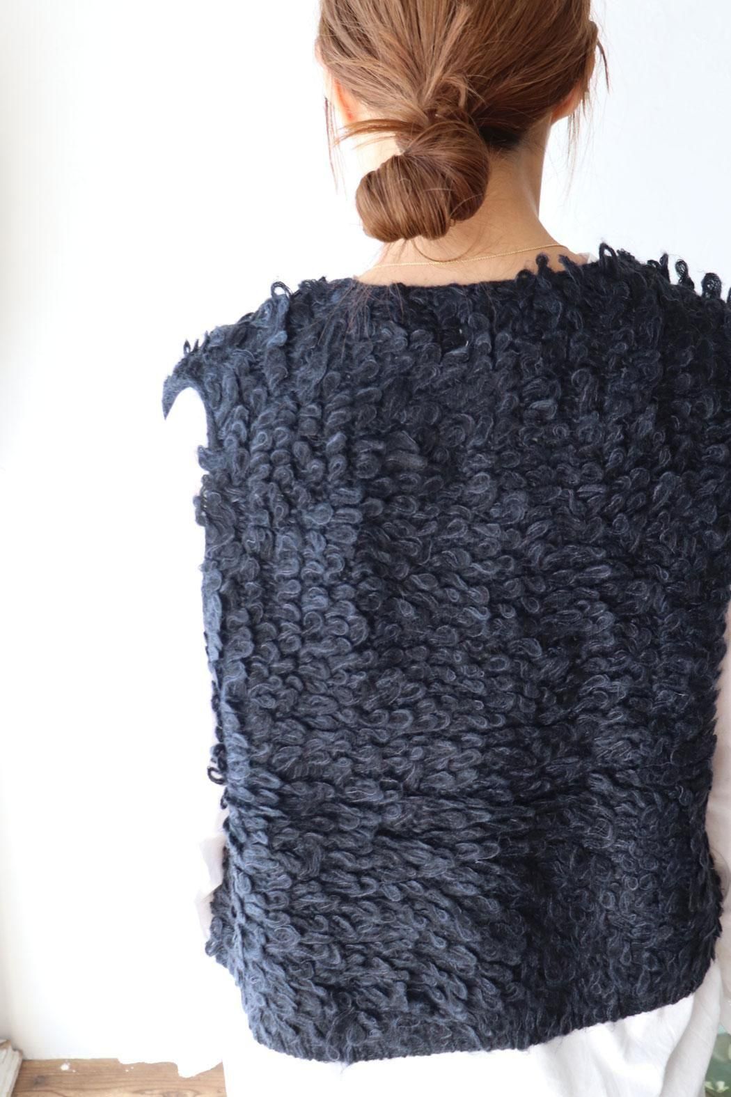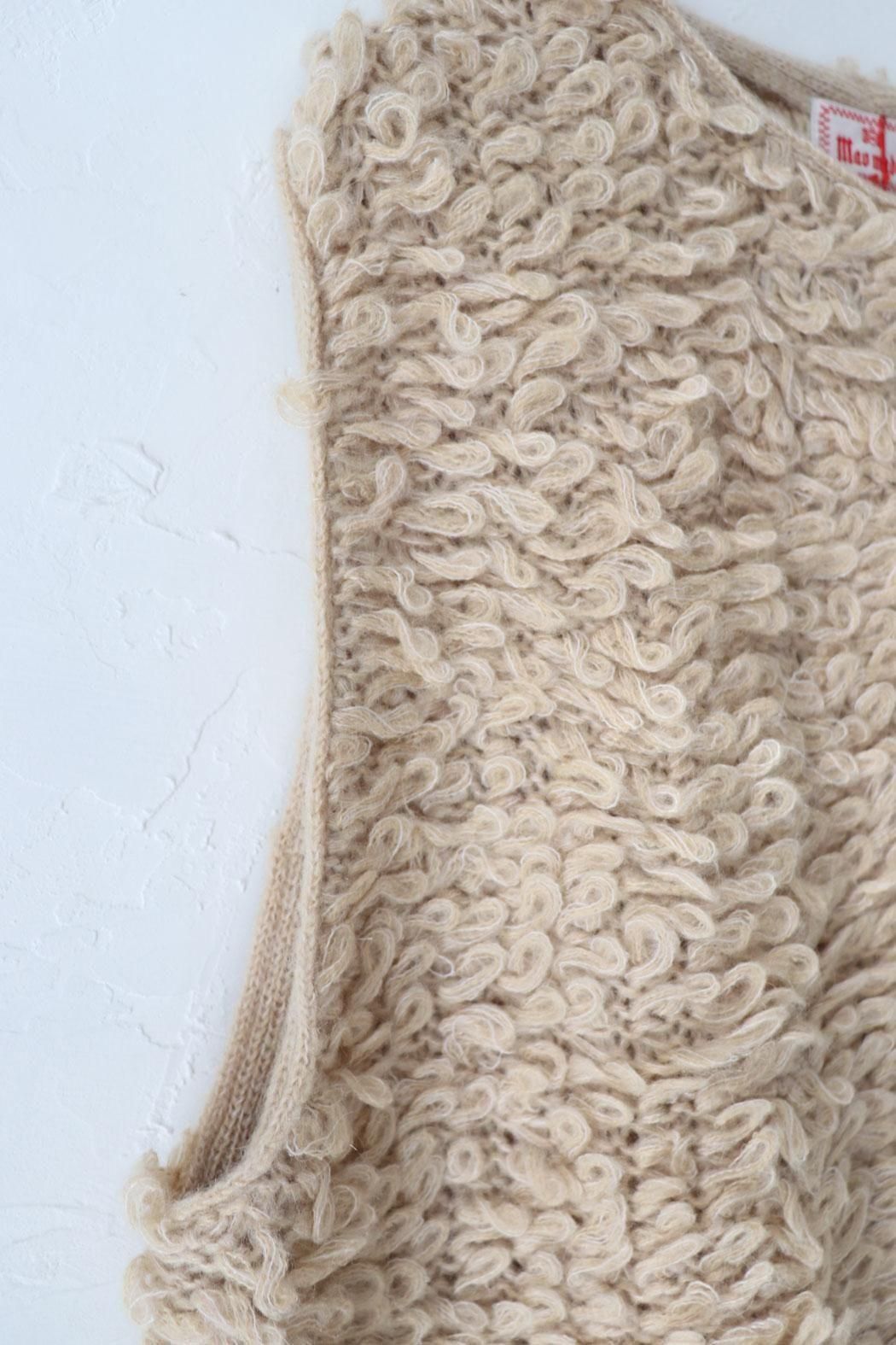 モヘアブレンドの毛足の長いふわふわとした糸をループ編みにしたベスト。