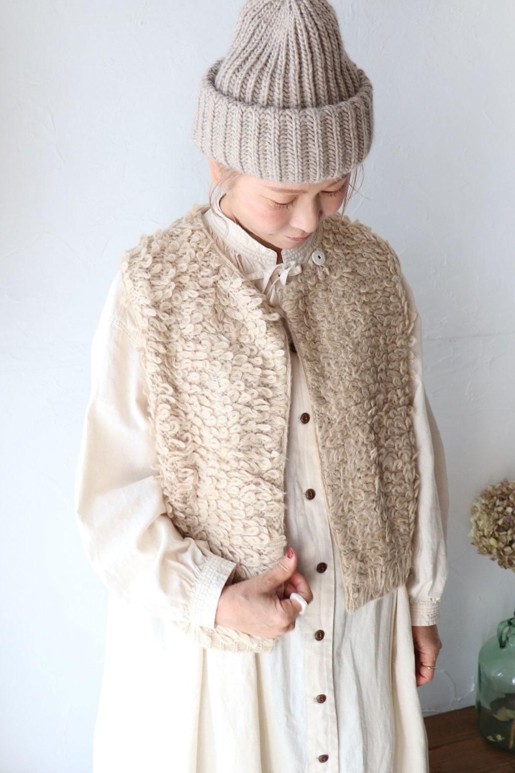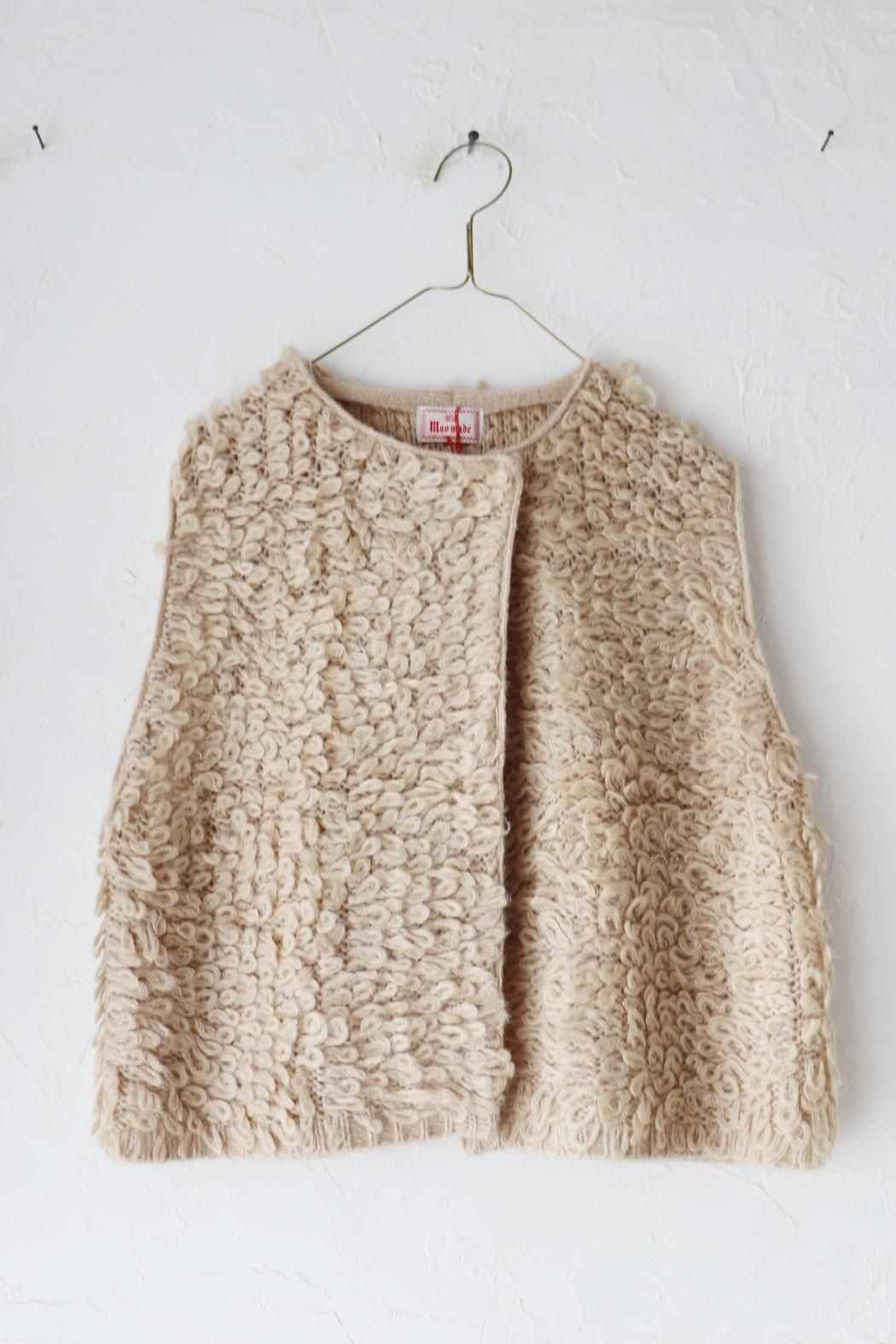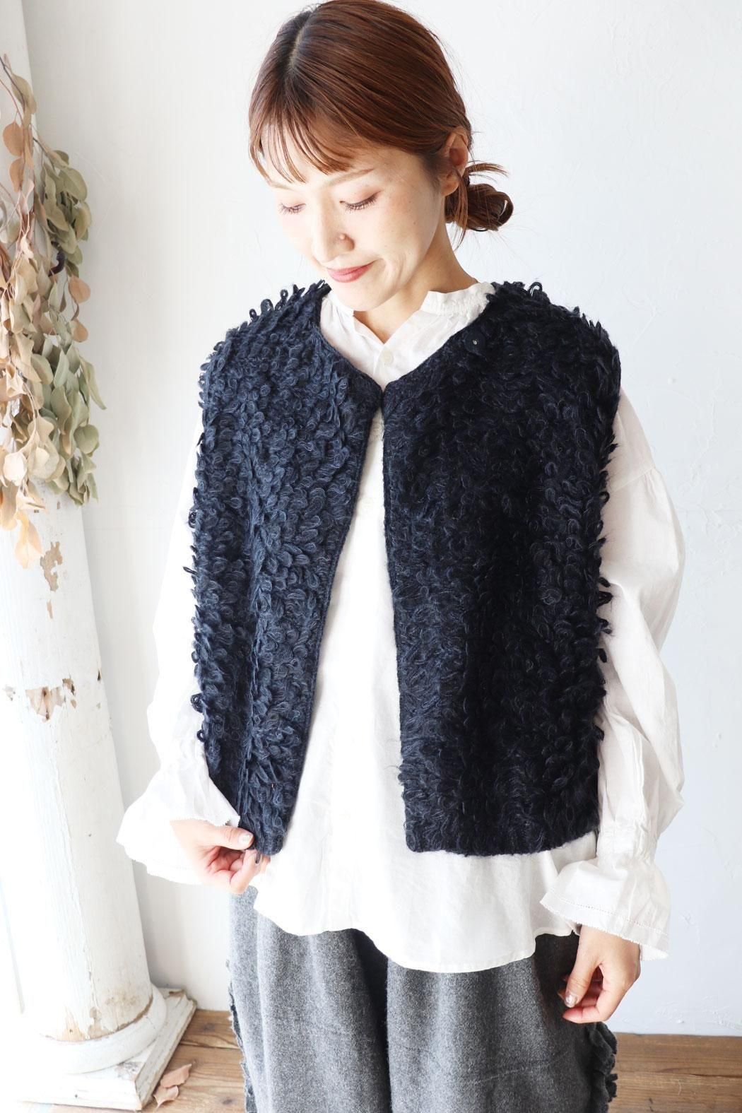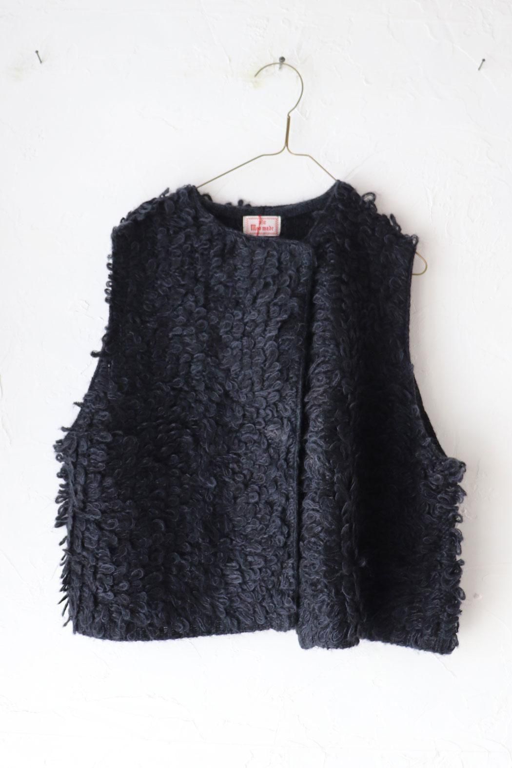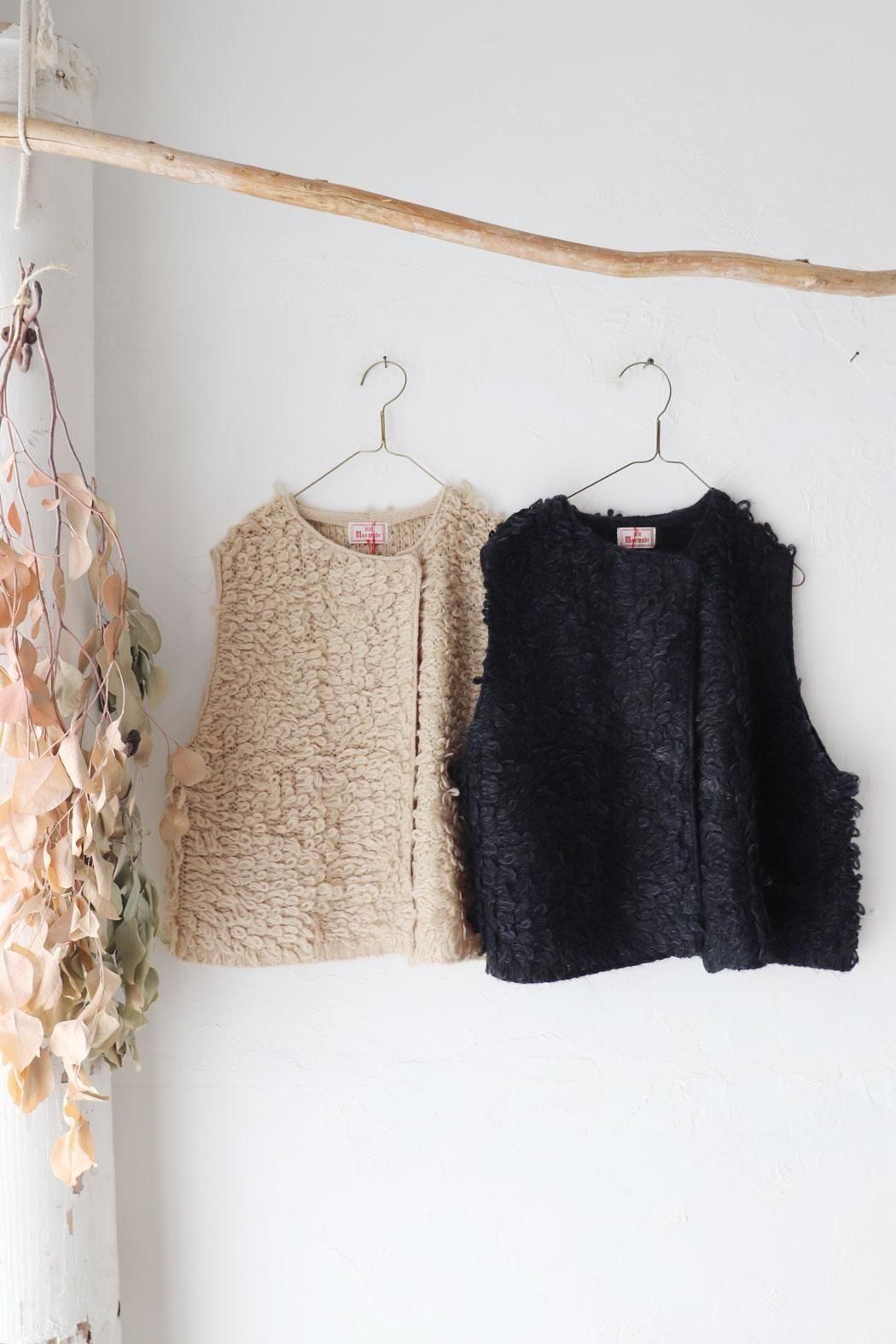 モヘアブレンドの毛足の長いふわふわとした糸をループ編みにしたベスト。