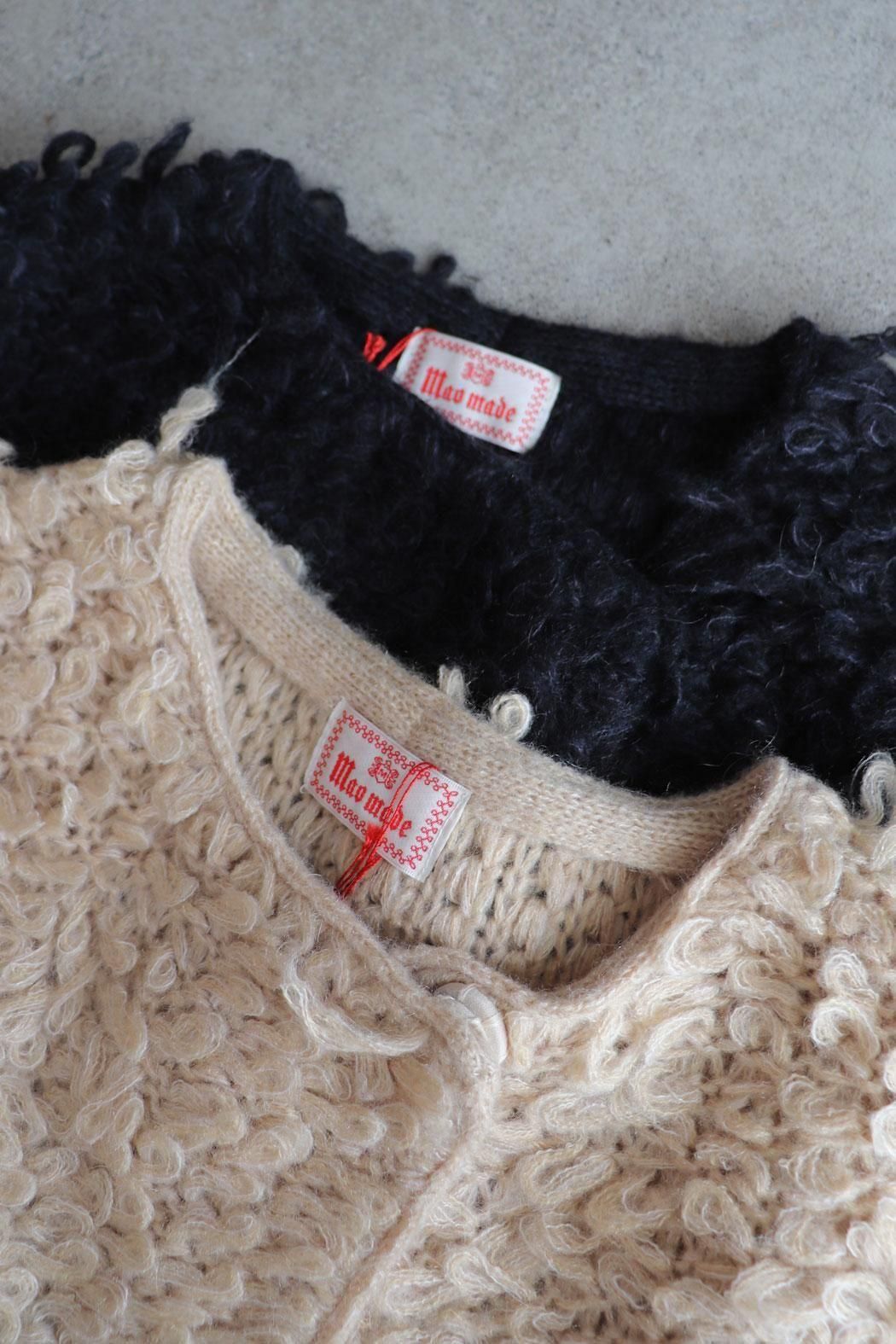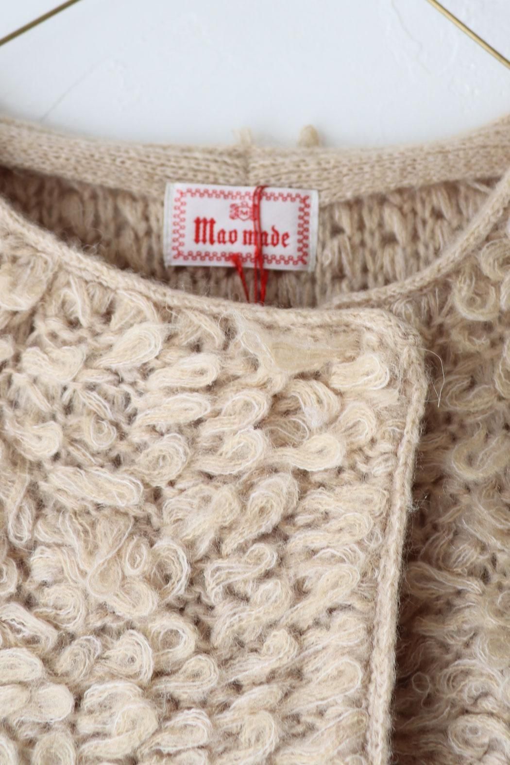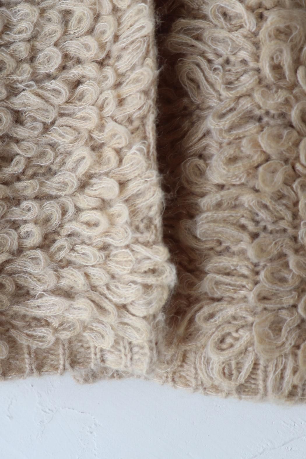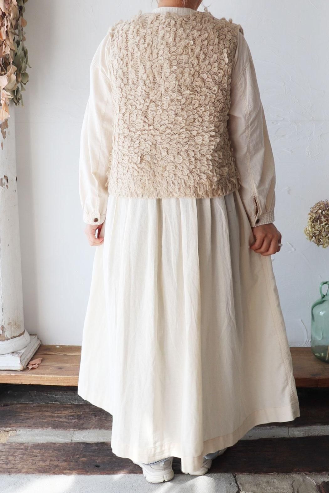 モヘアブレンドの毛足の長いふわふわとした糸をループ編みにしたベスト。